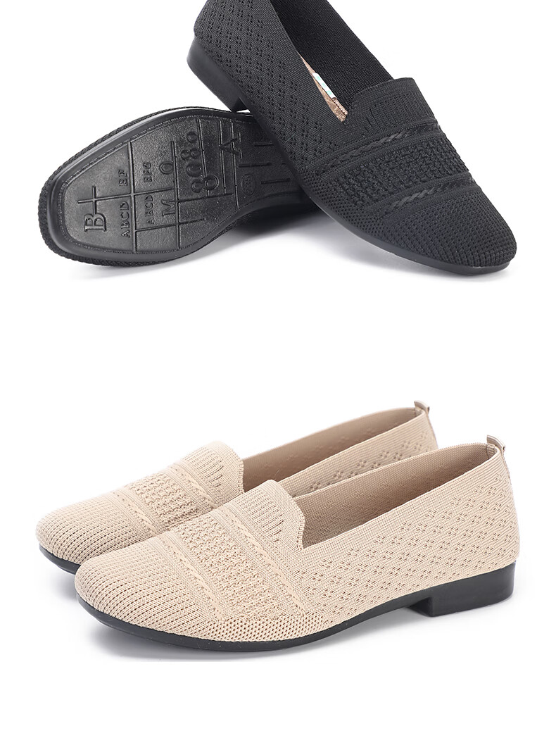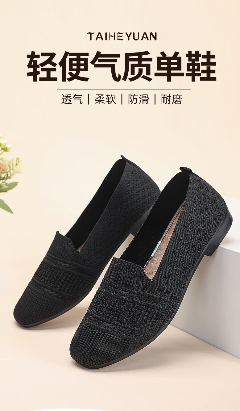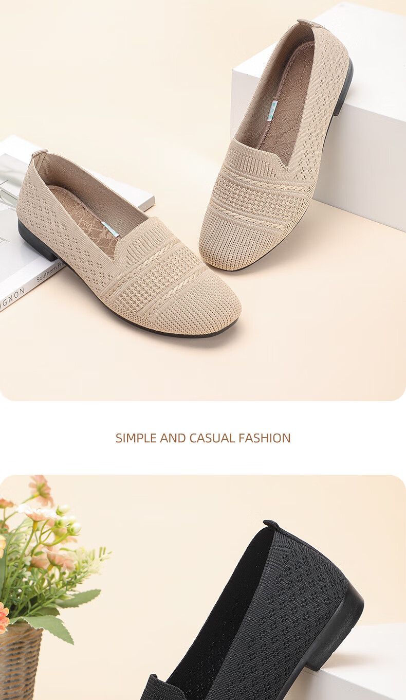 一兜老北京布鞋女单鞋春秋新款时尚一脚蹬软底上班工作鞋飞织豆豆鞋 米色20163 36