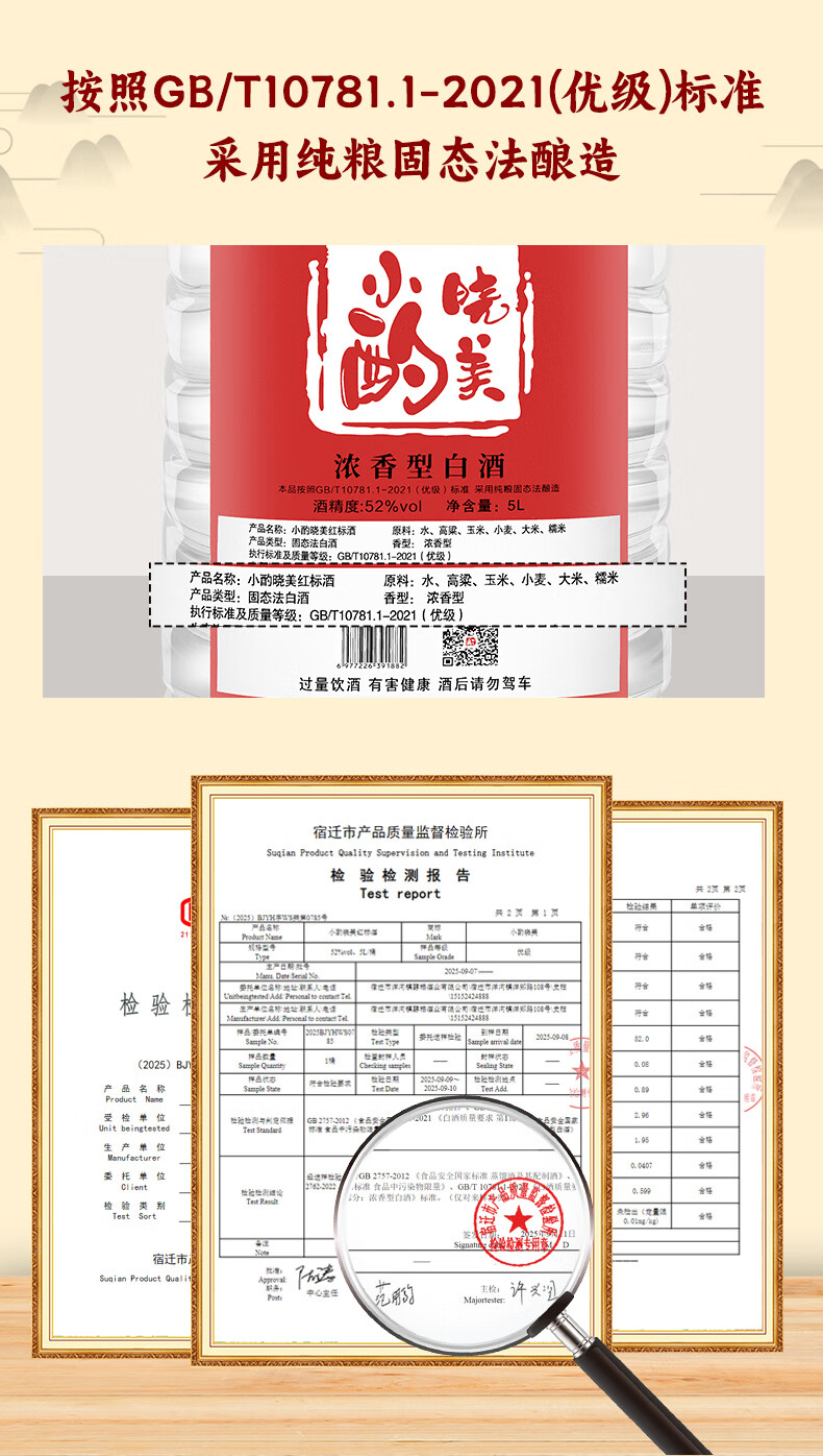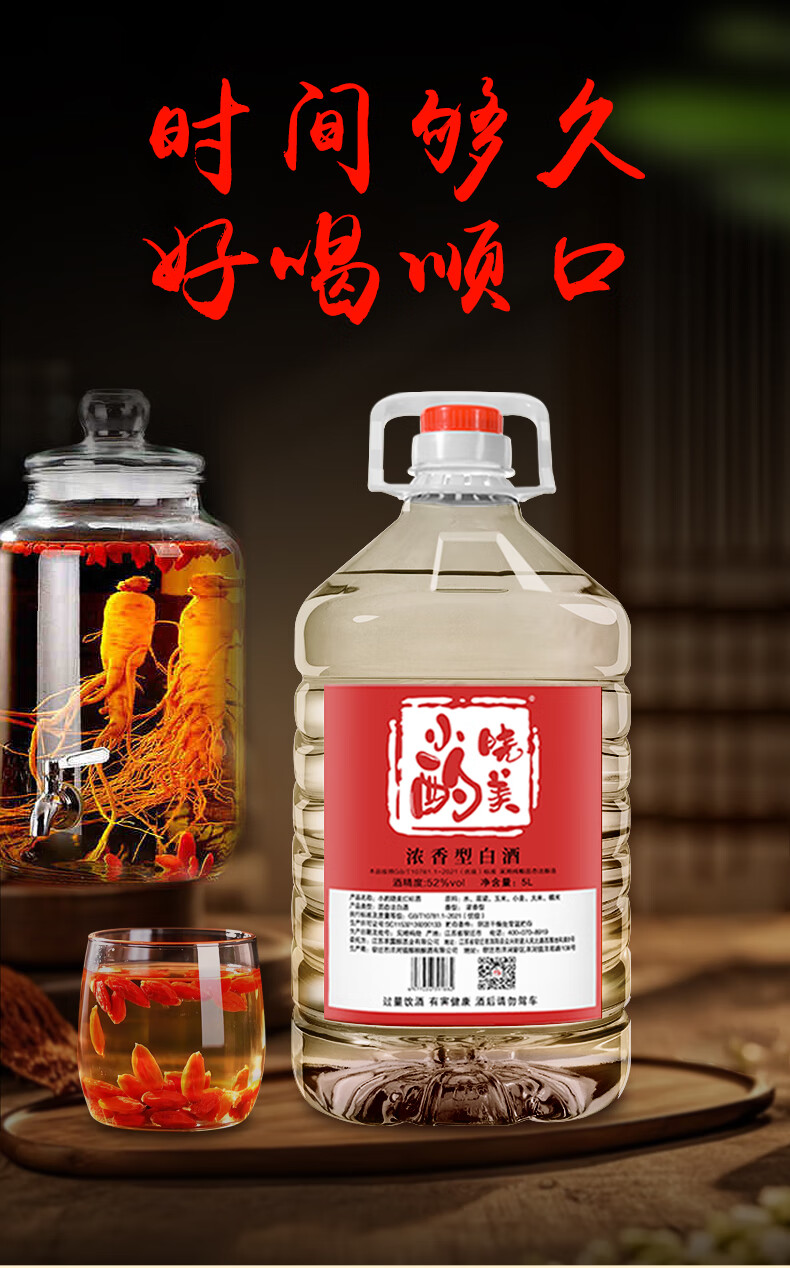 小酌晓美白酒自饮泡酒专用52度浓香型高粱酒桶装60度纯粮食酒5L散酒约10斤 52度 5L 2桶