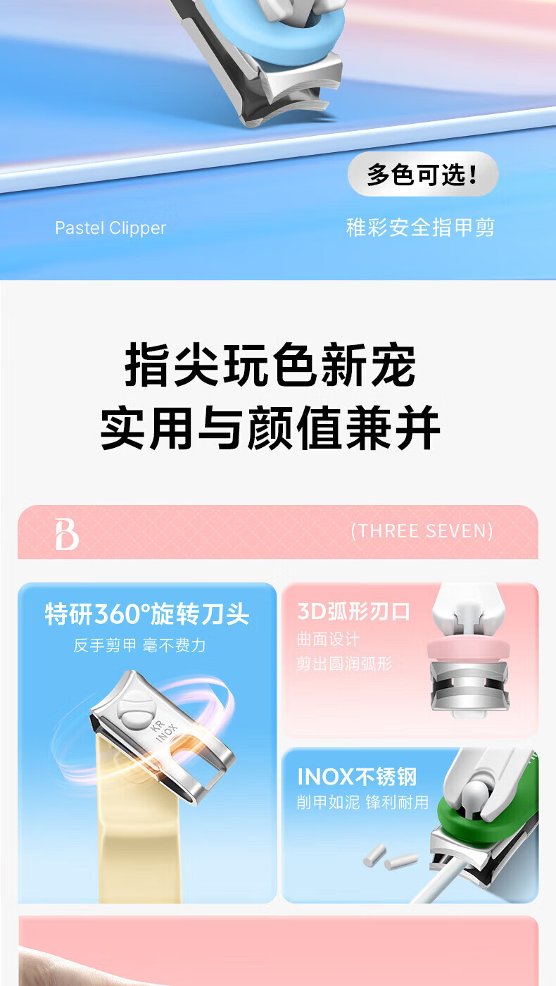 777(THREE SEVEN)韩国360°旋转指甲刀原装进口指甲剪甲沟炎指甲钳礼小亲情意重 【旋转指甲刀】702天蓝色