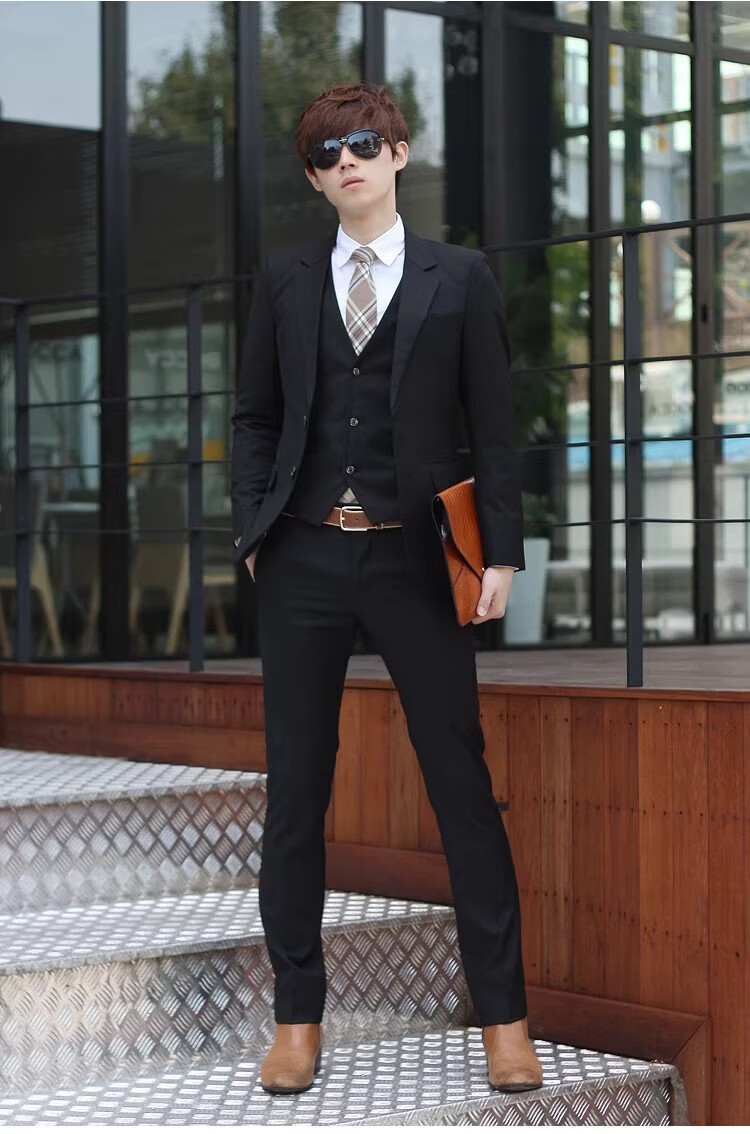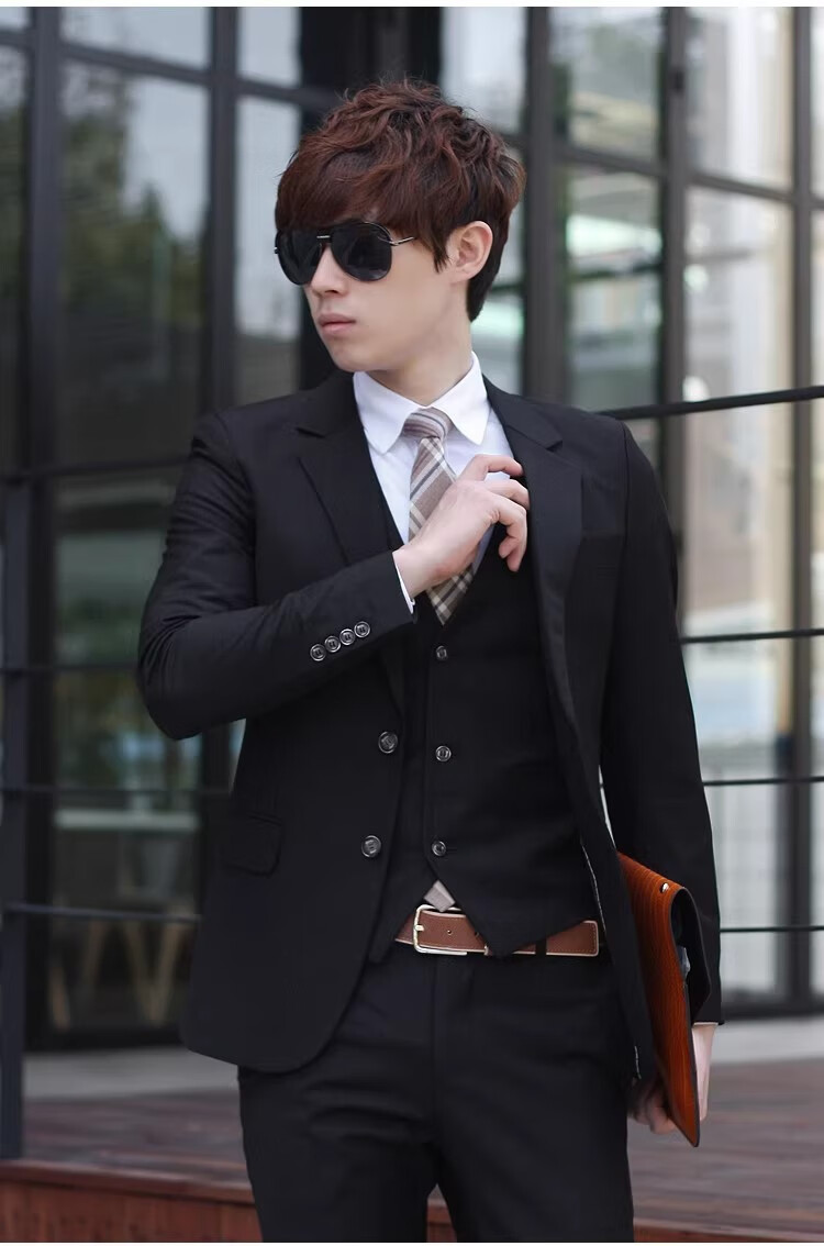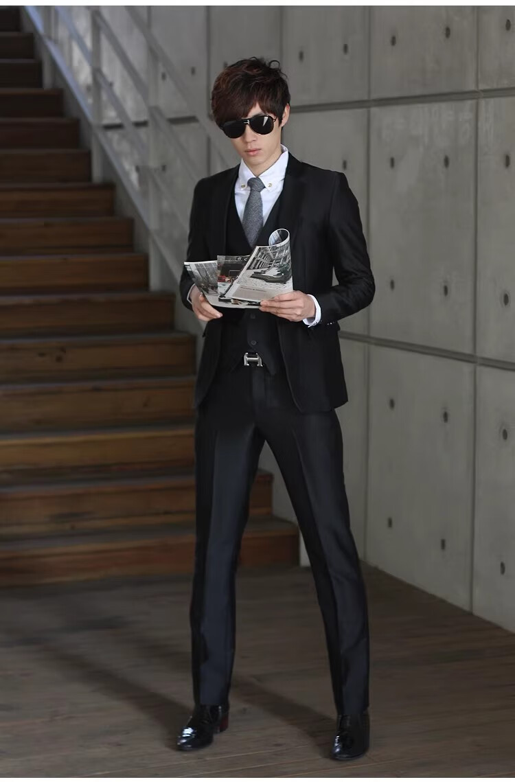 伊尔缘四件套秋冬加厚西服商务套装男装韩版休闲修身西装韩版男士成人礼 外套一件 XL 【120-135斤】【质量很好】
