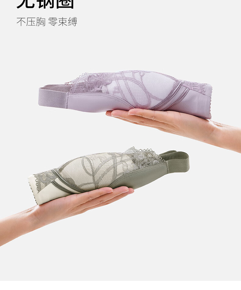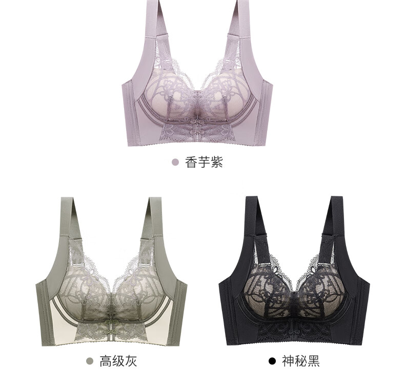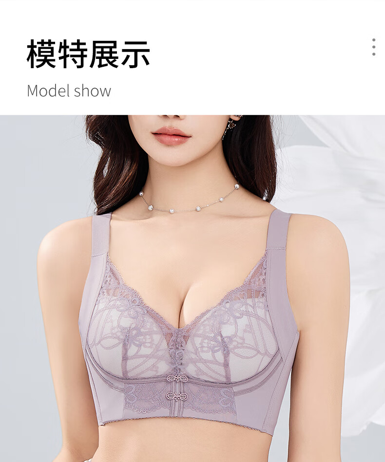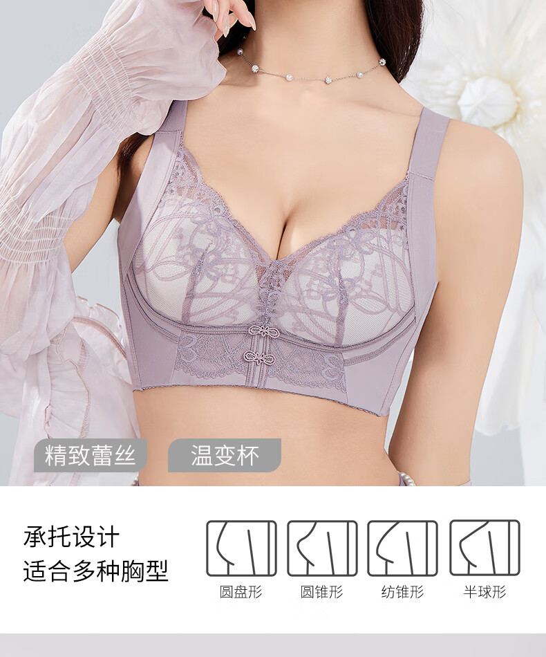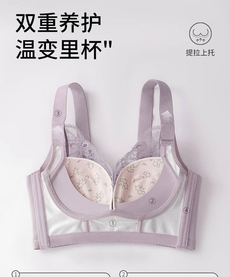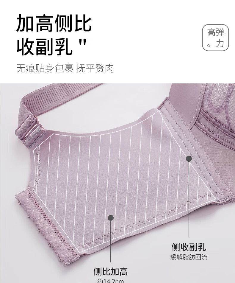 爱戴内衣女小胸聚拢无钢圈软支撑上托显大调整型文胸宽肩带防下垂美背 香芋紫 75A