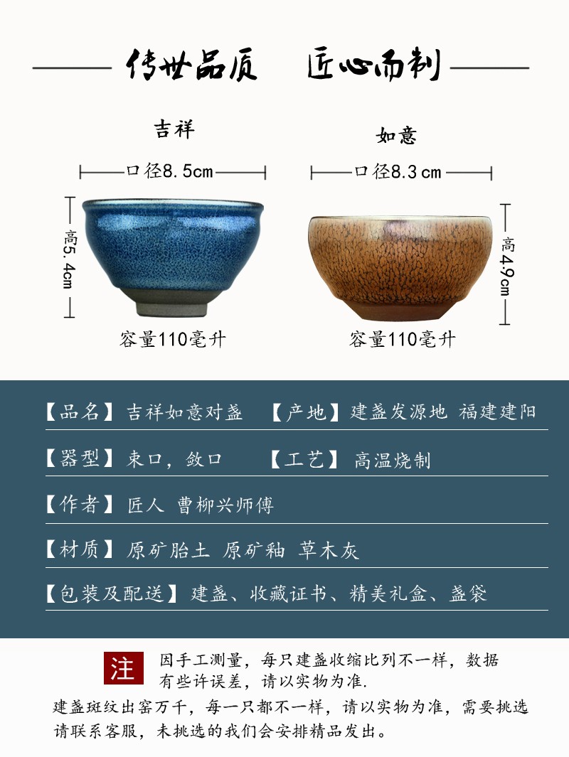宋匠建盏茶杯主人杯个人专用高端茶盏陶瓷喝茶杯茶具对杯套装伴手礼品