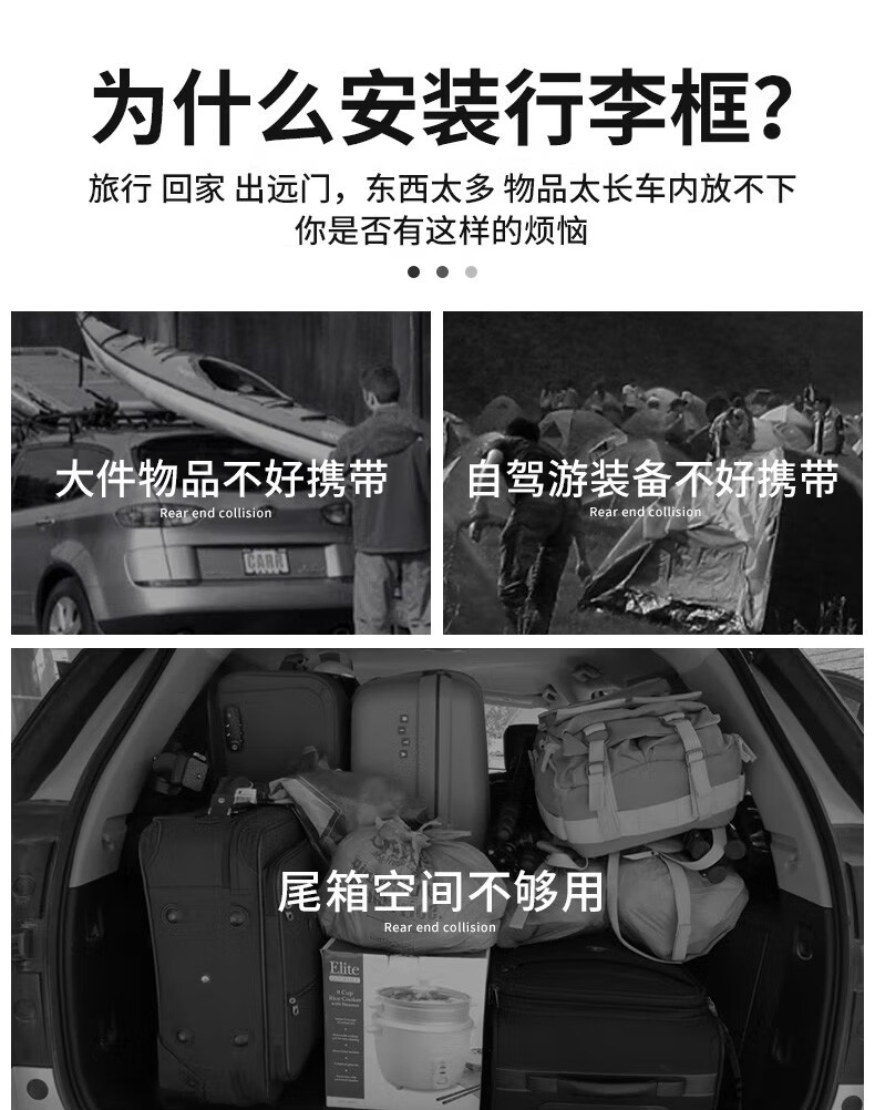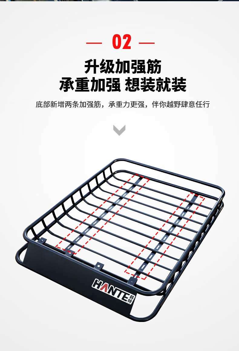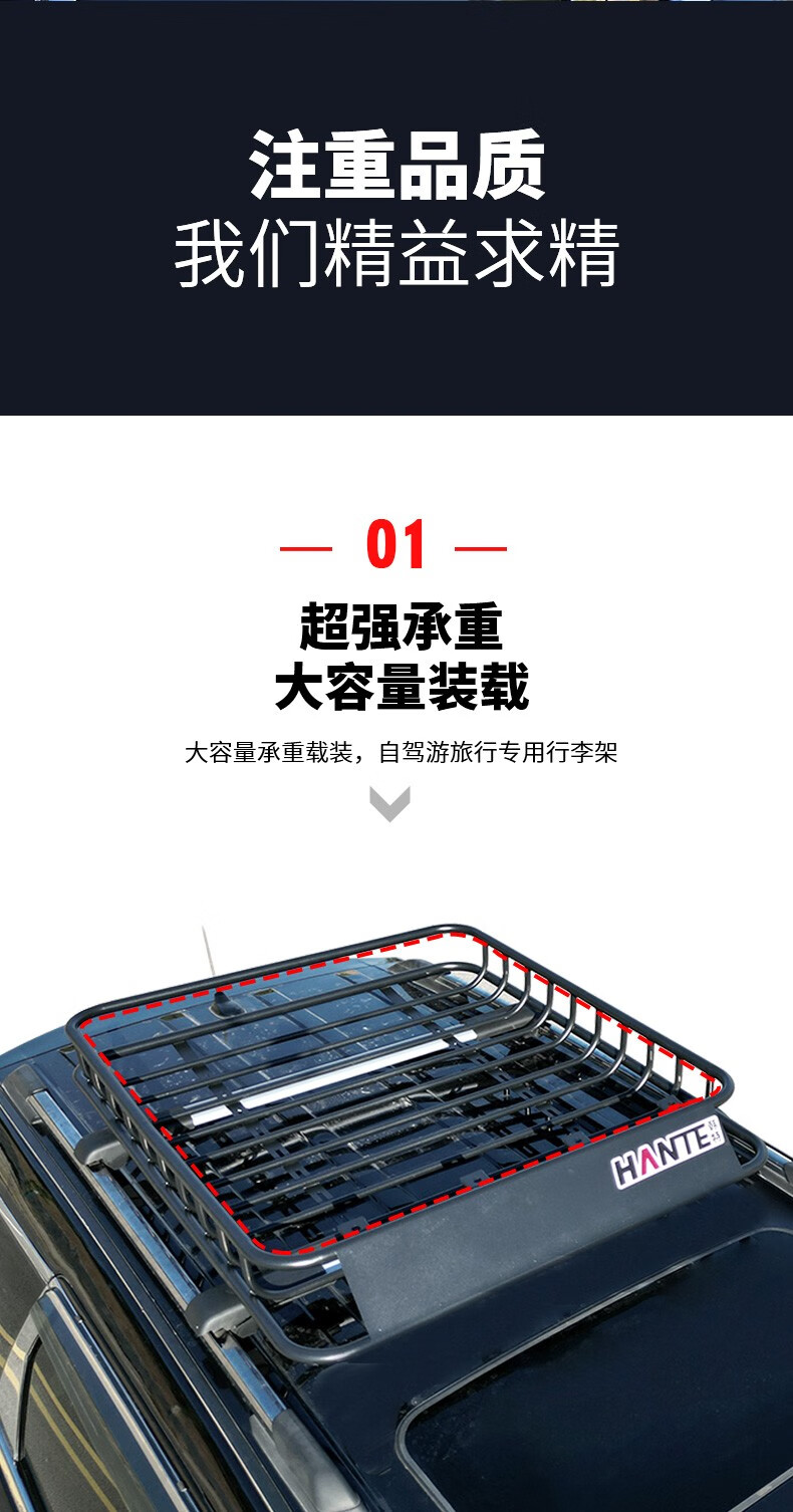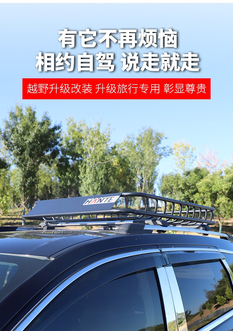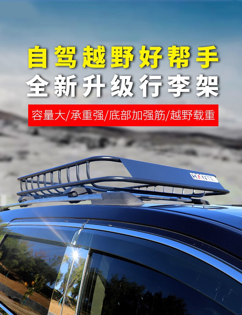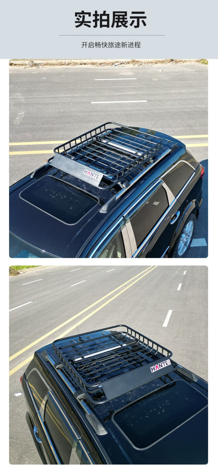韩特汽车车顶行李架通用SUV车载行李架车顶框行李筐旅行架车顶架货架 单框+U型连接件 黑色120*97cm