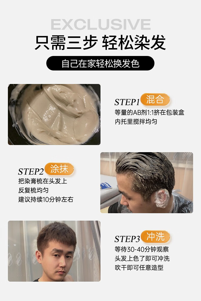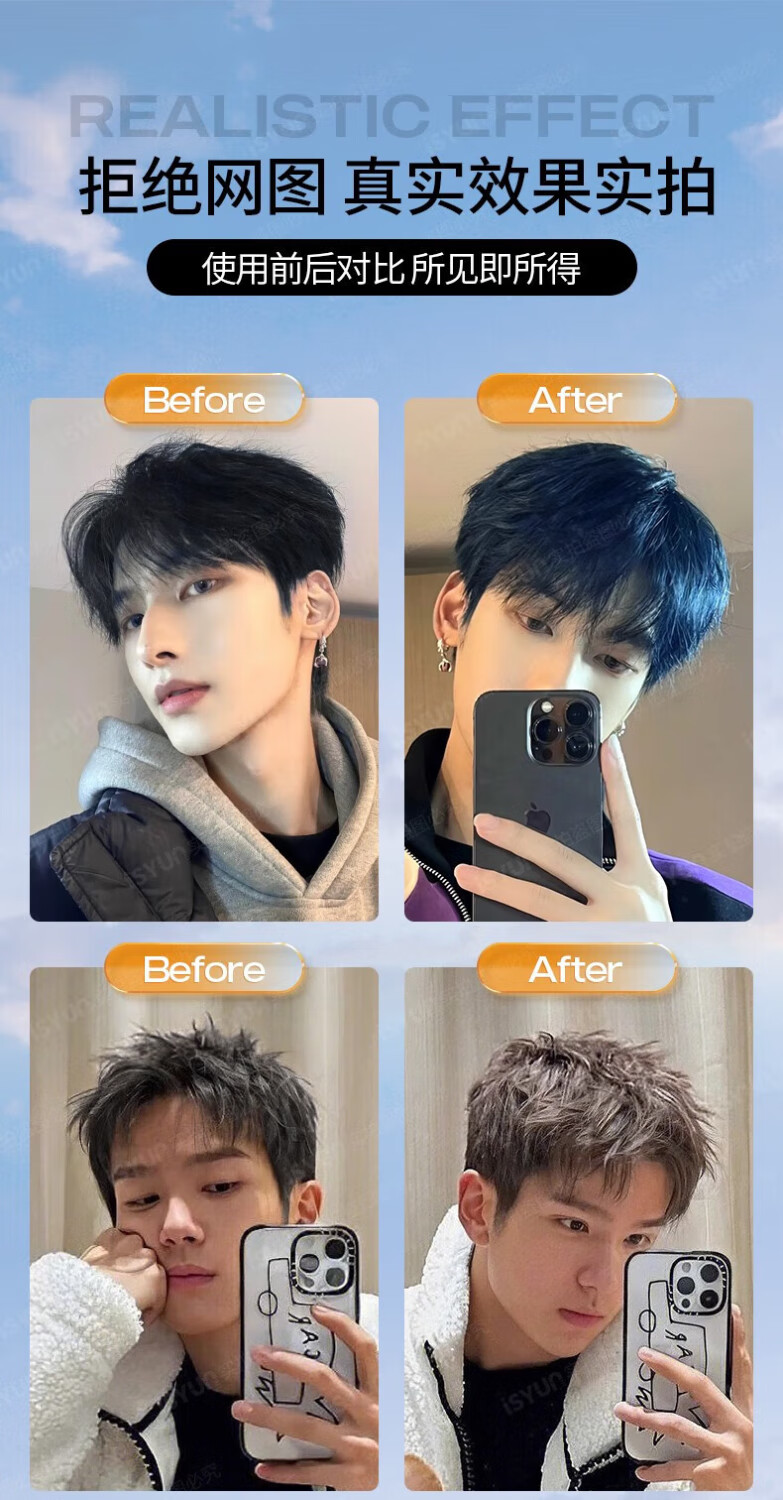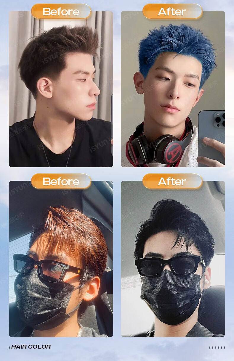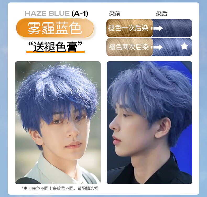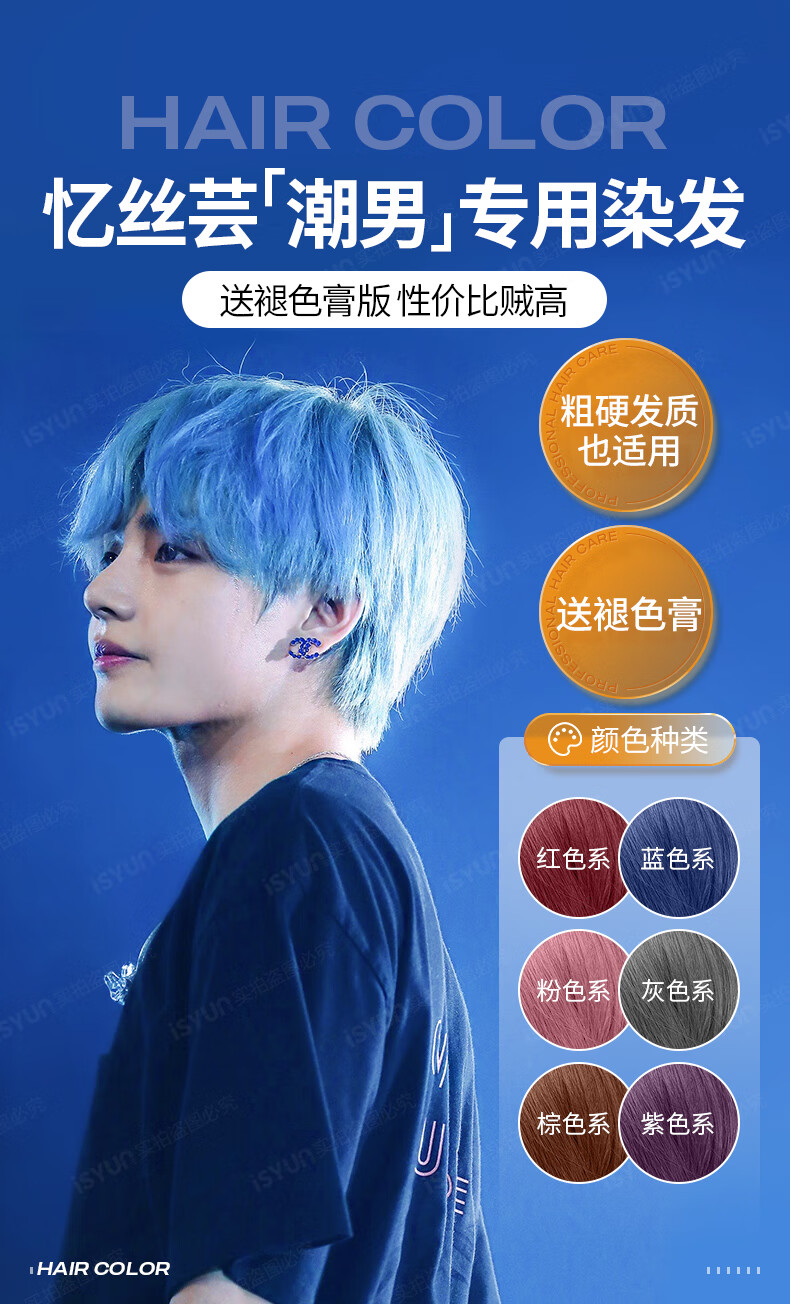 忆丝芸染发膏男士专用 植物染发剂 染头膏纯自己染 短发天然 送漂发剂 湖泊蓝(褪色2次后染)