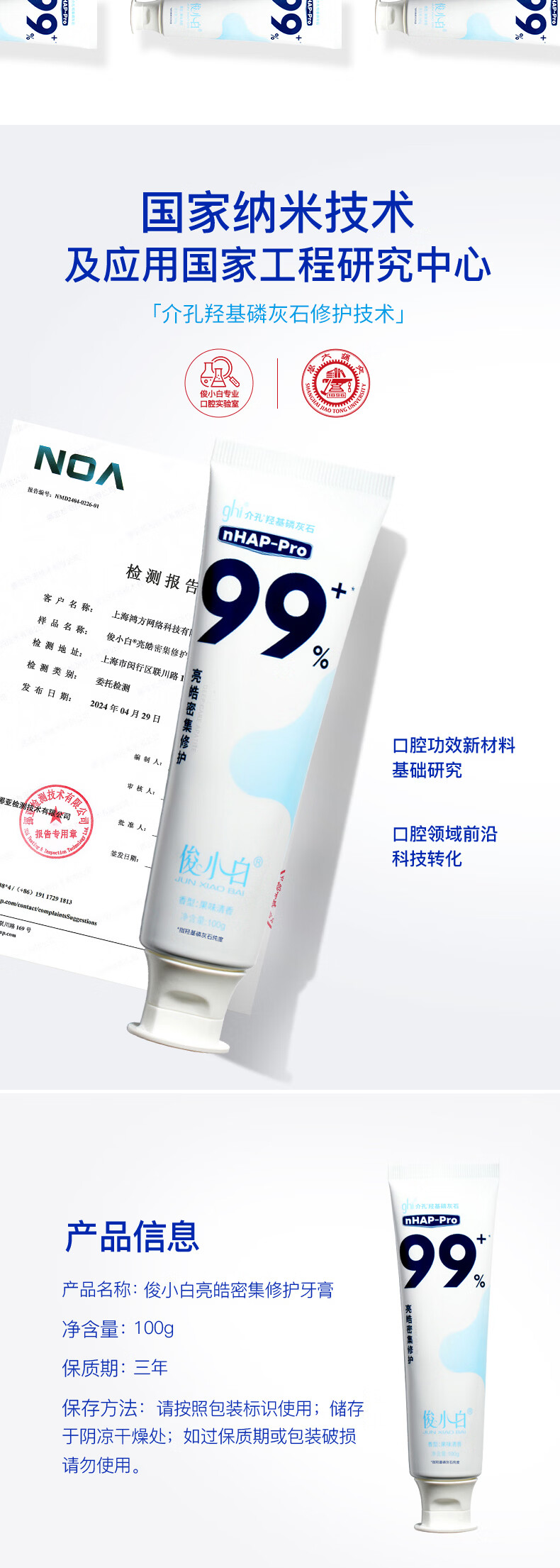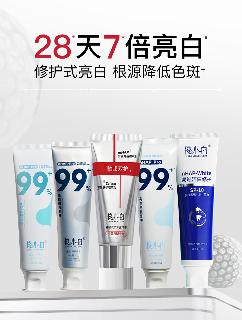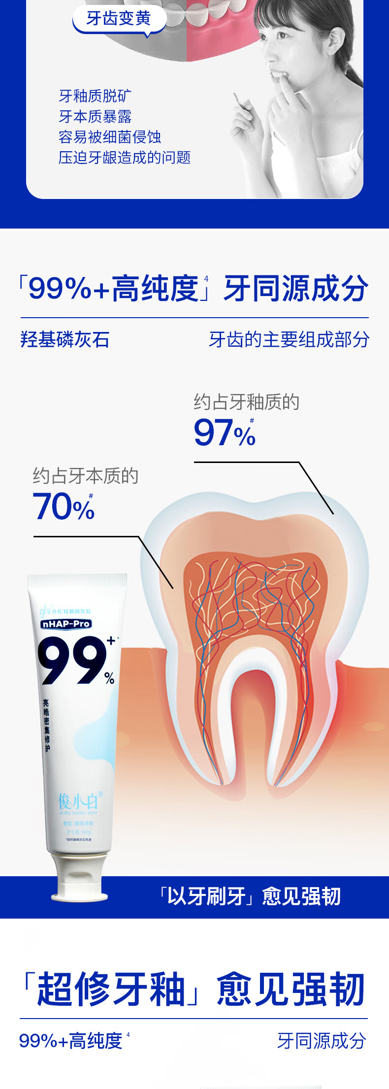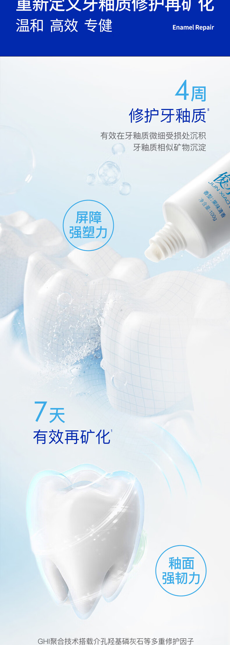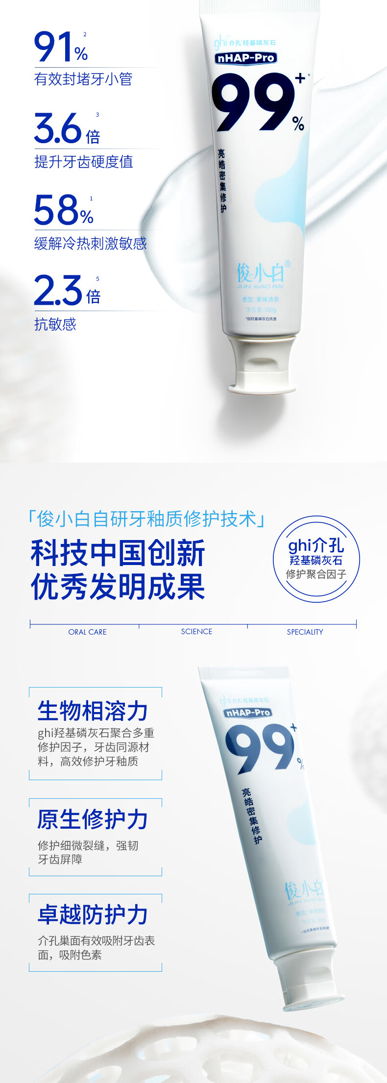 俊小白牙膏羟基磷灰石修护牙釉质防蛀固齿亮皓密集99官方旗舰店正品 【大容量划算】密集修护140g*3支