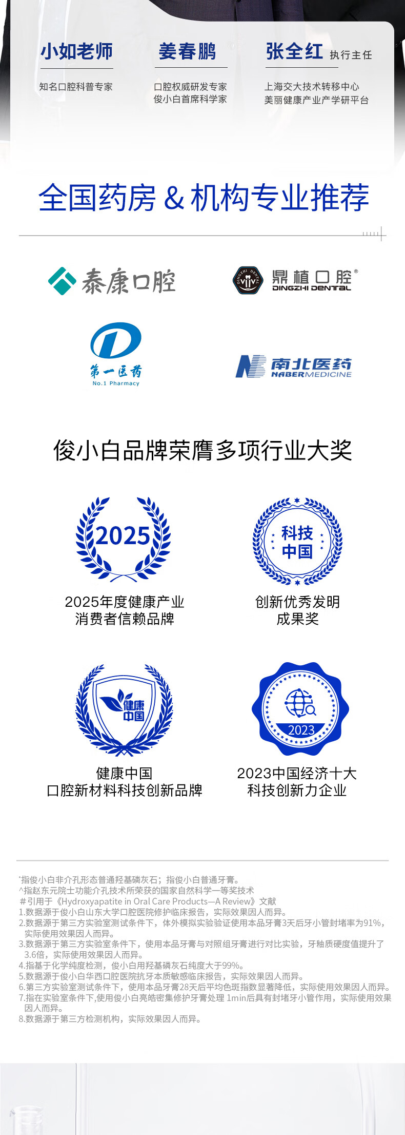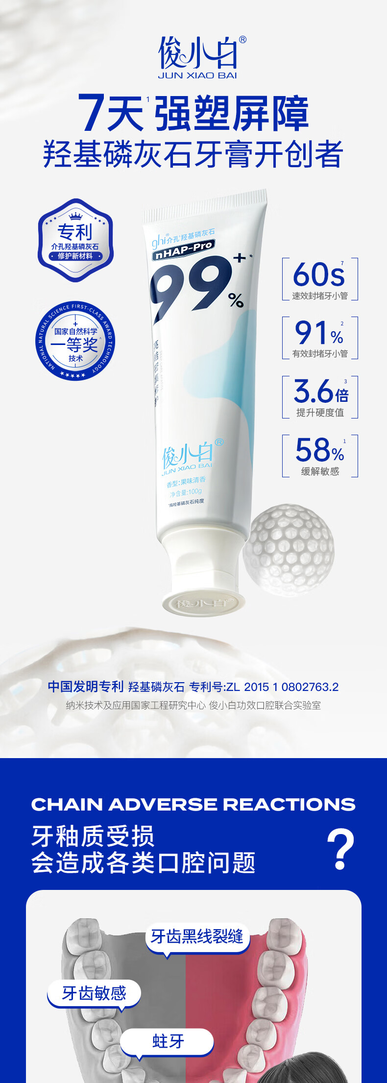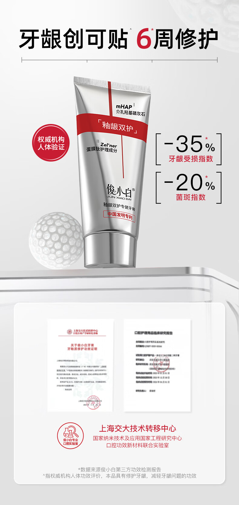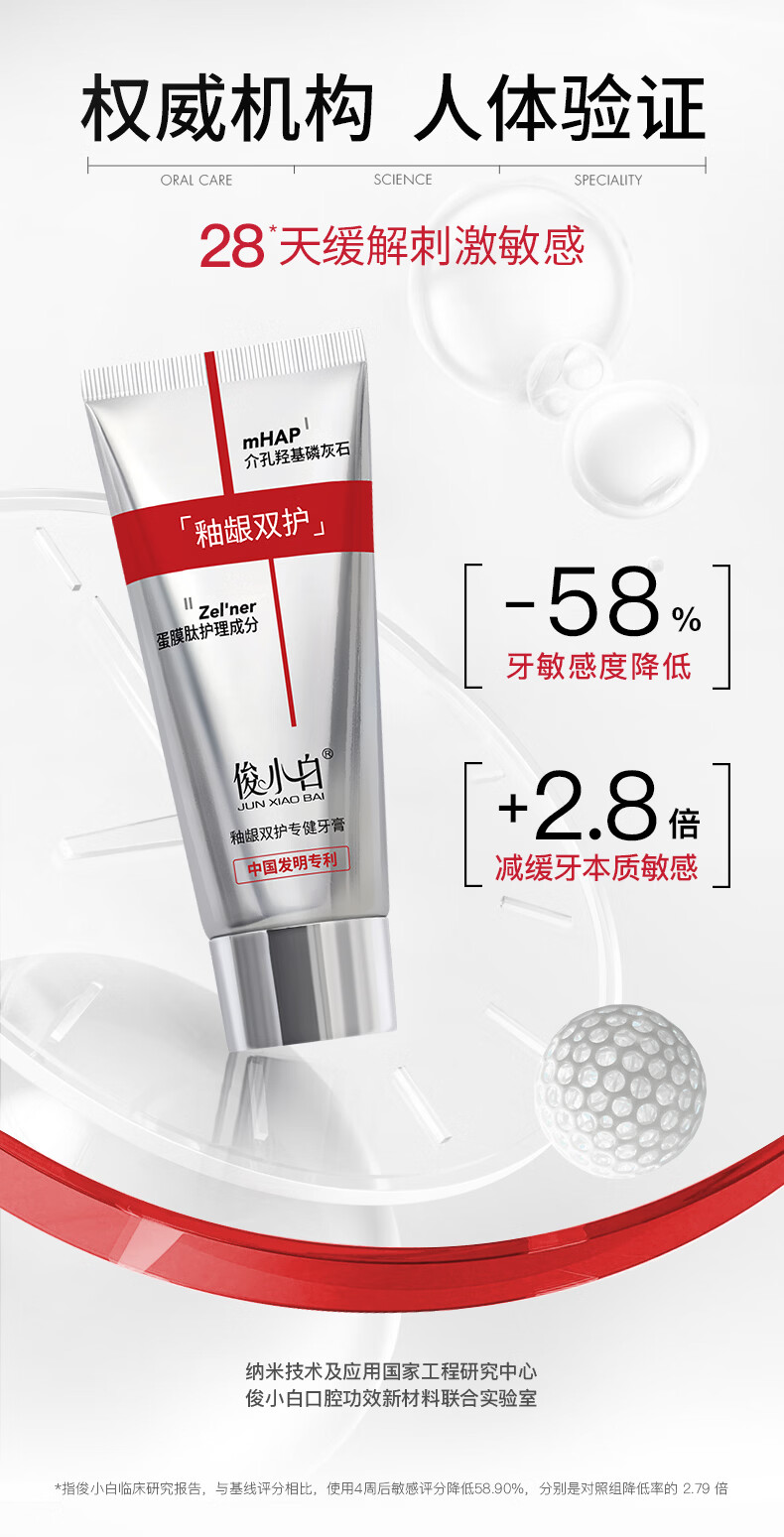 俊小白牙膏羟基磷灰石修护牙釉质防蛀固齿亮皓密集99官方旗舰店正品 【大容量划算】密集修护140g*3支