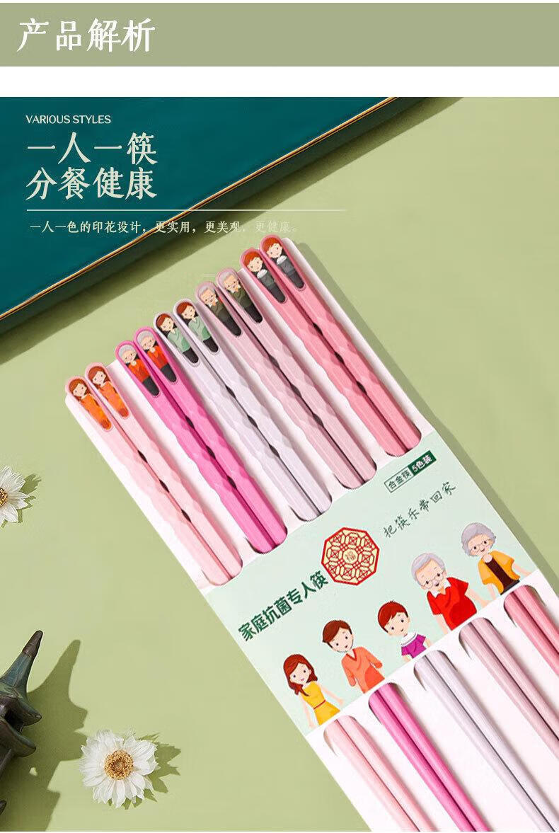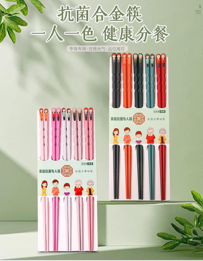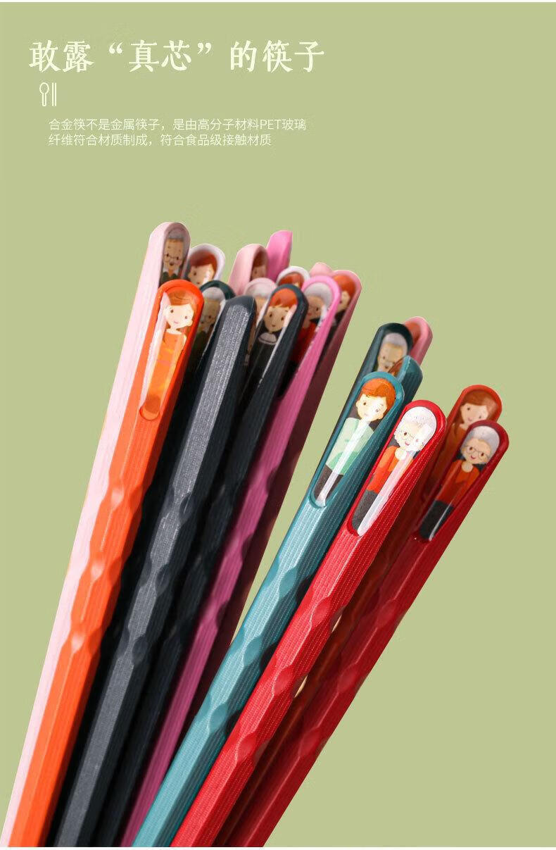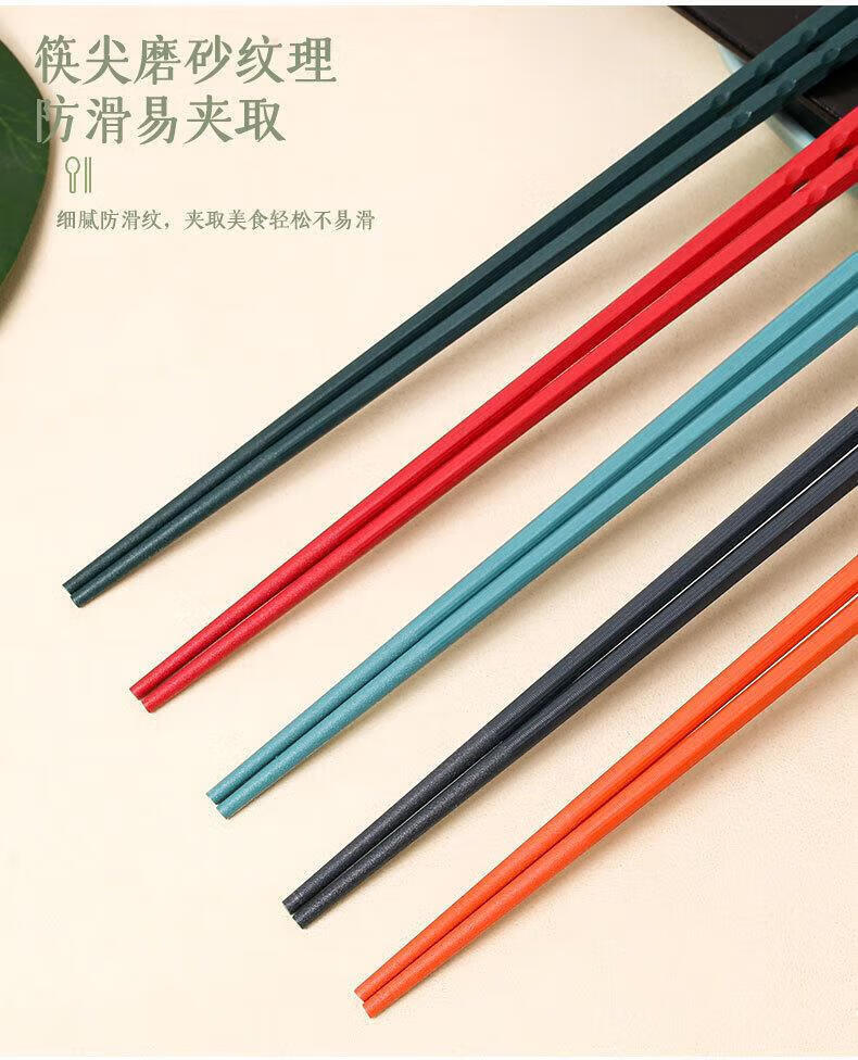 筷子家用一人一筷合金筷专人专用分餐尖嘴指甲筷马卡龙防 多彩筷子-深色-2板(10双) 无规格