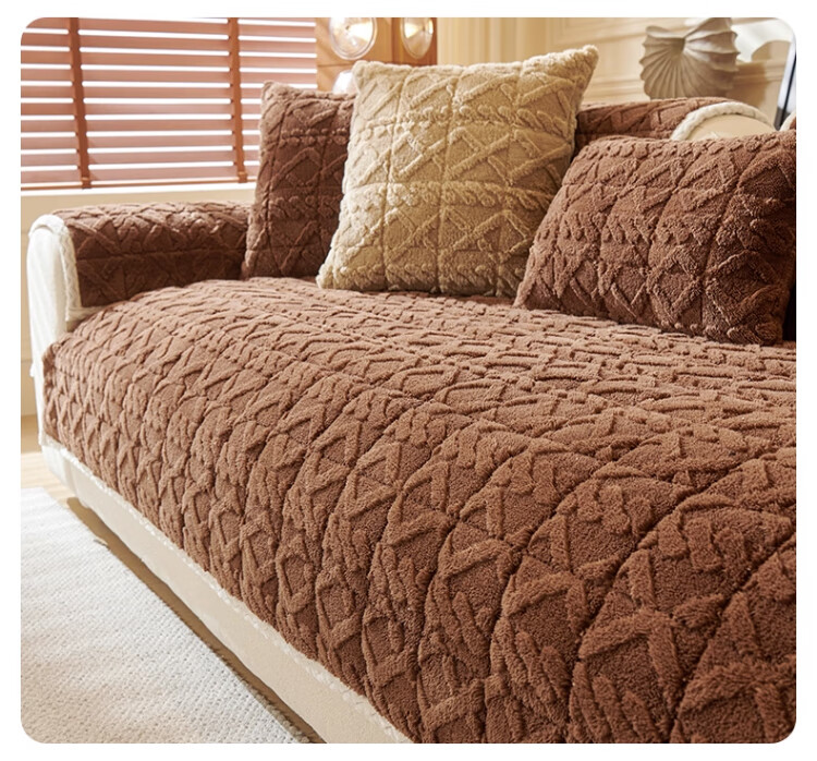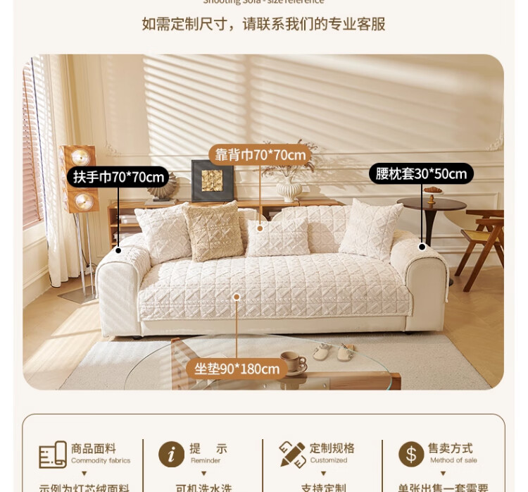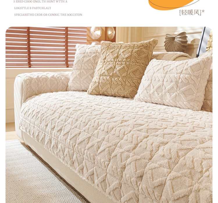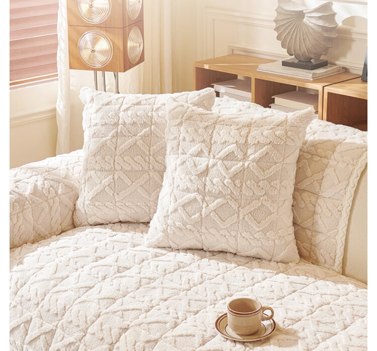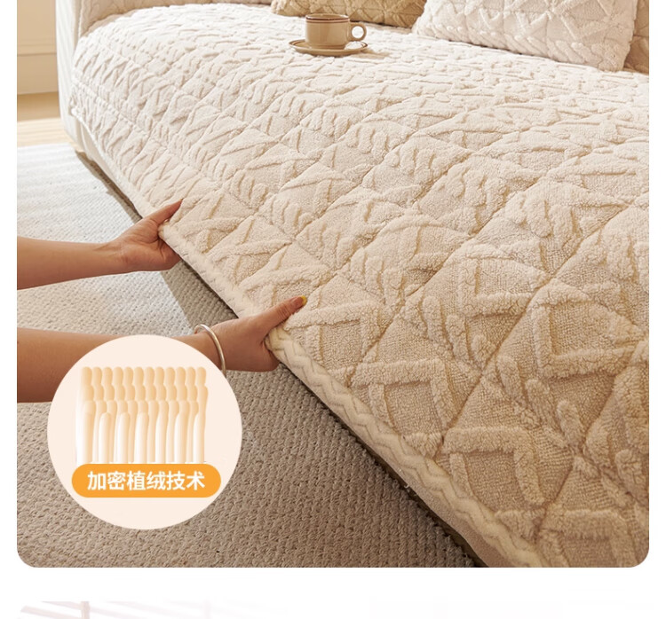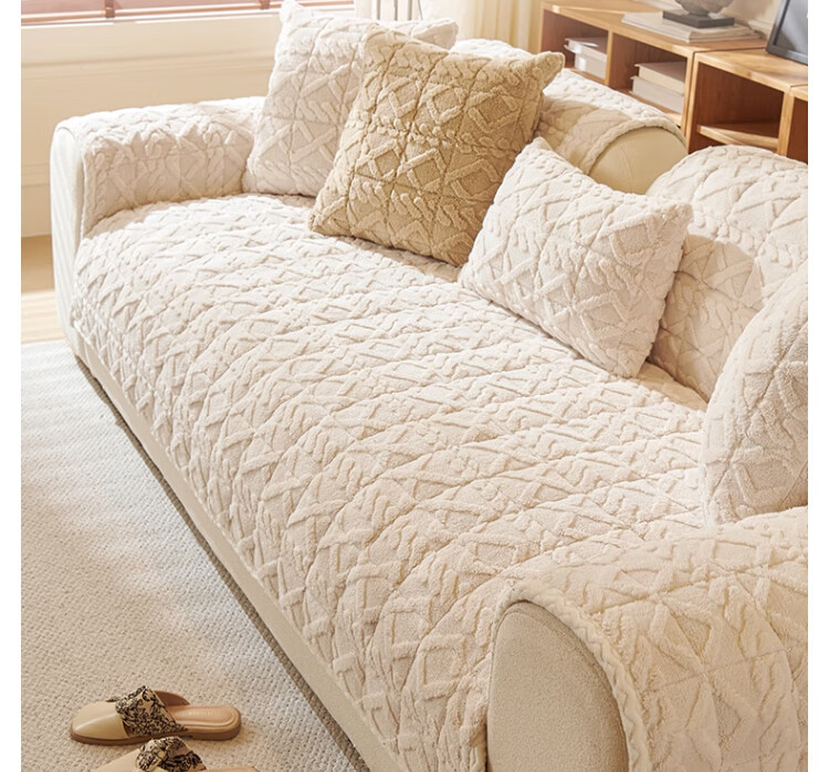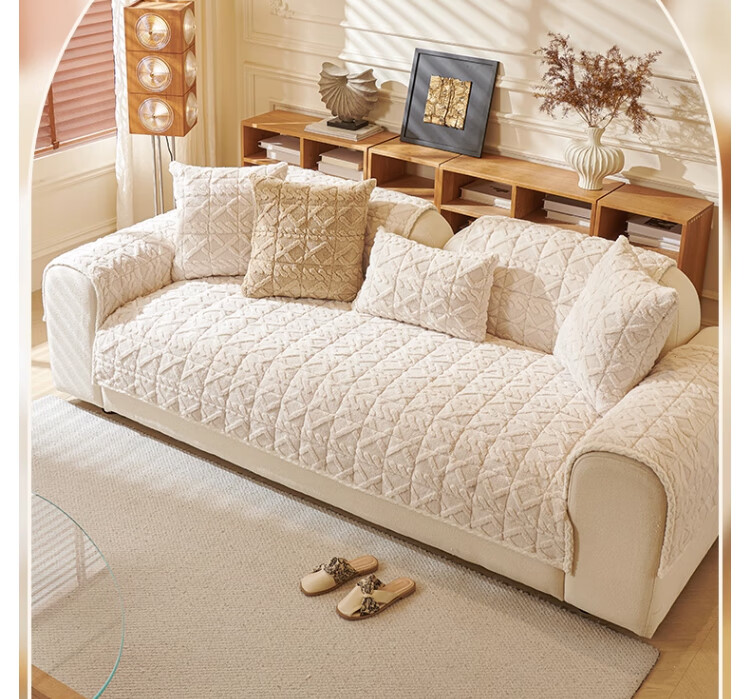 无印良品加厚毛绒沙发垫2025新款冬季夹棉沙发盖布固定防滑座垫防猫抓坐垫 水豚绒-米白【夹棉加厚】 70x180cm (大双人位)