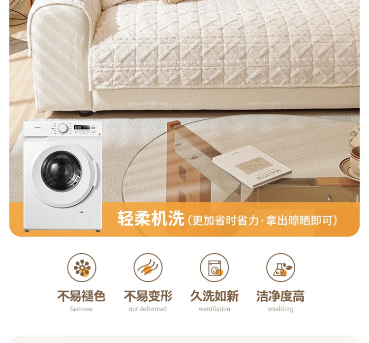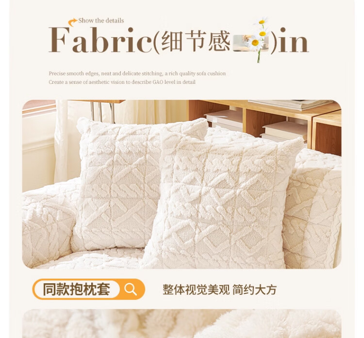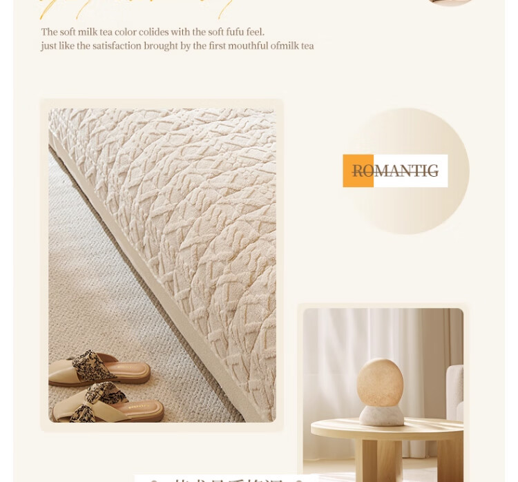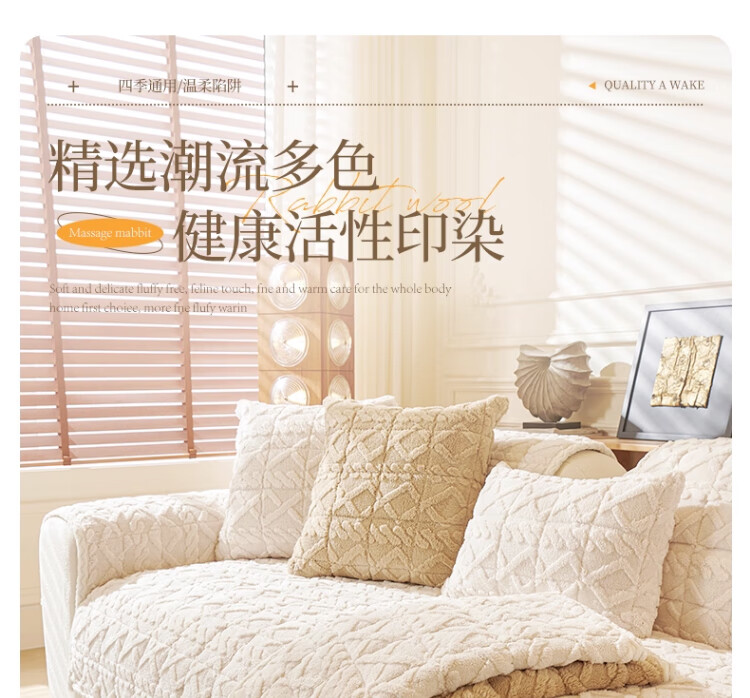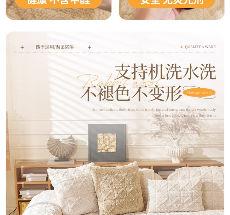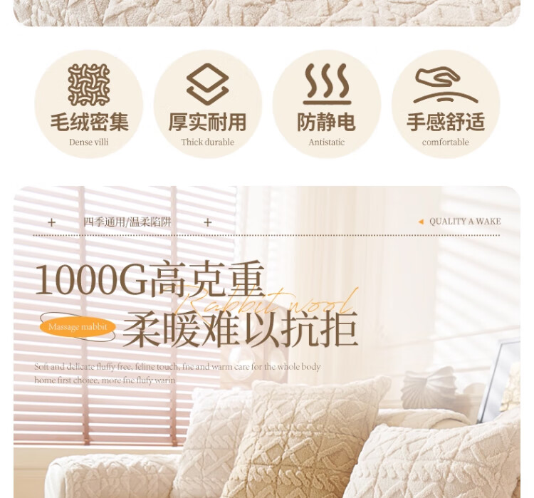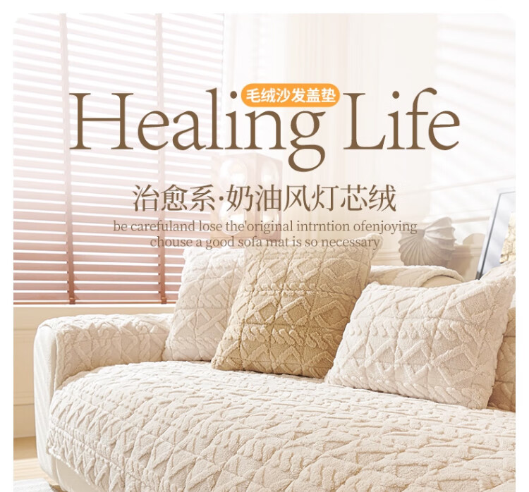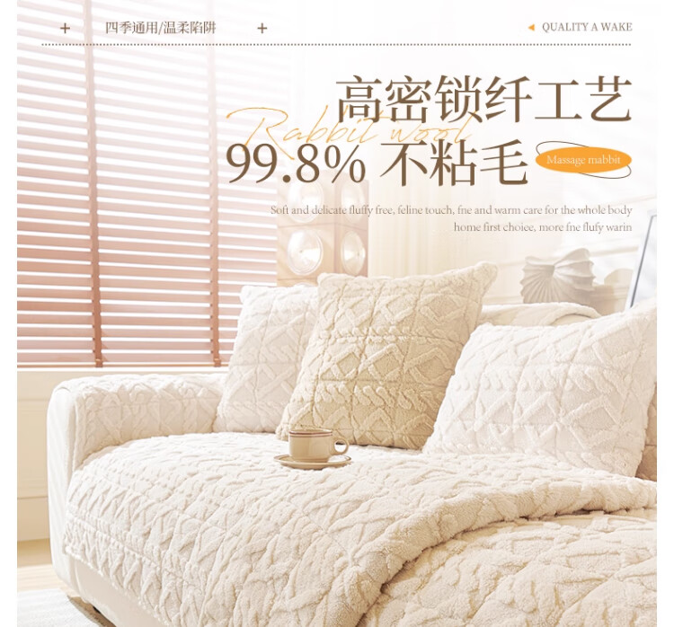 无印良品加厚毛绒沙发垫2025新款冬季夹棉沙发盖布固定防滑座垫防猫抓坐垫 水豚绒-米白【夹棉加厚】 70x180cm (大双人位)