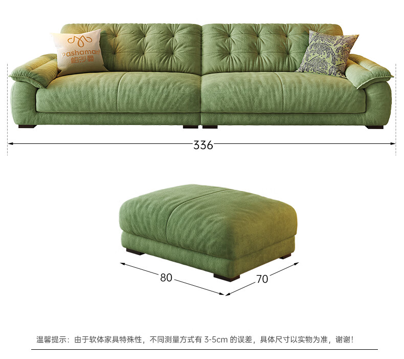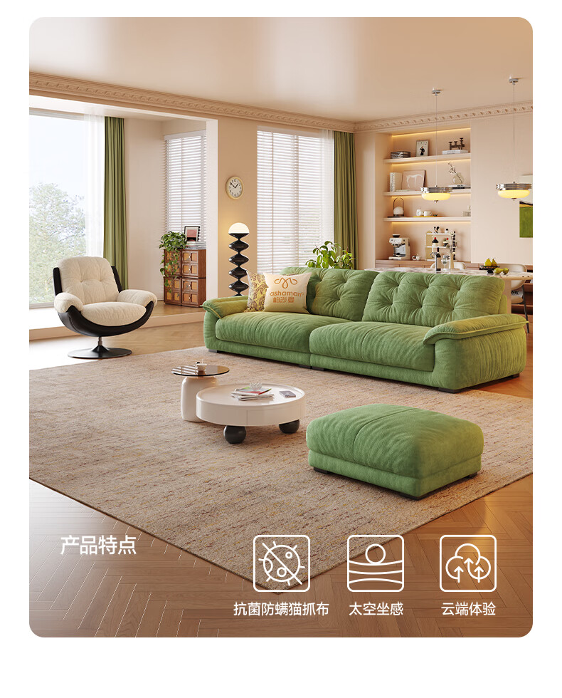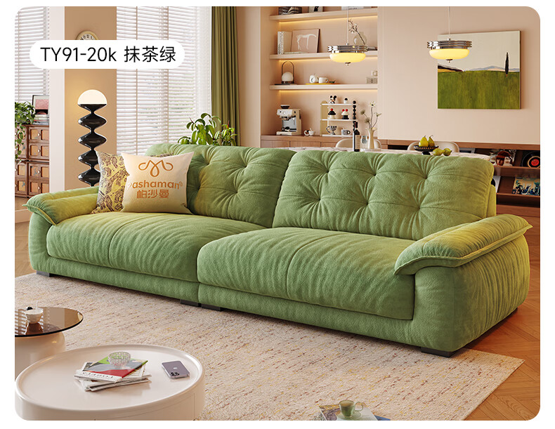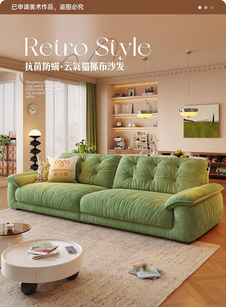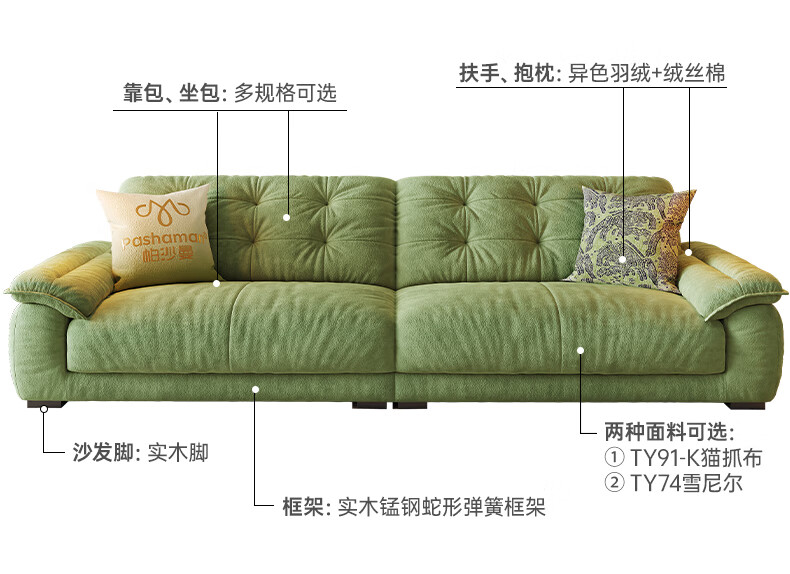 帕沙曼可拆洗沙发布艺小户型客厅现代简约云朵沙发直排猫抓布绿色2930ZF 【可拆洗款】2.68米多人位 抗螨雪尼尔TY74【舒享版】 羽绒+乳胶+竹炭海绵