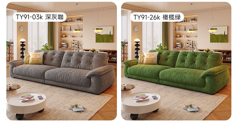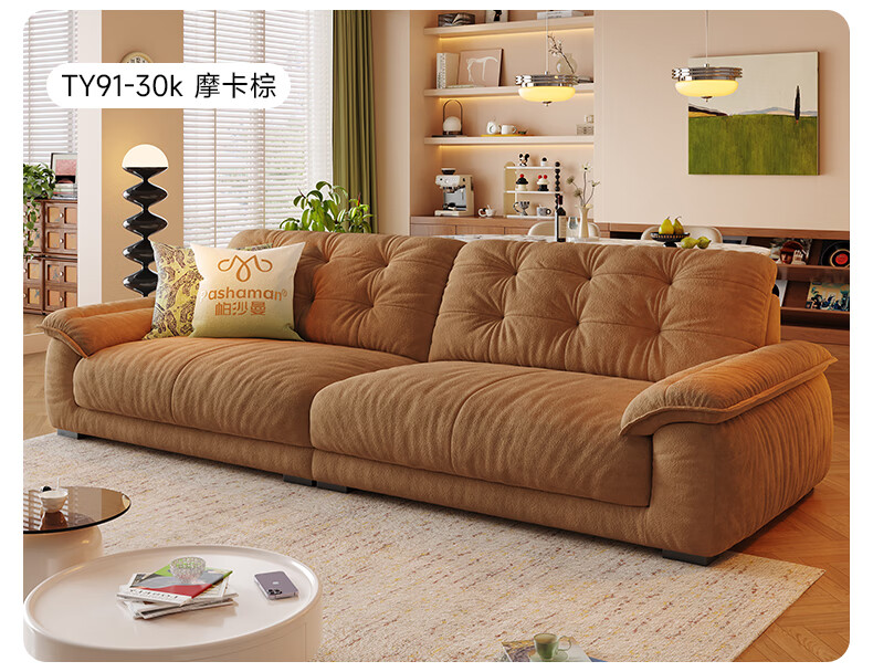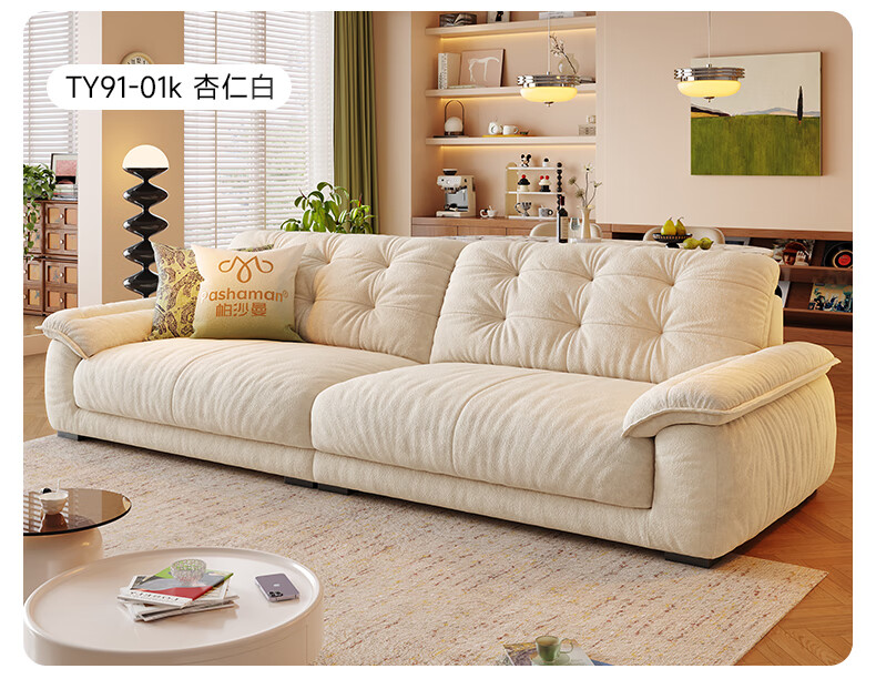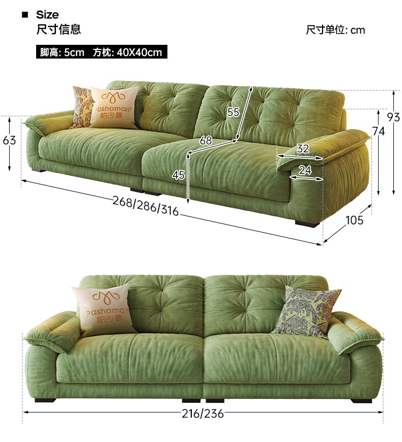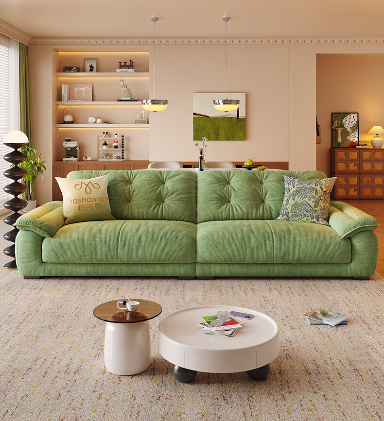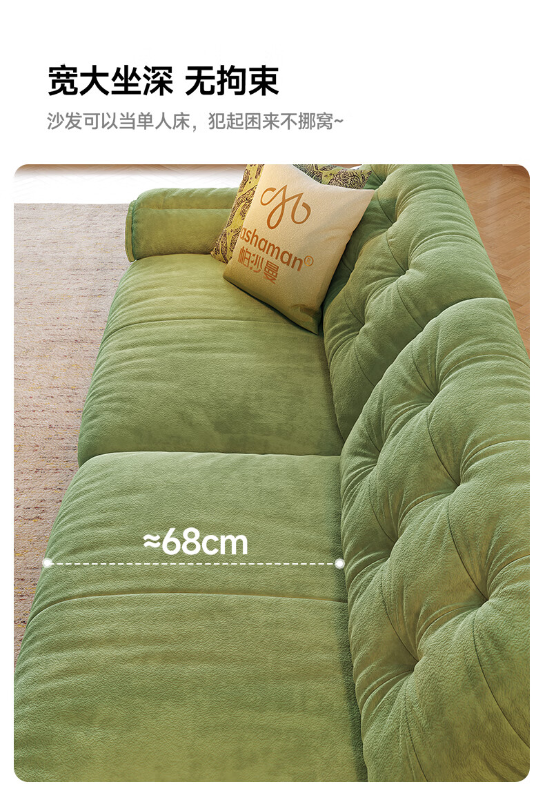 帕沙曼可拆洗沙发布艺小户型客厅现代简约云朵沙发直排猫抓布绿色2930ZF 【可拆洗款】2.68米多人位 抗螨雪尼尔TY74【舒享版】 羽绒+乳胶+竹炭海绵