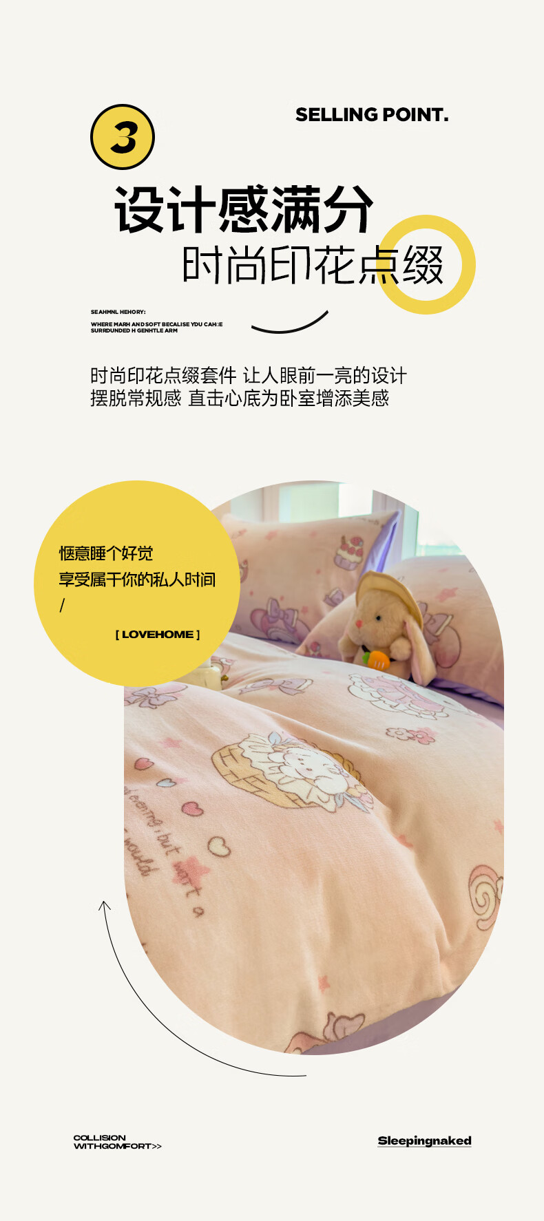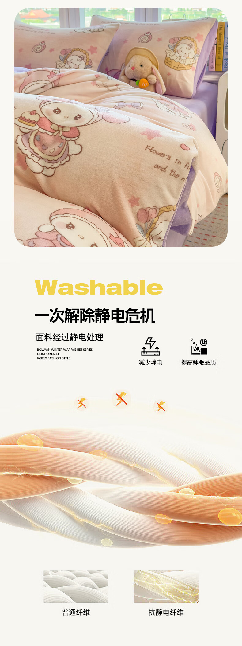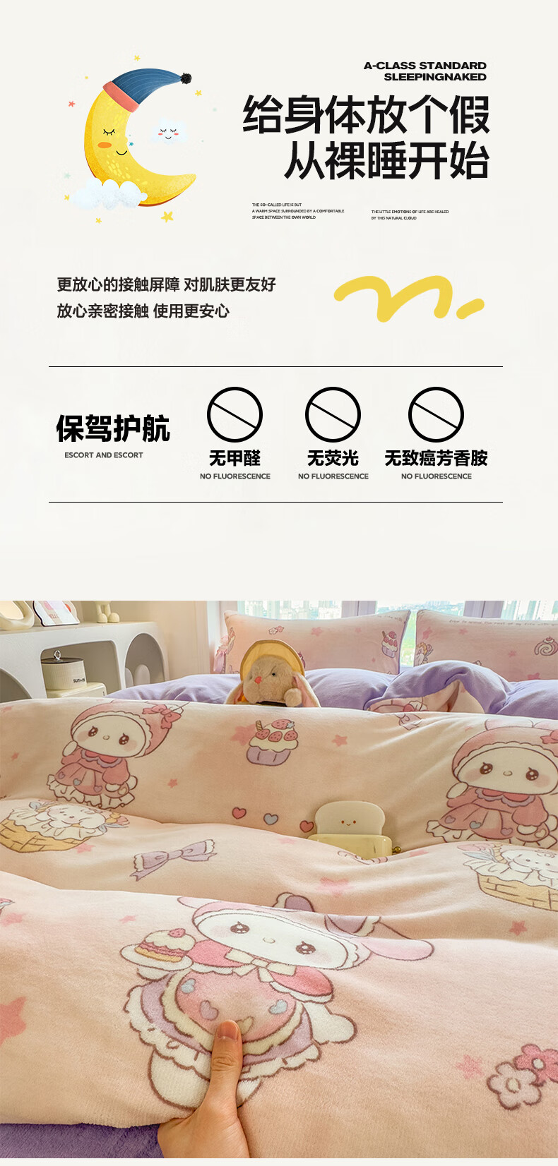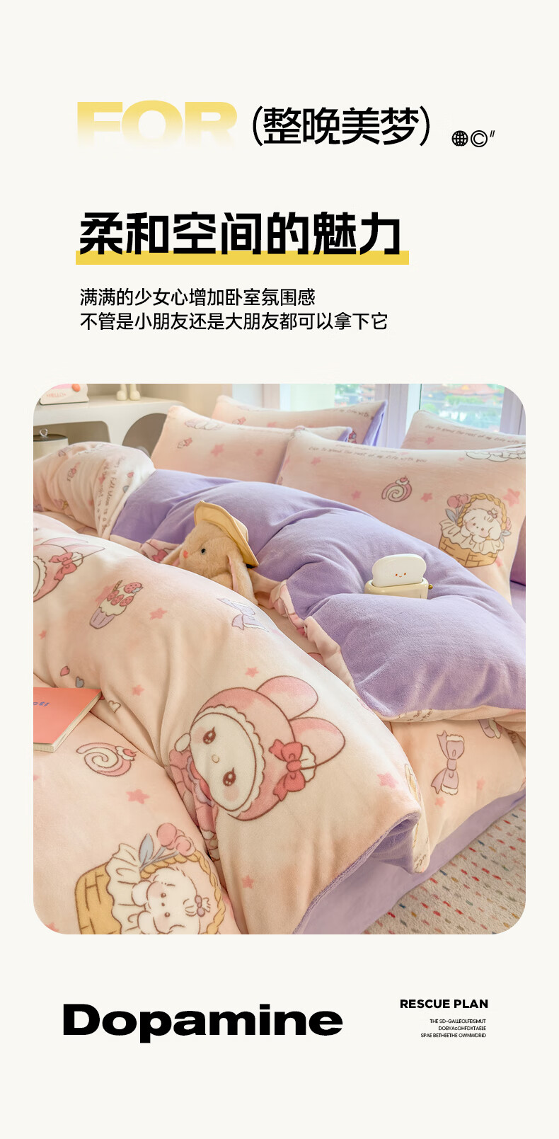 VJE秋冬加厚牛奶绒床上四件套可爱卡通加绒珊瑚绒床单被套三件套床品 萌兔小屋 四件套1.5m 床单款 (被套200*230cm)
