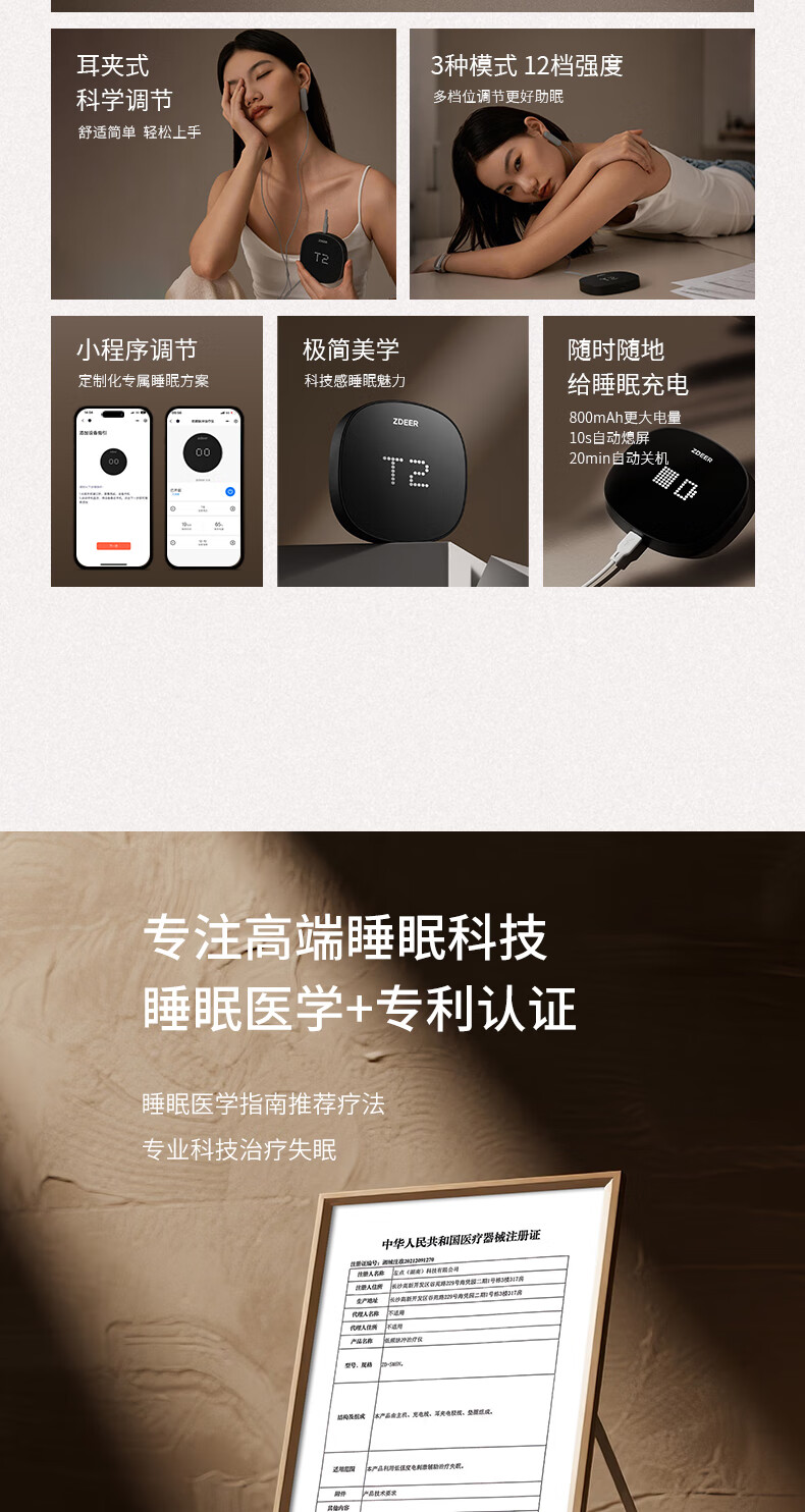 左点zdeer智能睡眠仪助眠仪微电流刺激家用理疗仪2套耗材