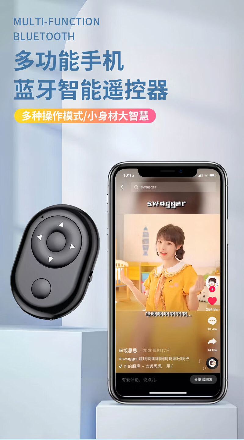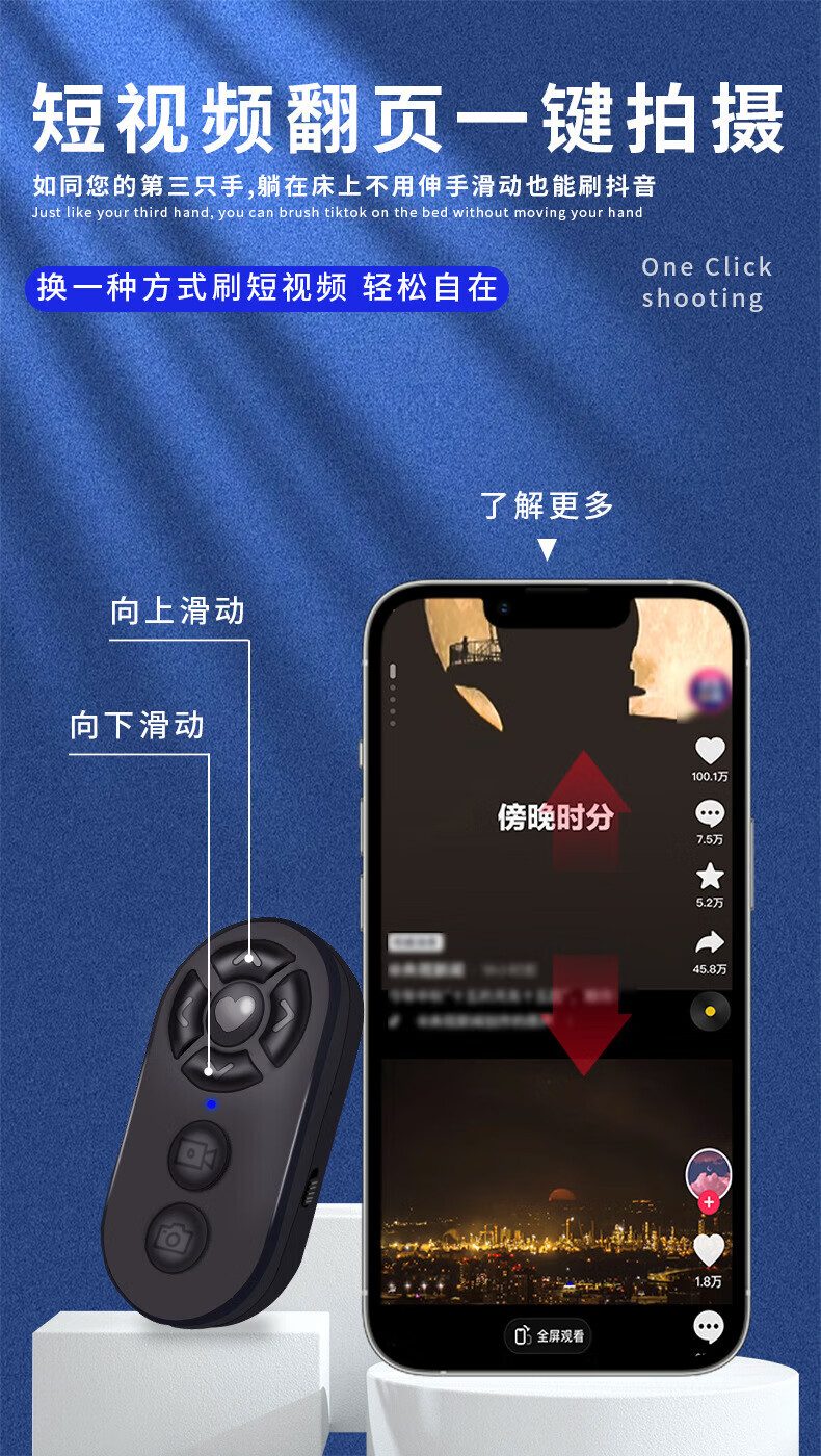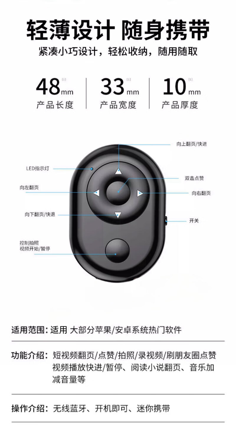 苹果安卓手机刷抖音神器 蓝牙遥控器拍照录视频看小说美颜相机翻页懒人刷视频ipad平板 【专享链接】6键蓝牙遥控器