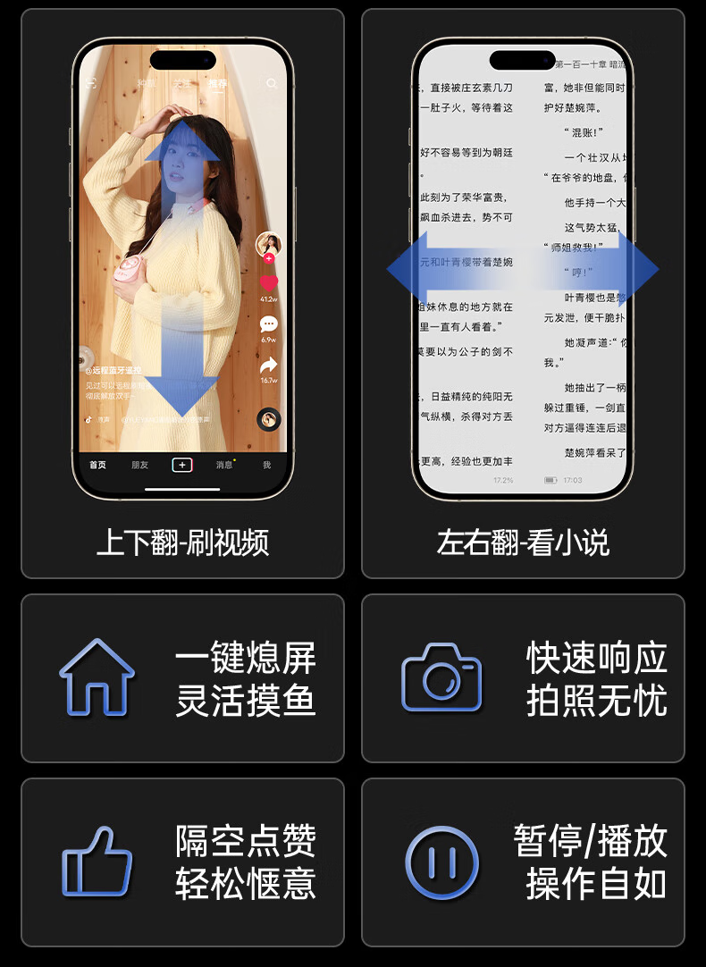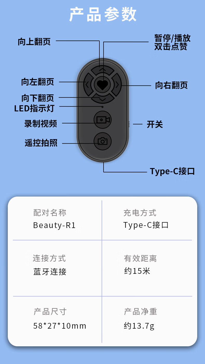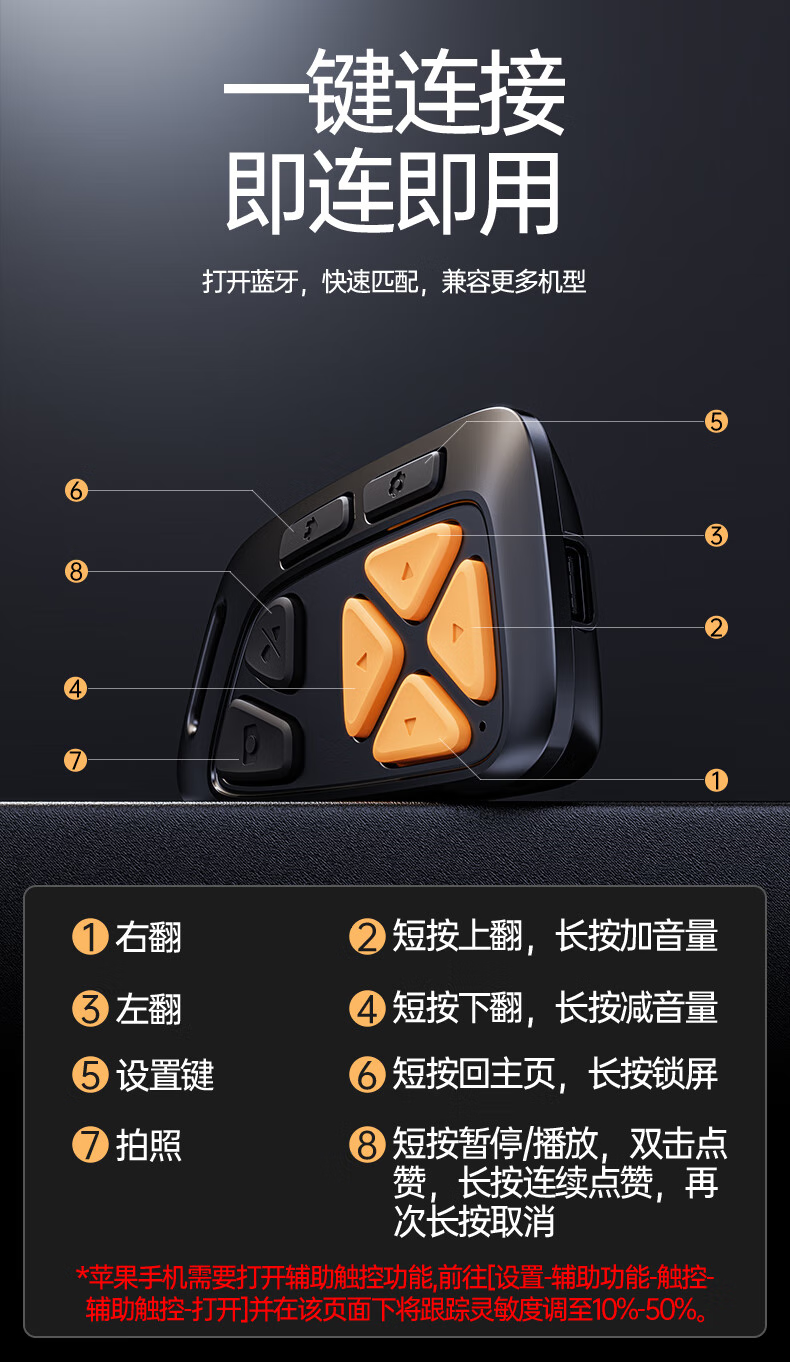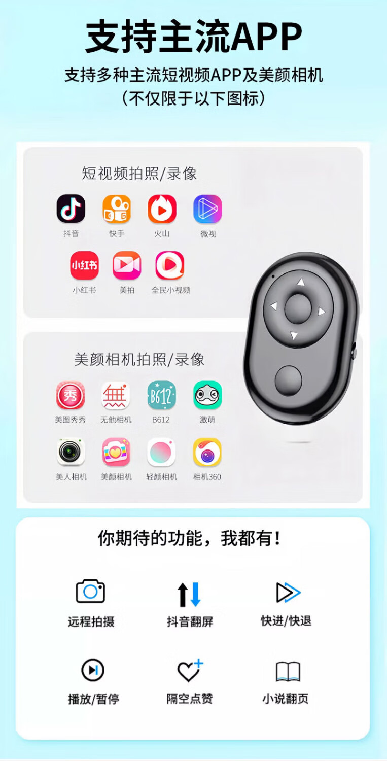 苹果安卓手机刷抖音神器 蓝牙遥控器拍照录视频看小说美颜相机翻页懒人刷视频ipad平板 【专享链接】6键蓝牙遥控器