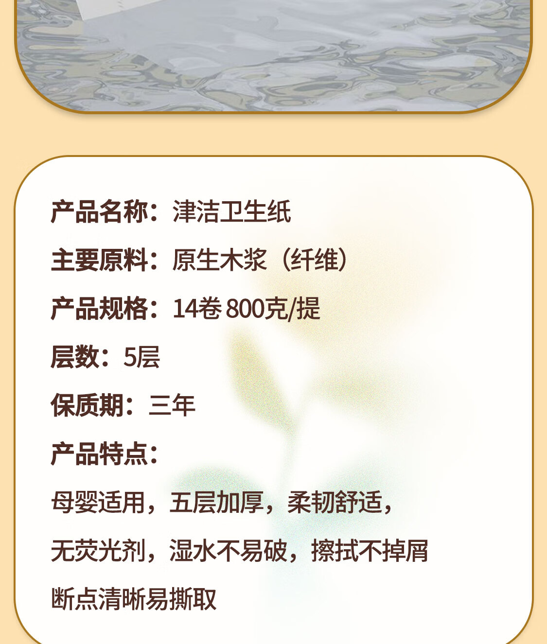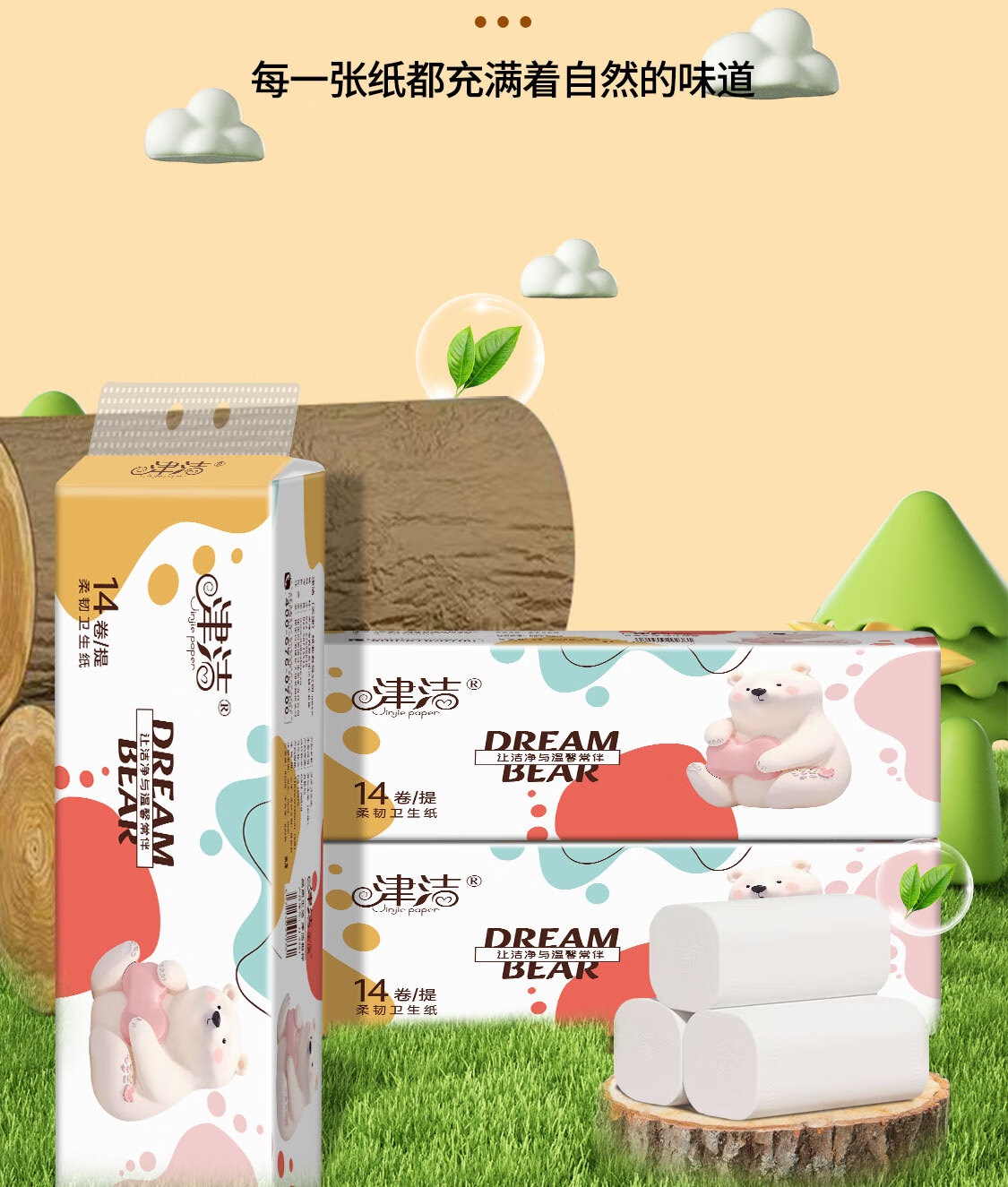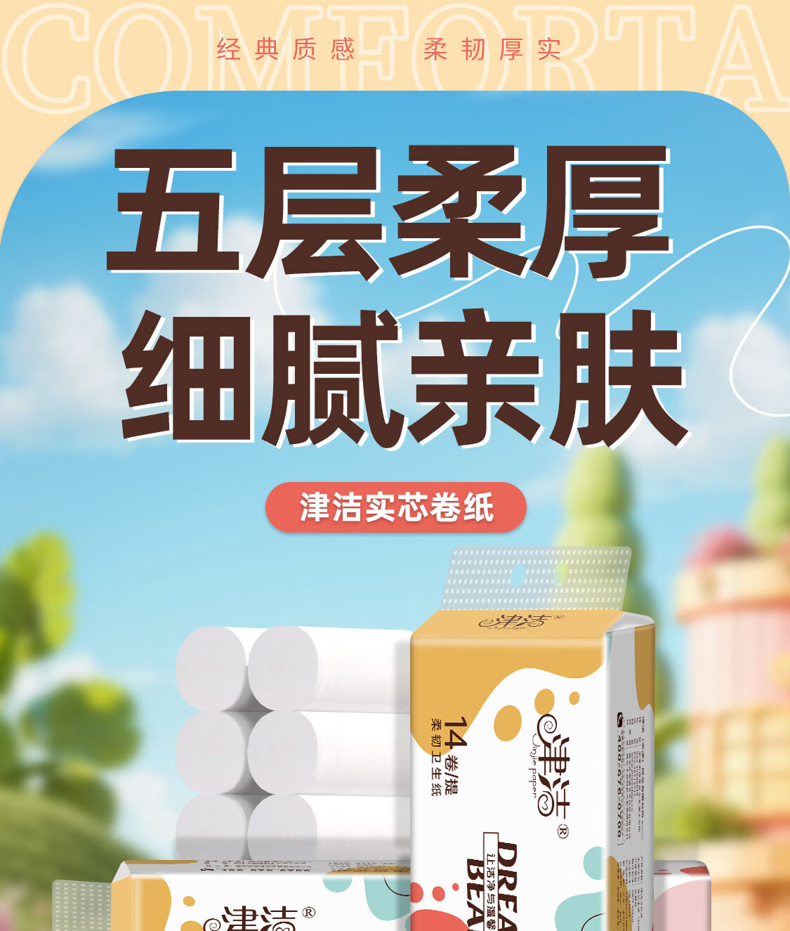 津洁 无芯卷纸【800g/提】五层加厚大卷卷筒纸实芯卷纸家用纸巾 5层 800g*14卷 家用大卷1提装