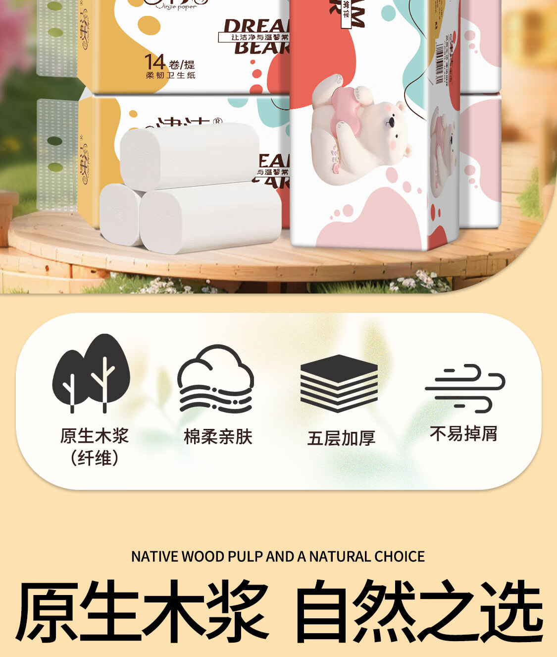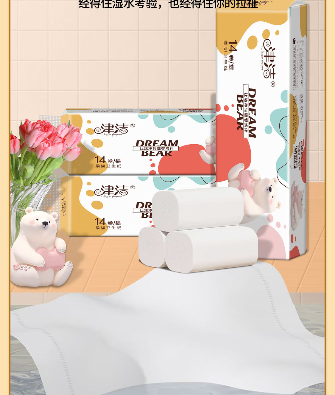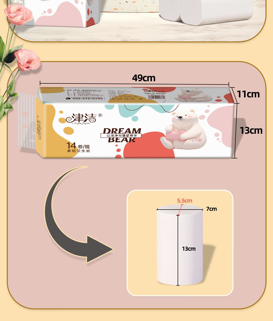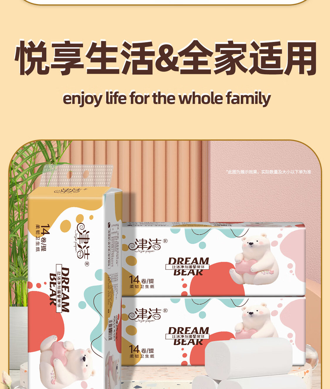 津洁 无芯卷纸【800g/提】五层加厚大卷卷筒纸实芯卷纸家用纸巾 5层 800g*14卷 家用大卷1提装