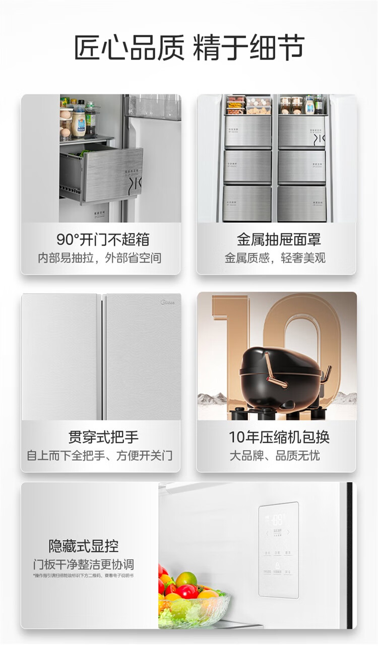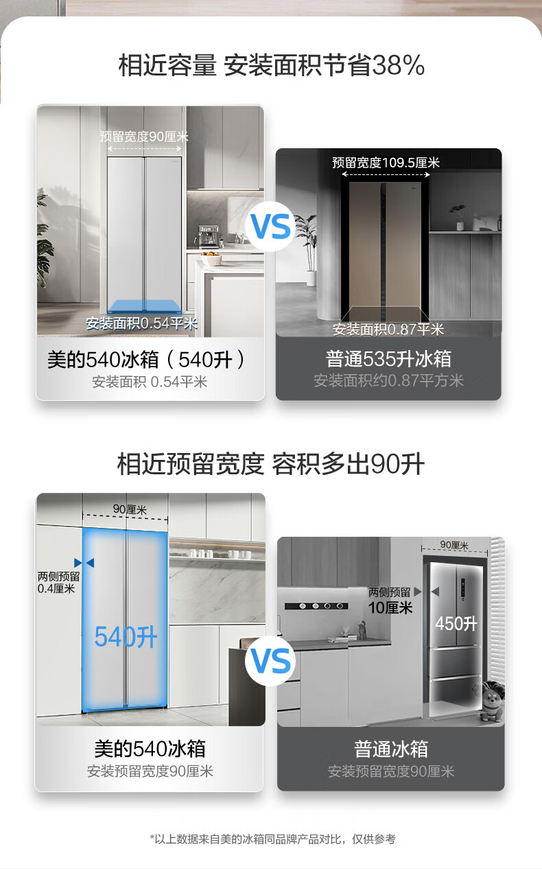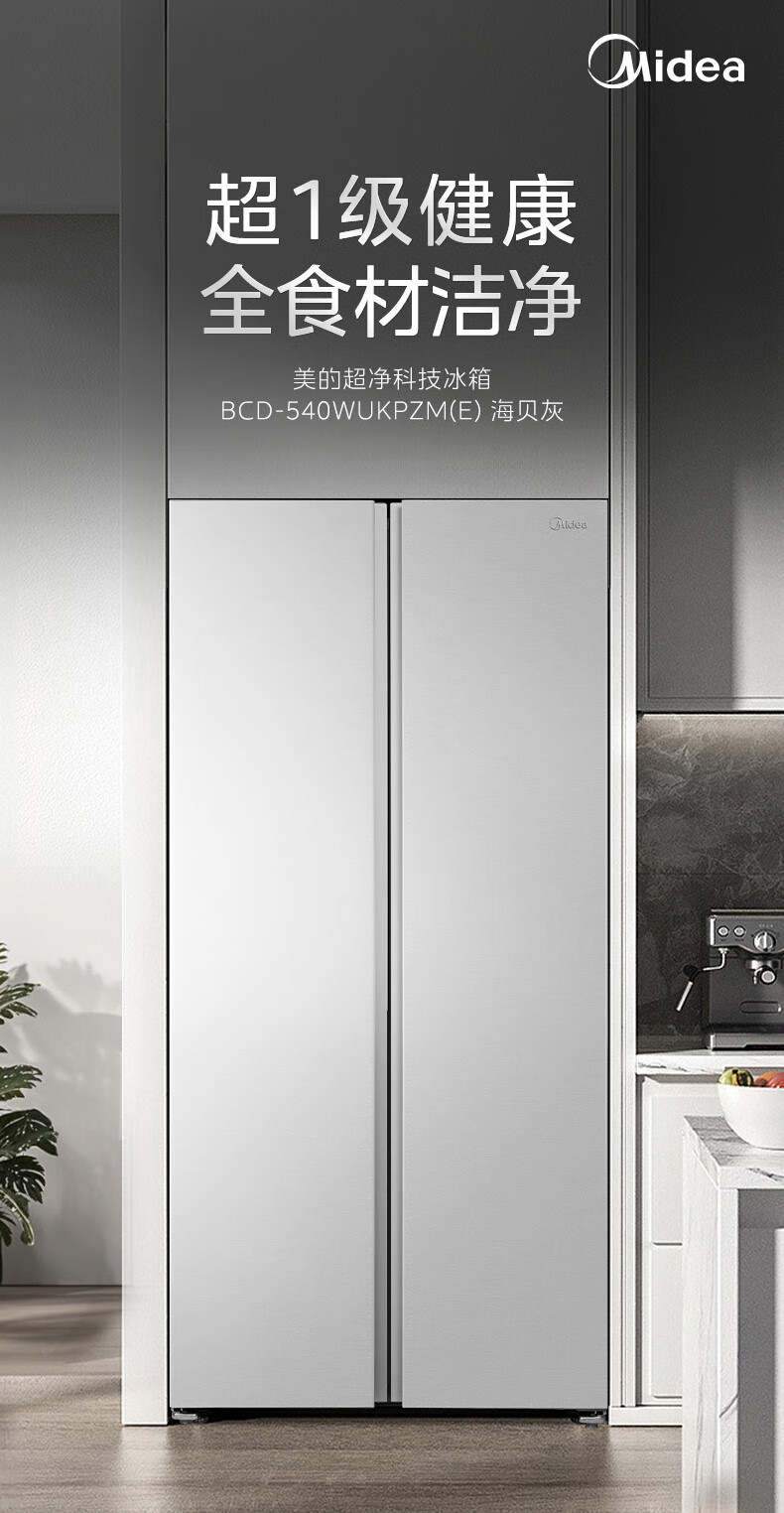 美的(Midea)M60系列540升对开门冰箱除菌超薄零嵌入式大容量一级能效风冷BCD-540WUKPZM(E)以旧换新国家补贴