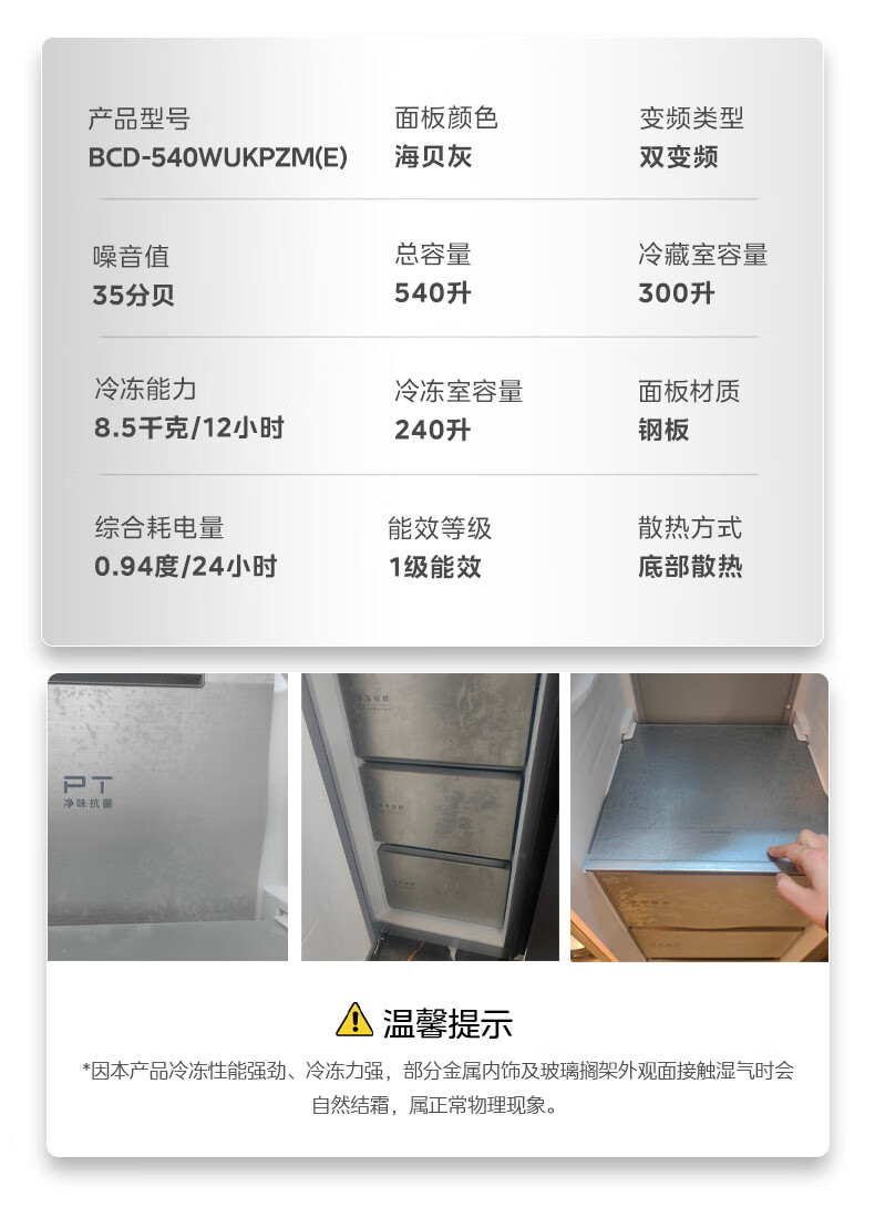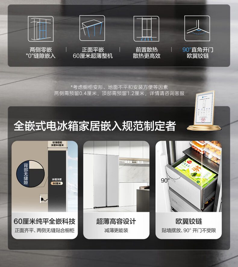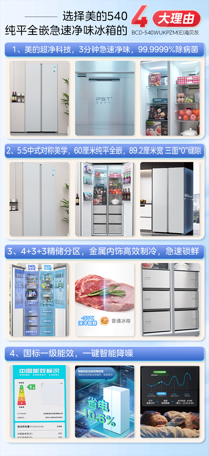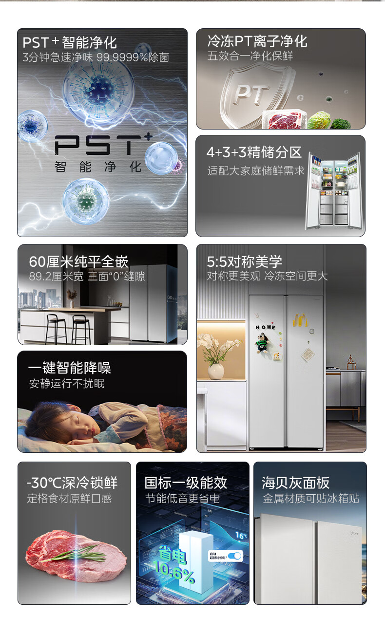 美的(Midea)M60系列540升对开门冰箱除菌超薄零嵌入式大容量一级能效风冷BCD-540WUKPZM(E)以旧换新国家补贴