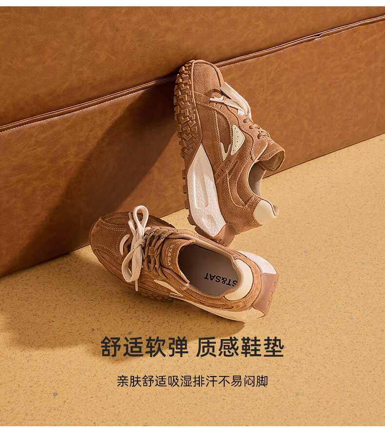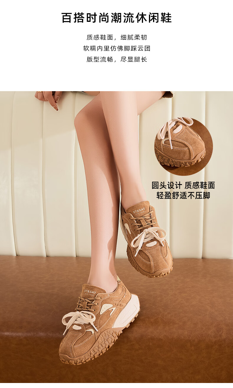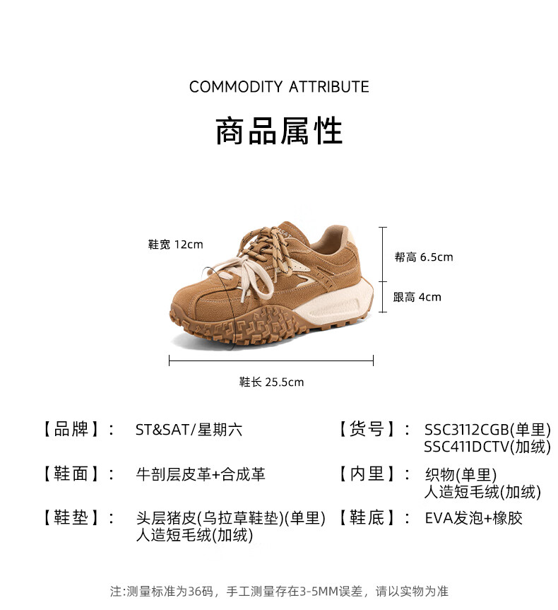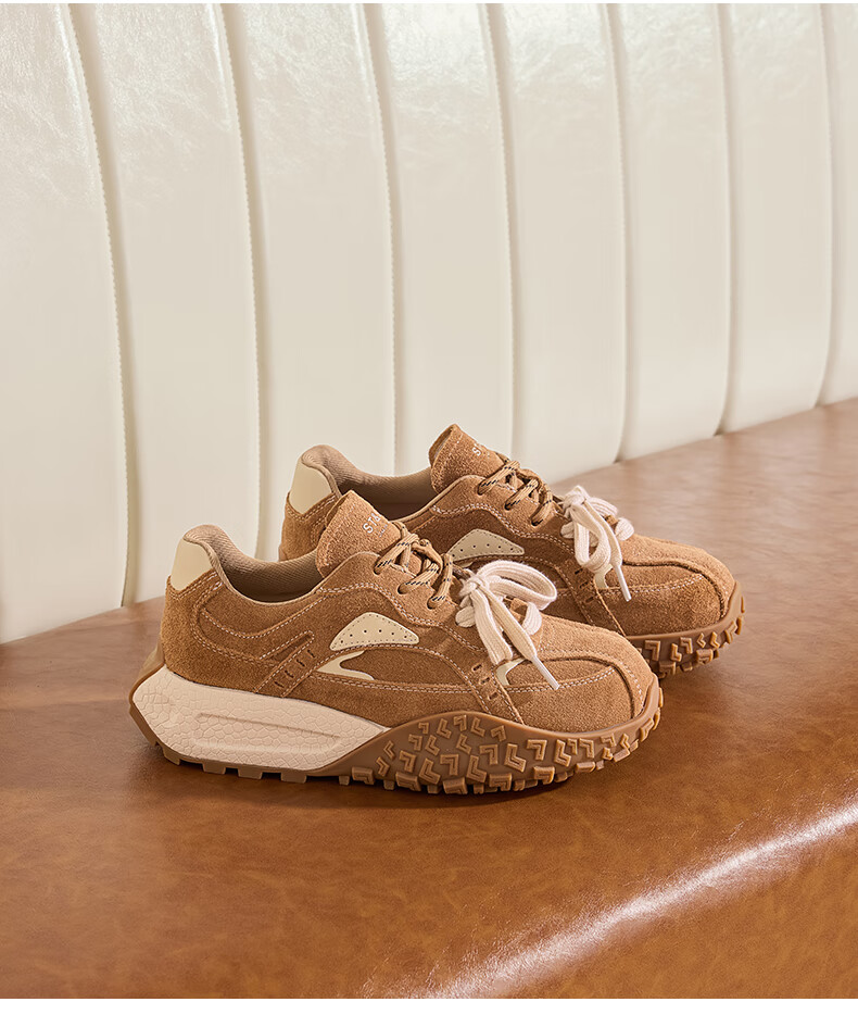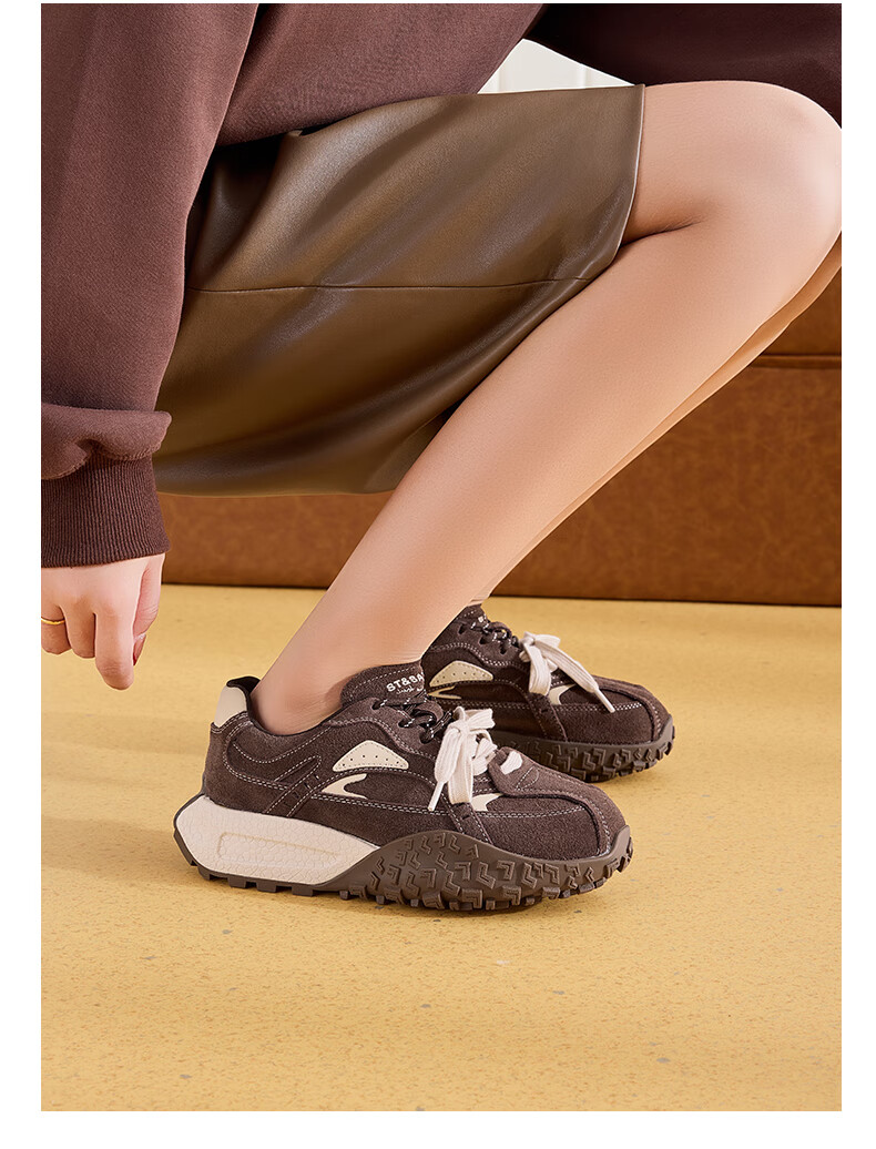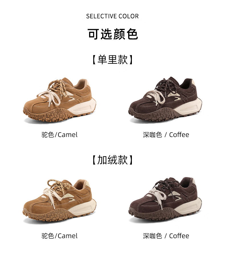 星期六内增高德训鞋女鞋2025新款秋冬加绒阿甘鞋厚底舒适休闲运动女鞋 深咖色【加绒款】 36