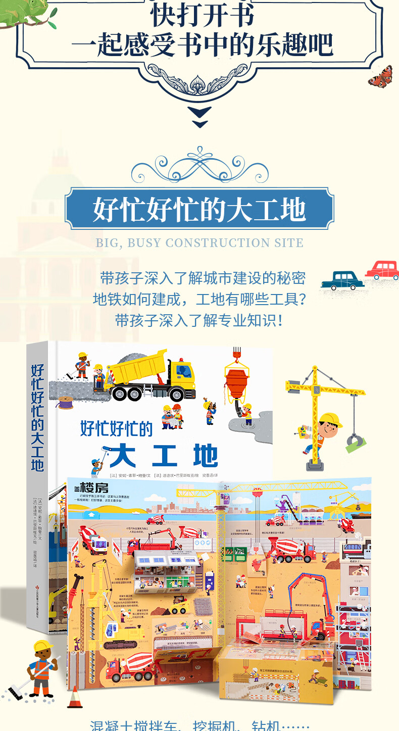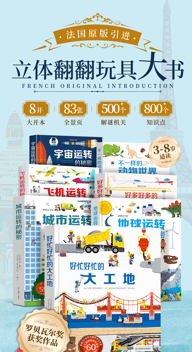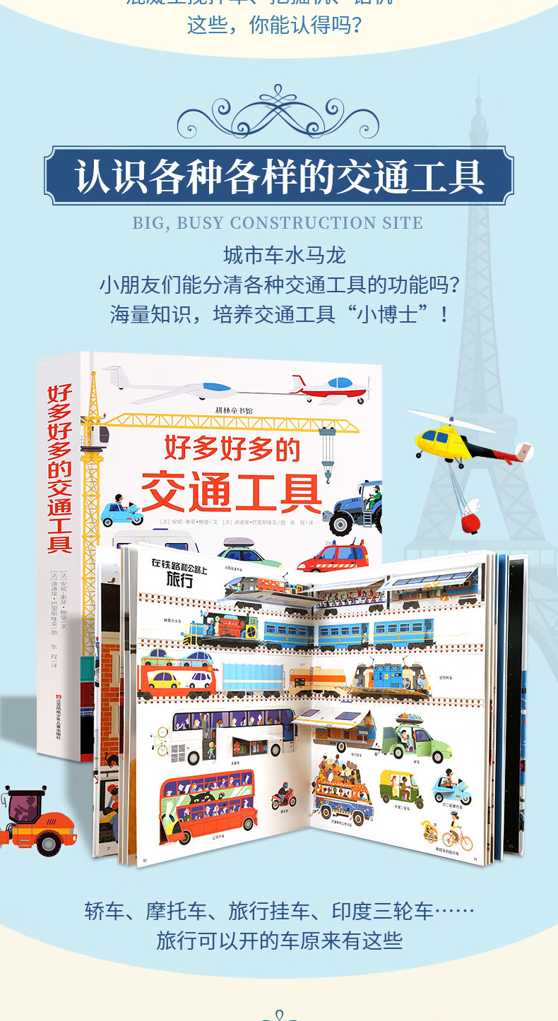 【法国引进】礼盒装好多好多的交通工具 儿童科普3D立体书3-6-8岁翻翻书宝宝撕不烂汽车早教启蒙4五7绘本 揭秘飞机动物大工地机关宝宝生日礼物 好忙好忙的大工地