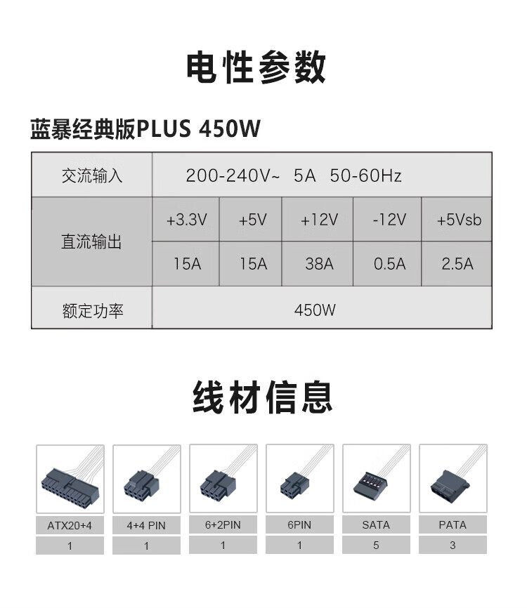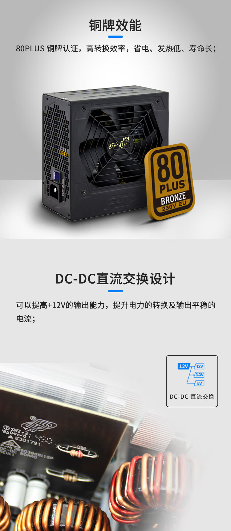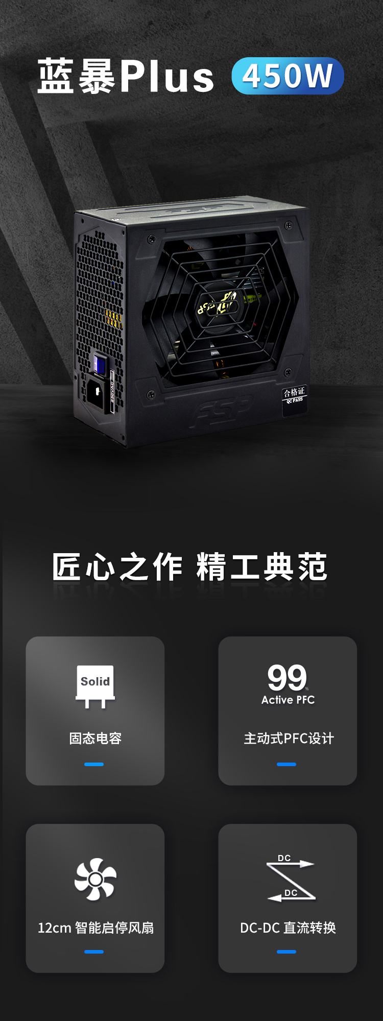 全汉(FSP)额定450W 蓝暴经典PLUS450W电源 (銅牌认证/固态电容/DC-DC)