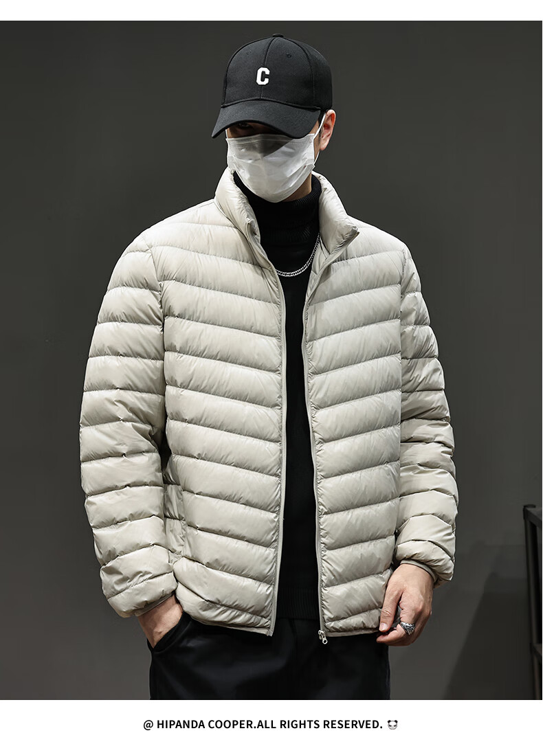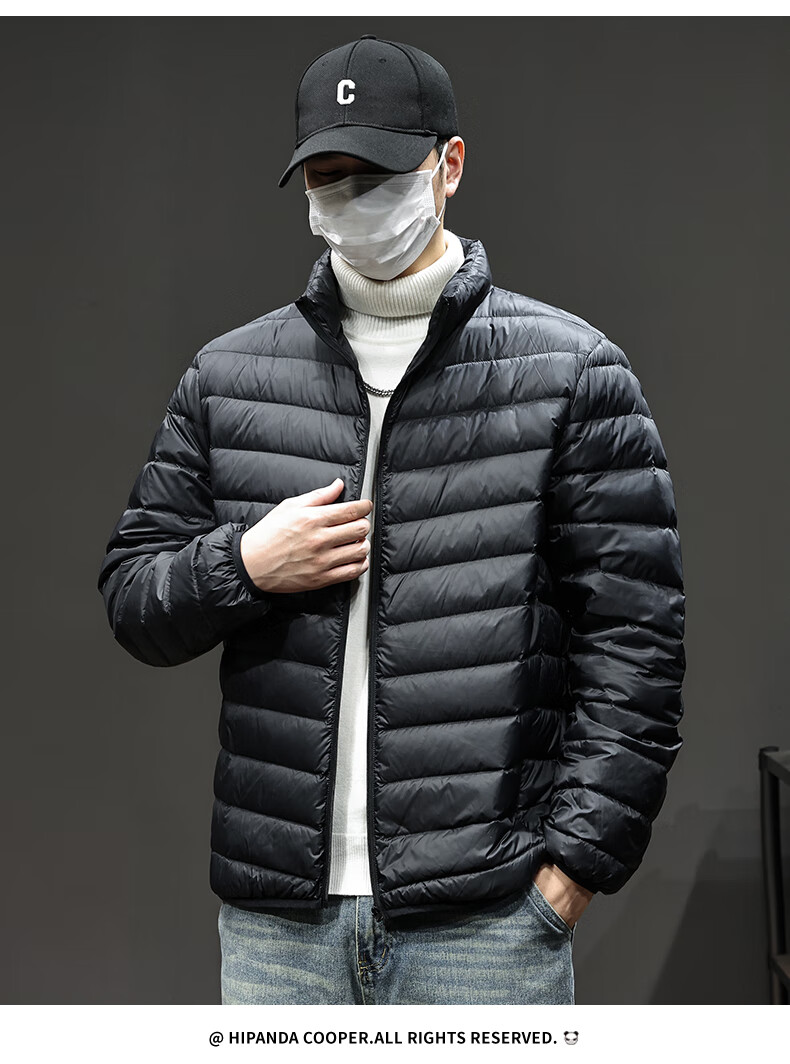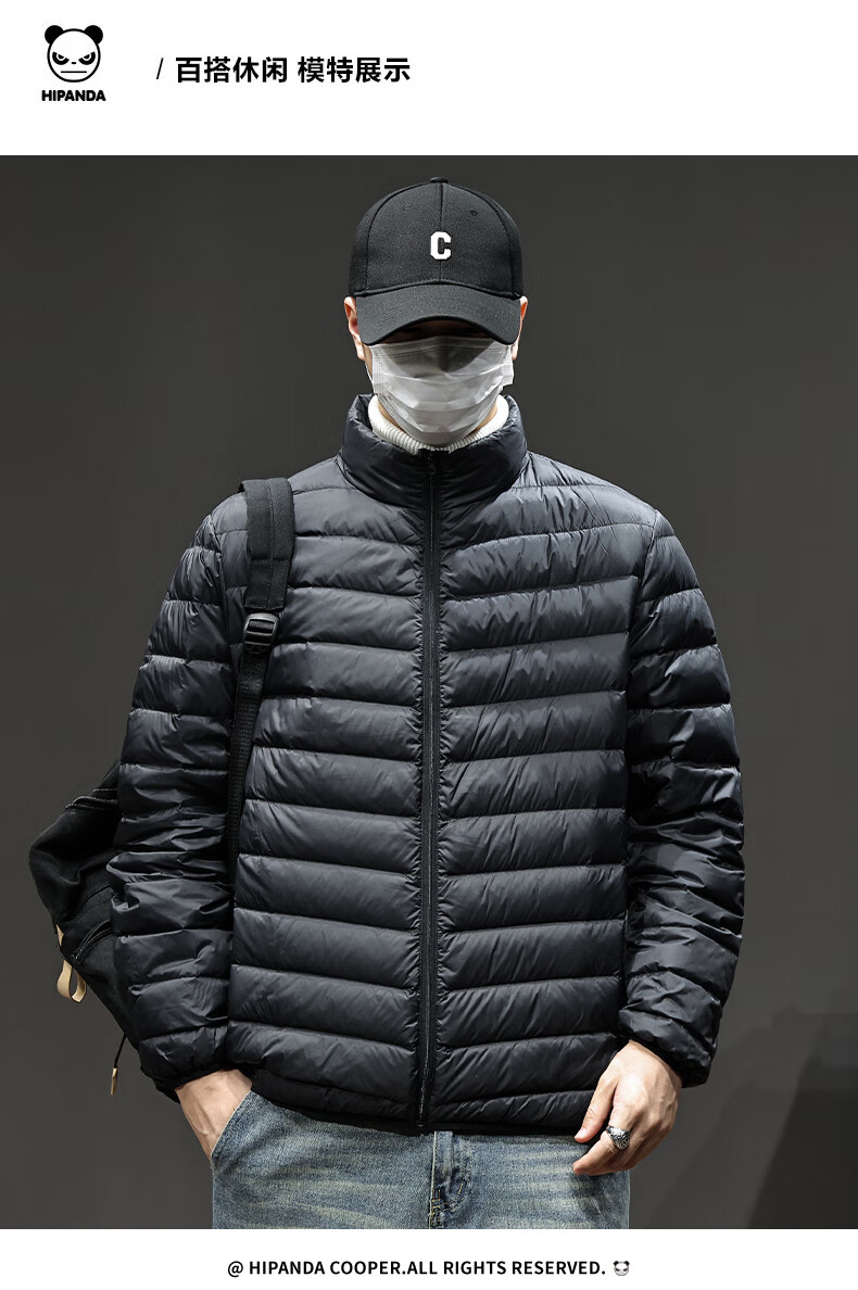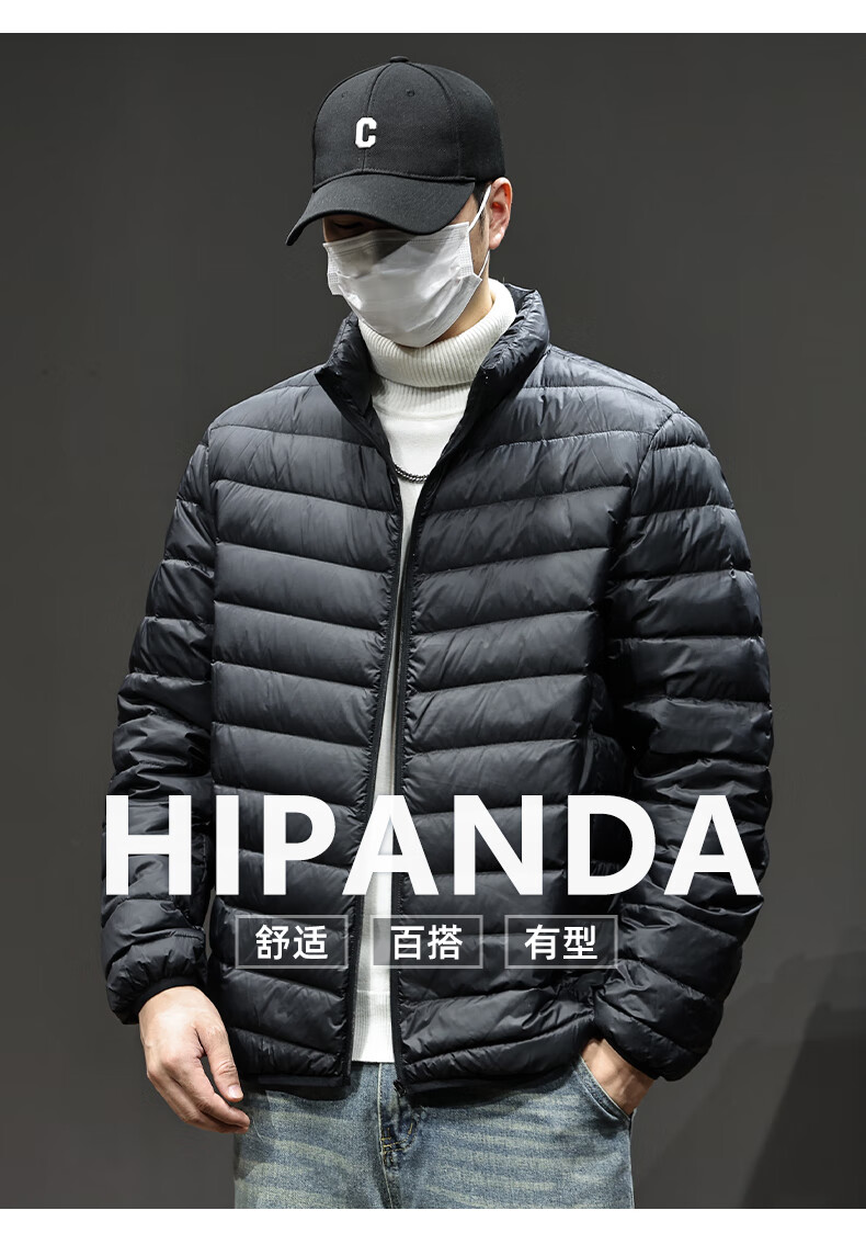 HIPANDA你好熊猫羽绒服男2025冬季新款男士保暖修身短款休闲立领外套男款 黑色 M