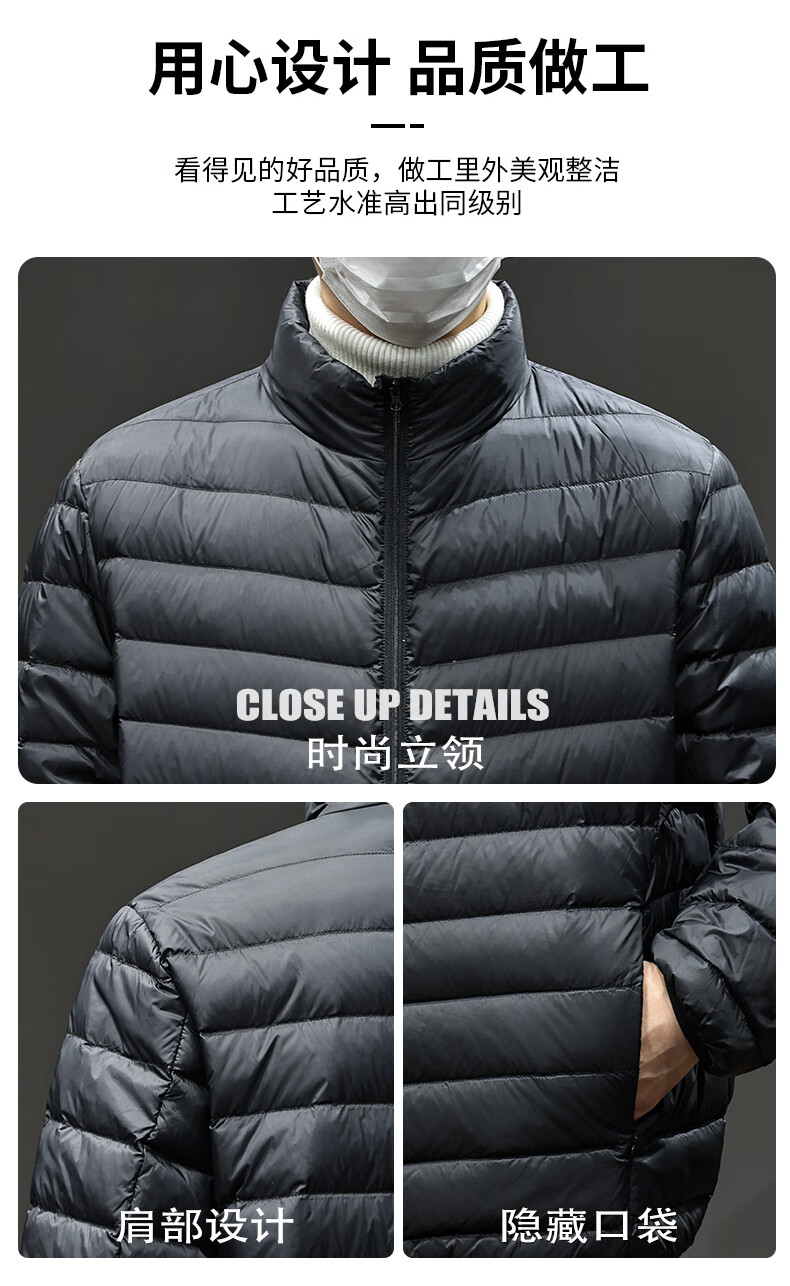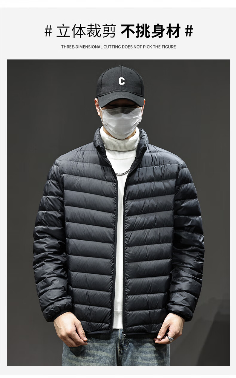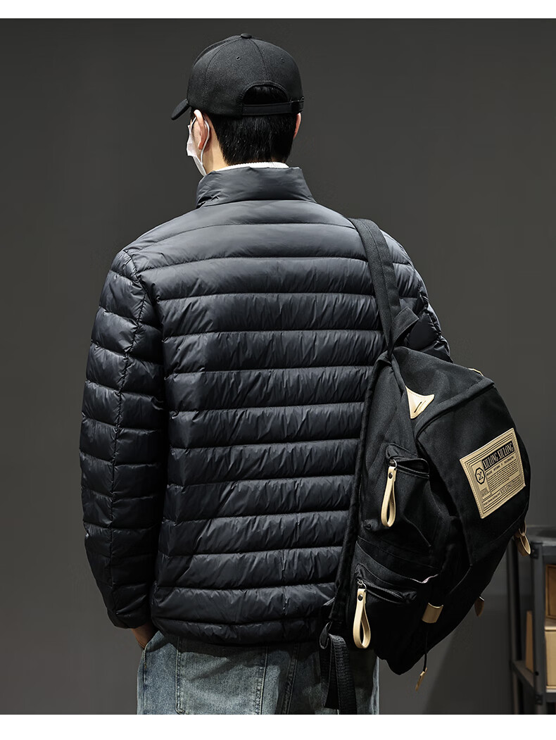 HIPANDA你好熊猫羽绒服男2025冬季新款男士保暖修身短款休闲立领外套男款 黑色 M