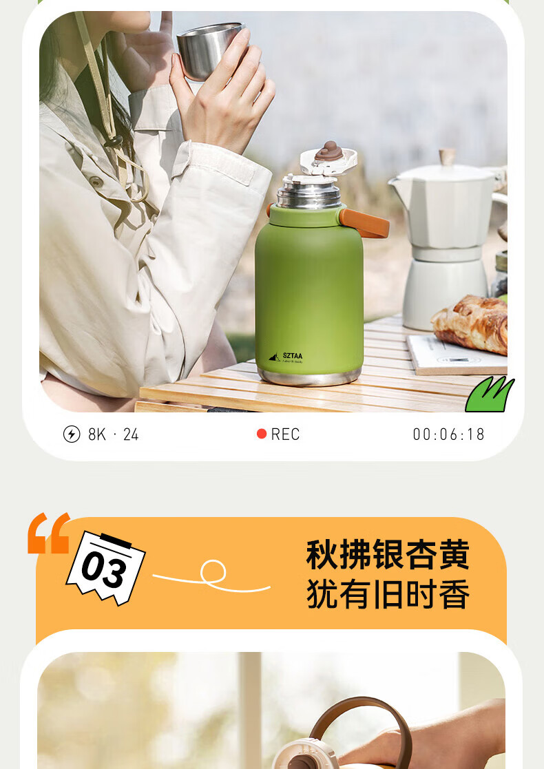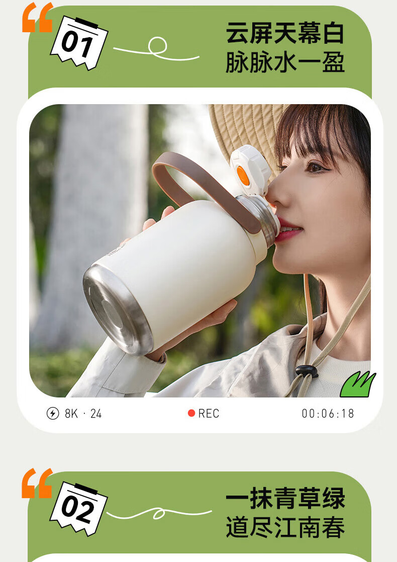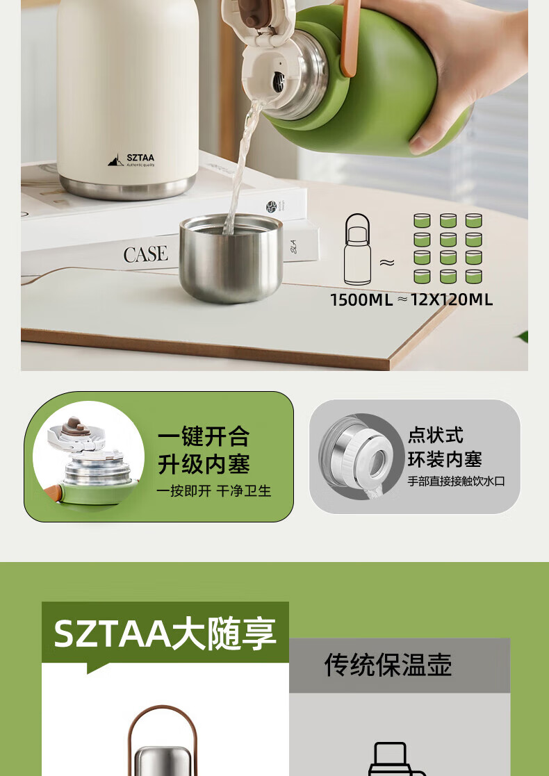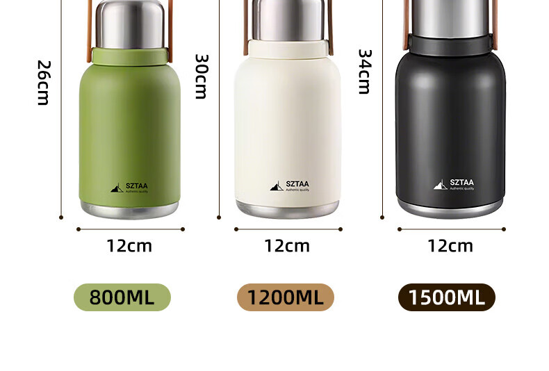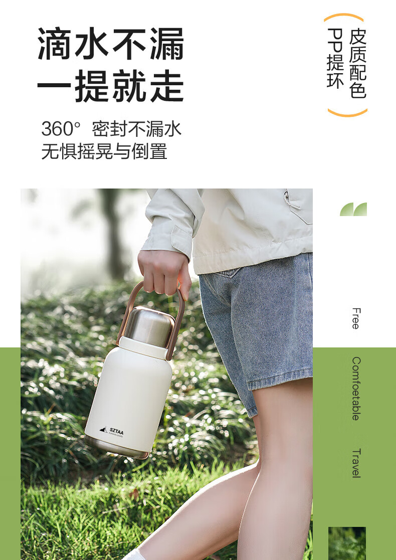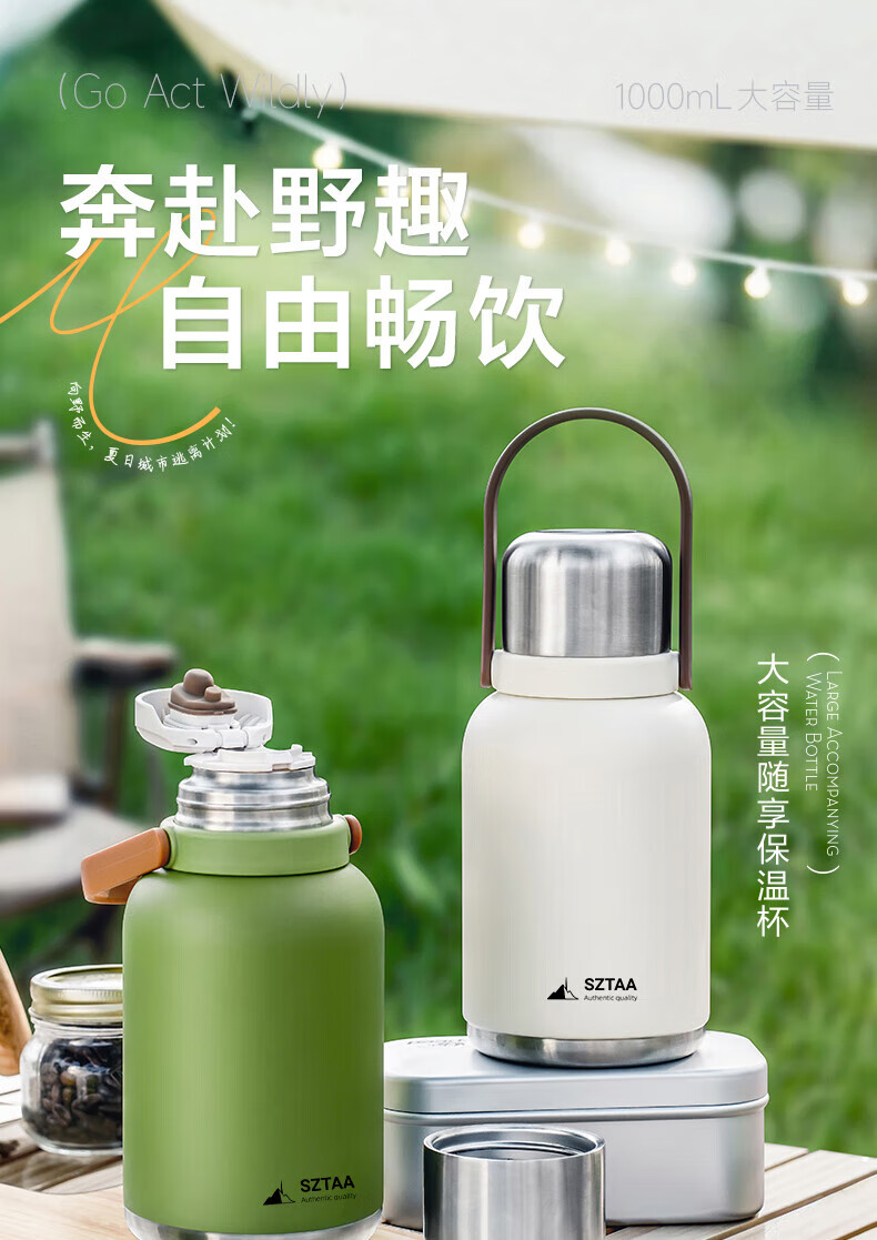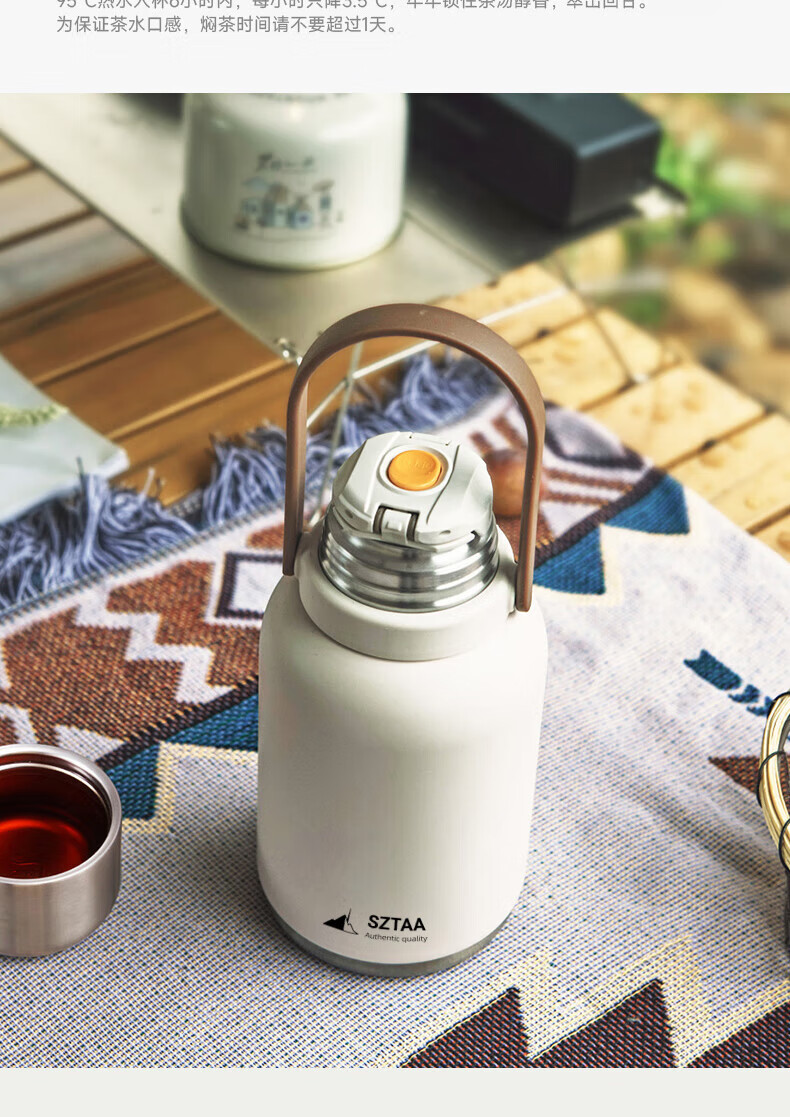 SZTAA保温杯大容量男女士户外旅行水杯316不锈钢保温壶便携车载大肚杯 珍珠白【抗菌316+便携杯套】1200ml