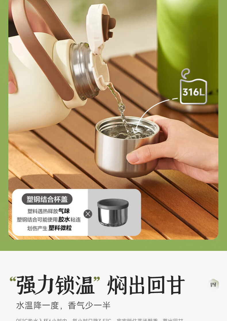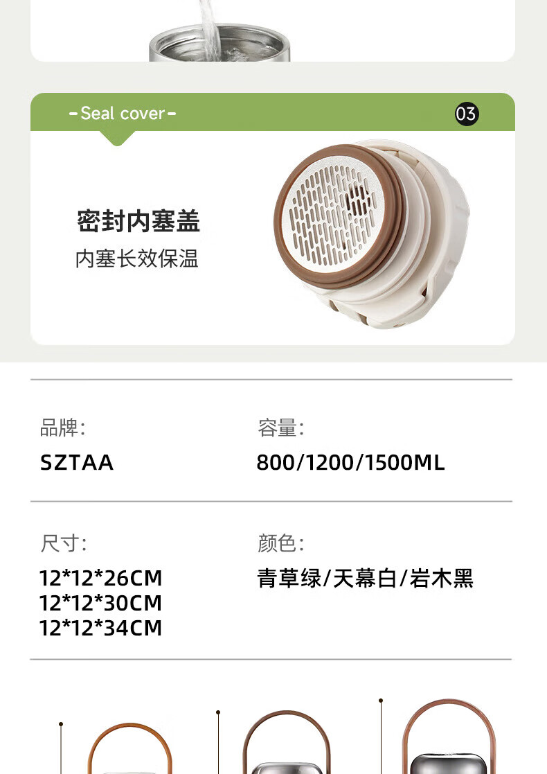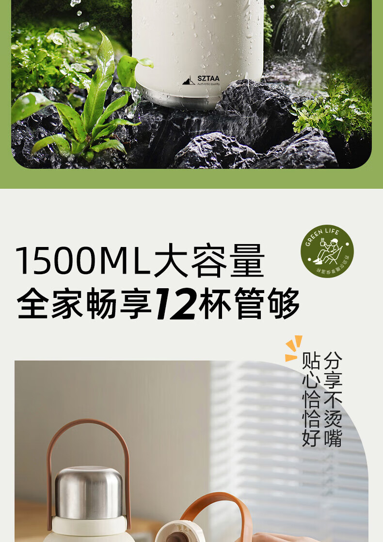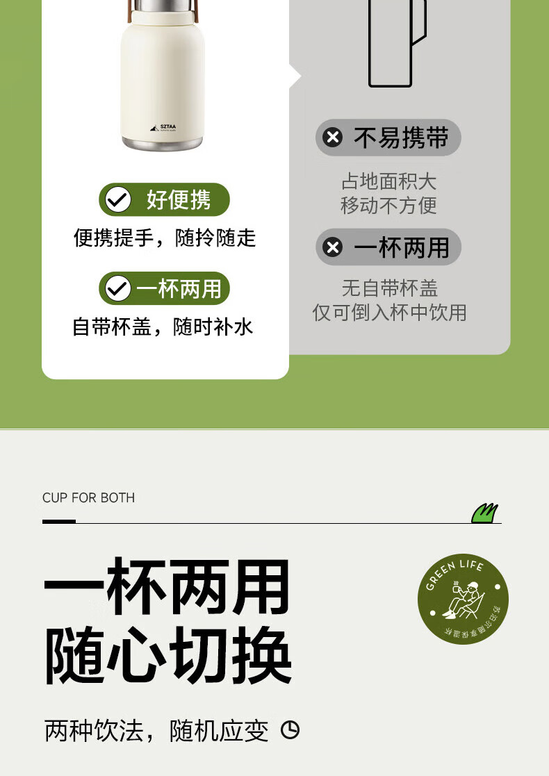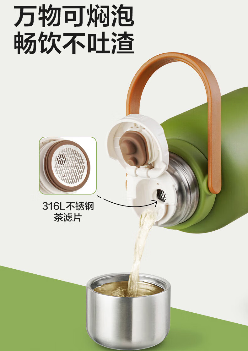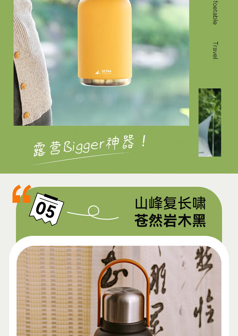 SZTAA保温杯大容量男女士户外旅行水杯316不锈钢保温壶便携车载大肚杯 珍珠白【抗菌316+便携杯套】1200ml