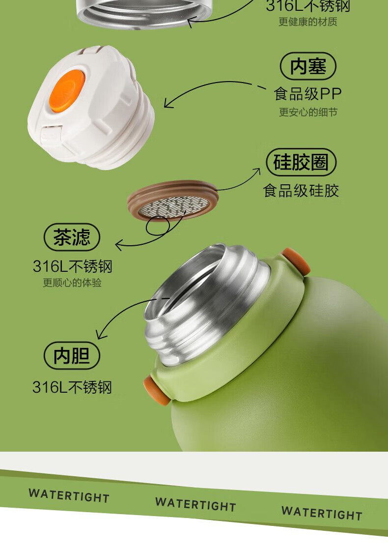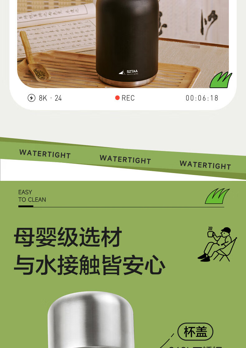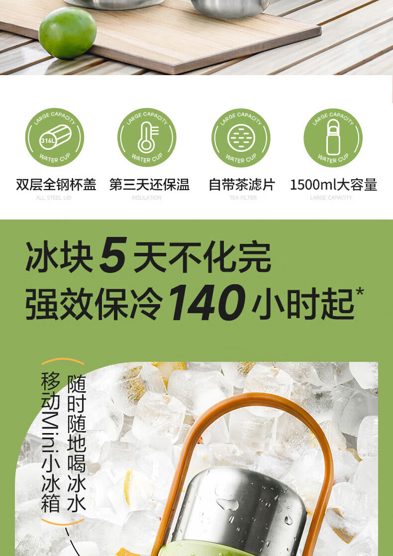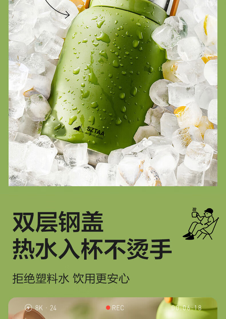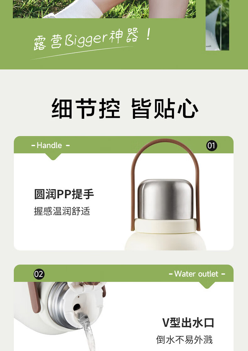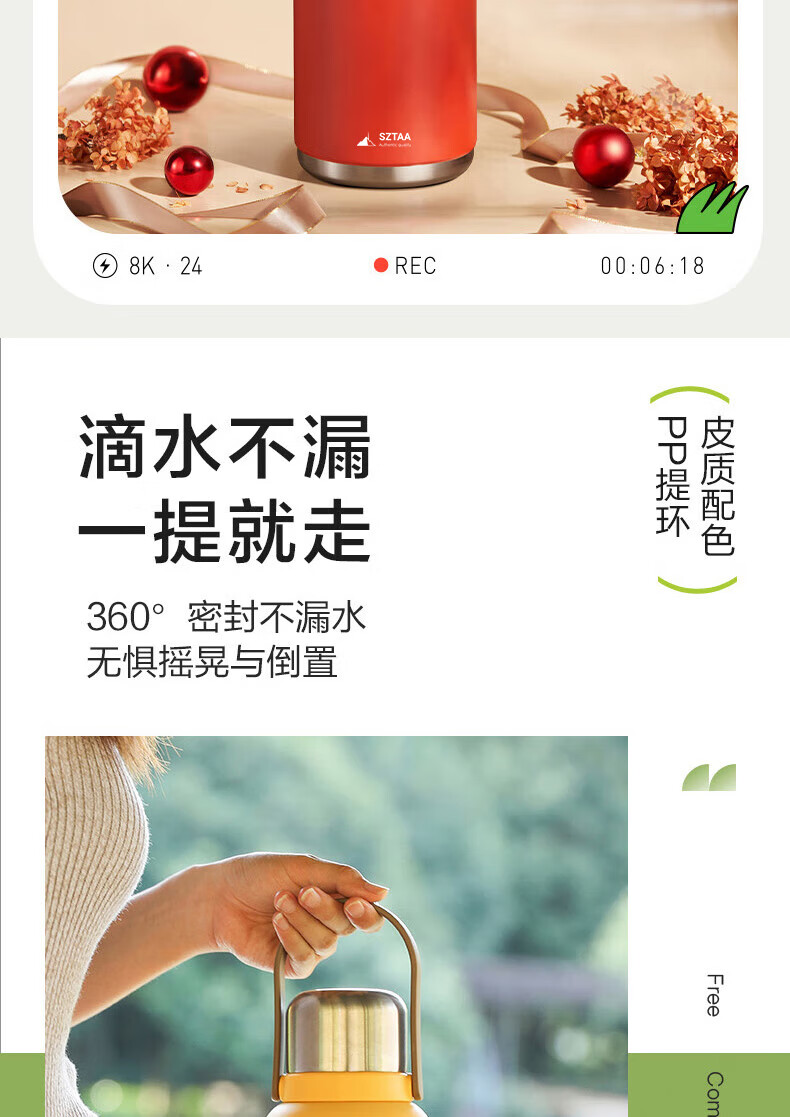 SZTAA保温杯大容量男女士户外旅行水杯316不锈钢保温壶便携车载大肚杯 珍珠白【抗菌316+便携杯套】1200ml