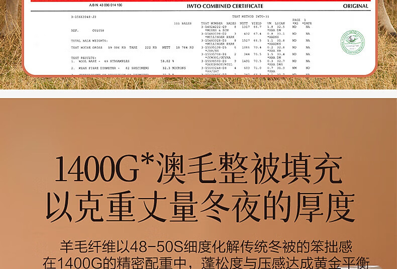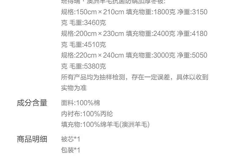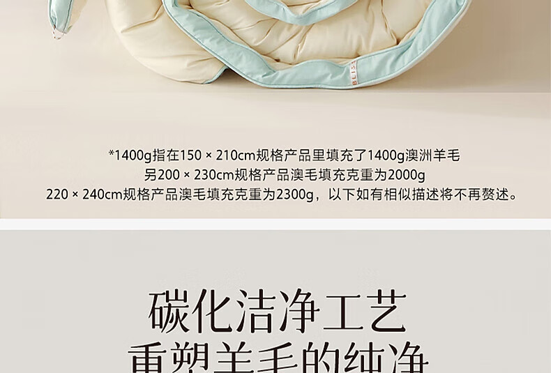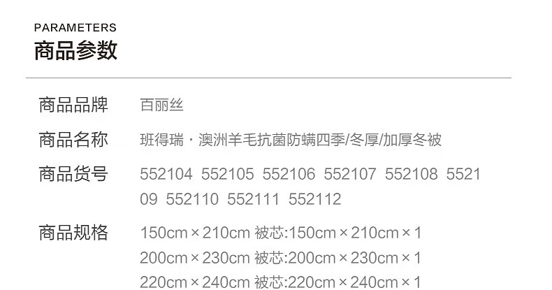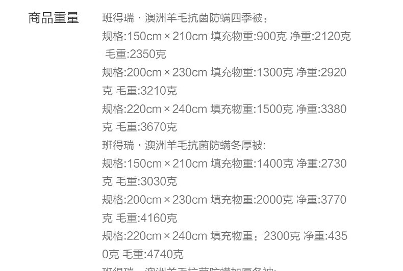 百丽丝班得瑞·澳洲羊毛抗菌防螨四季/冬厚/加厚冬被 班得瑞·澳洲羊毛抗菌防螨四季被 150cm*210cm