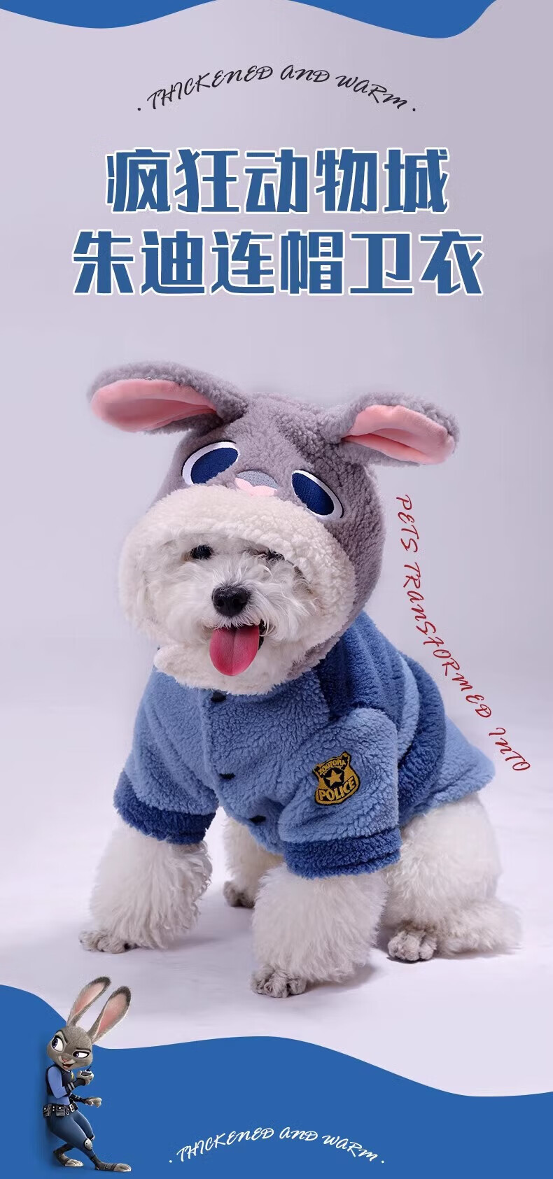 迪士尼朱迪猫狗衣服秋冬款柴犬中大型犬边牧柯基宠物冬季保暖变身衣6XL