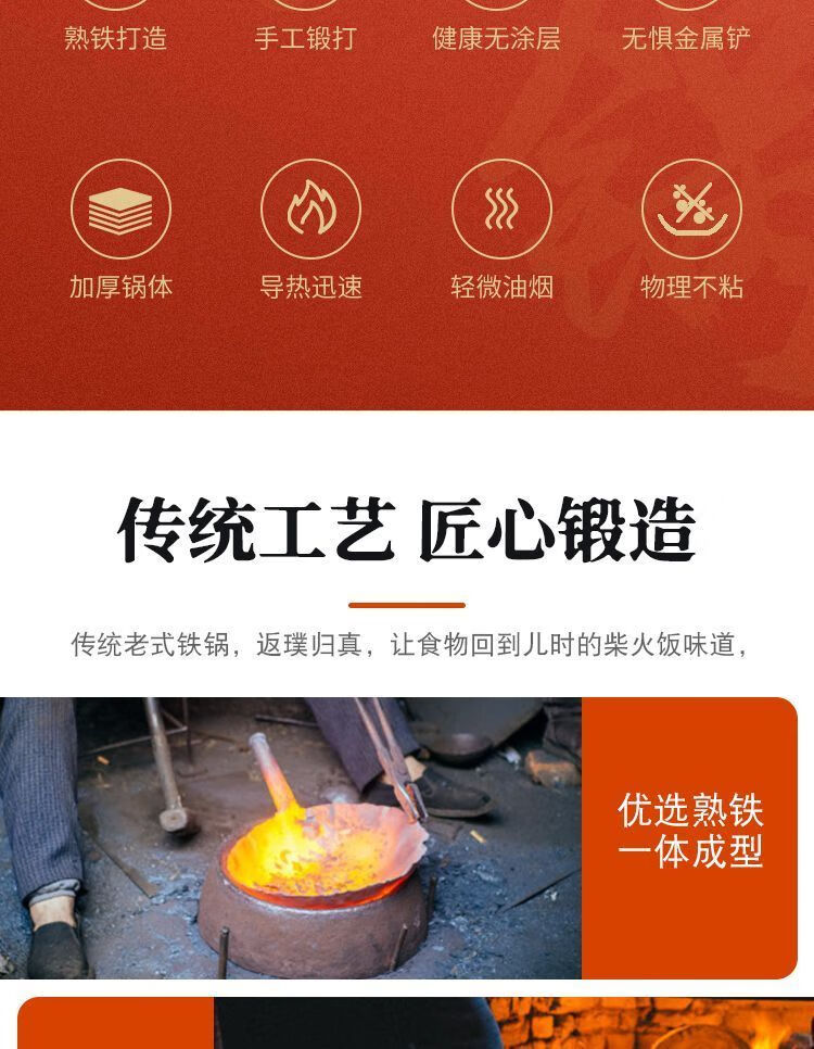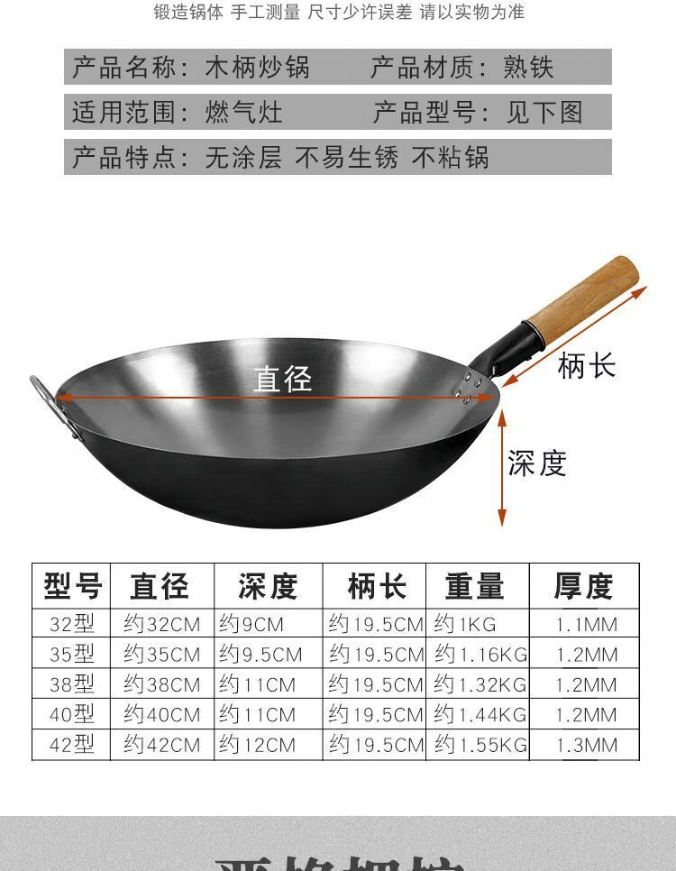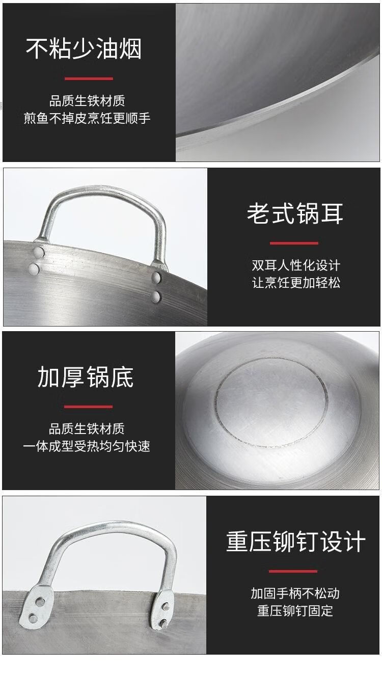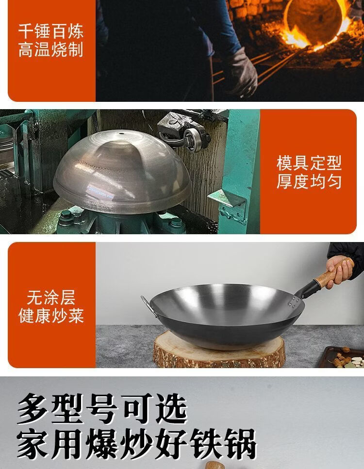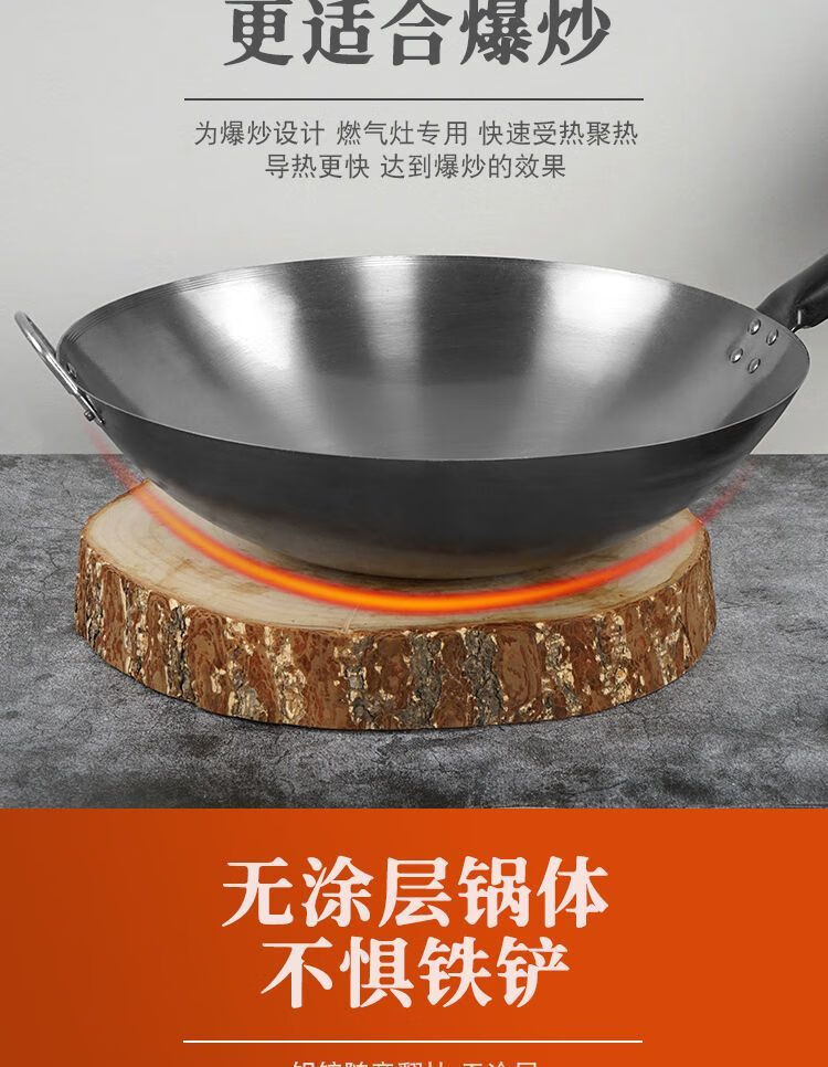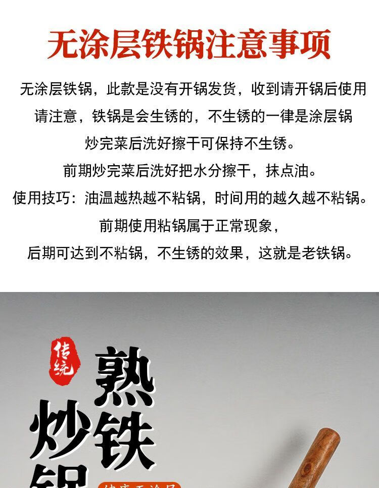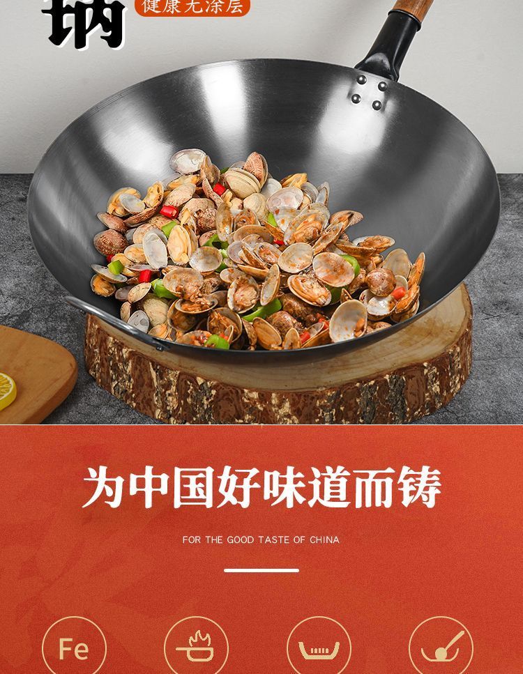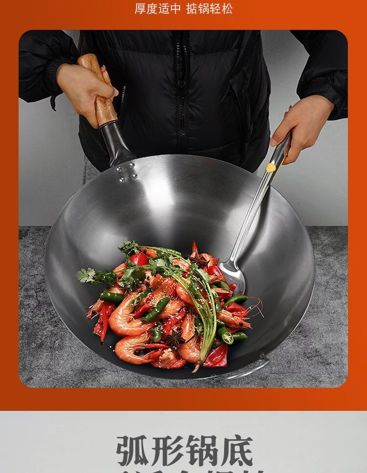 简漾铁锅加厚厨师饭店商用炒菜锅传统老式熟铁锅家用无涂层炒锅燃气灶 实木手柄32厘米(1个人使用) 1寸 (没有开锅)