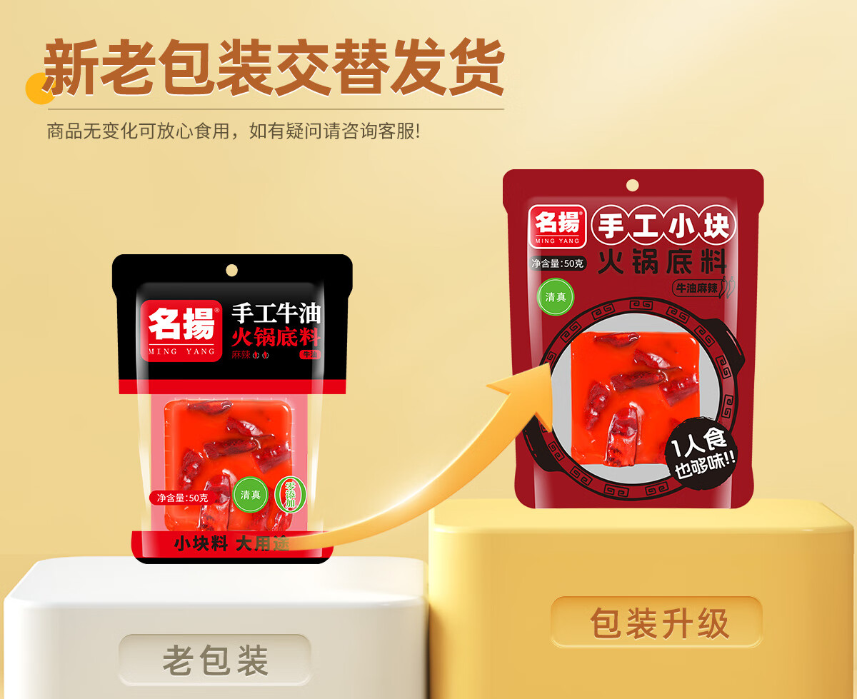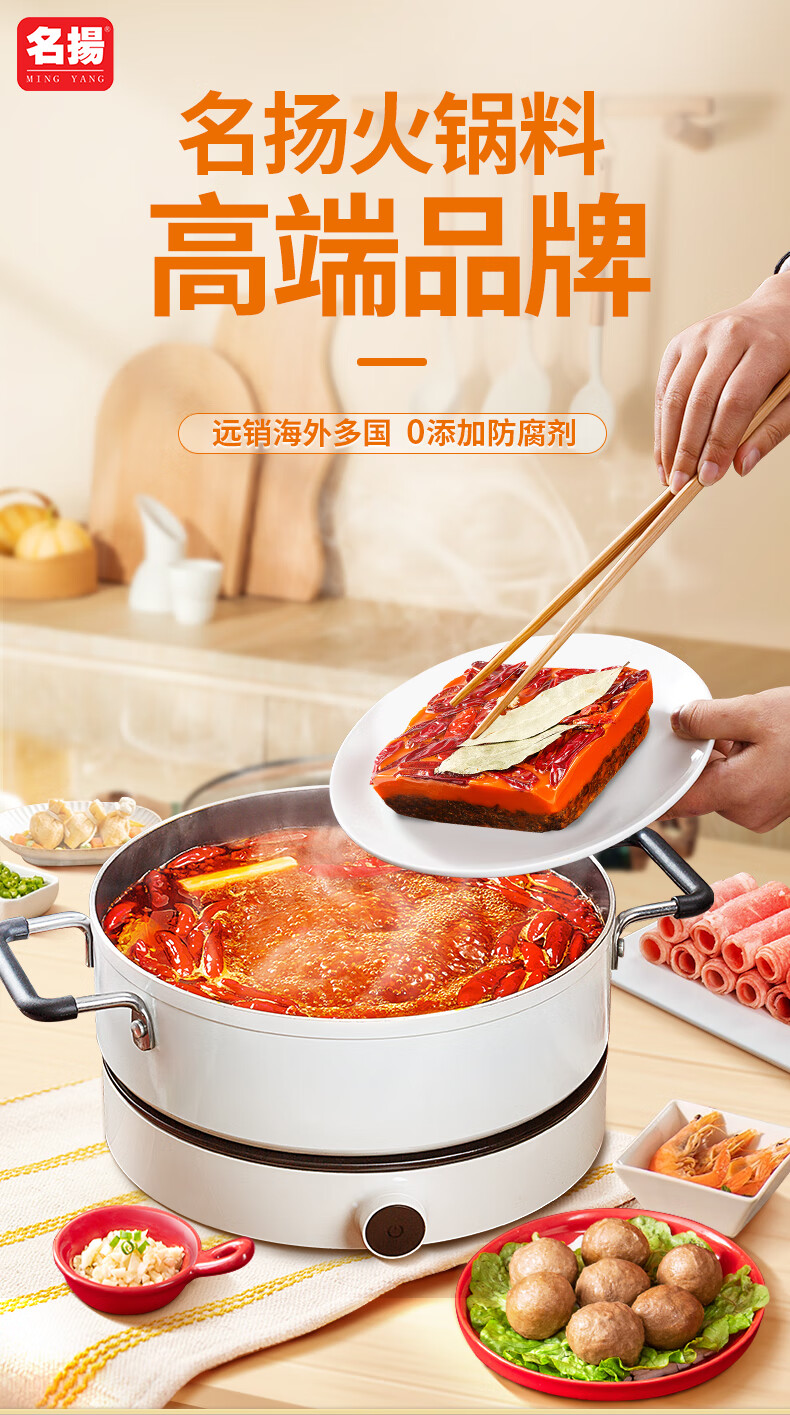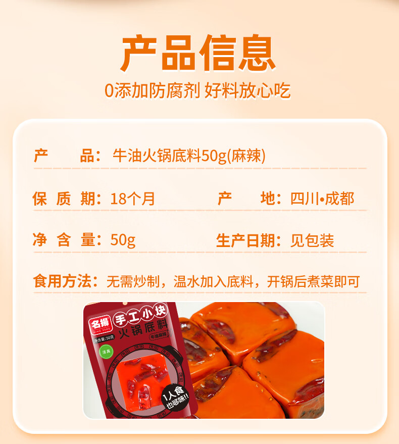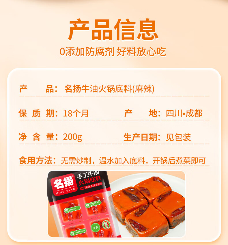 名揚名扬牛油火锅底料238g麻辣味手工全型火锅串串香锅麻辣烫百搭50g 牛油麻辣238g+50g*3袋