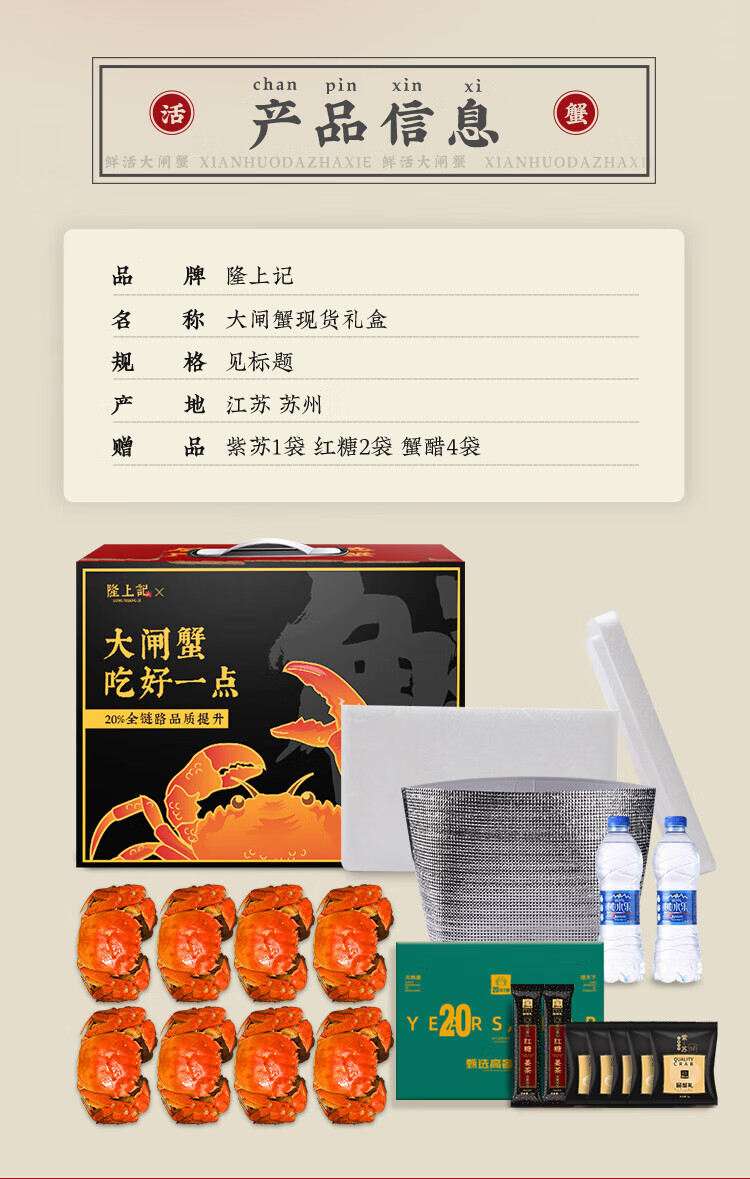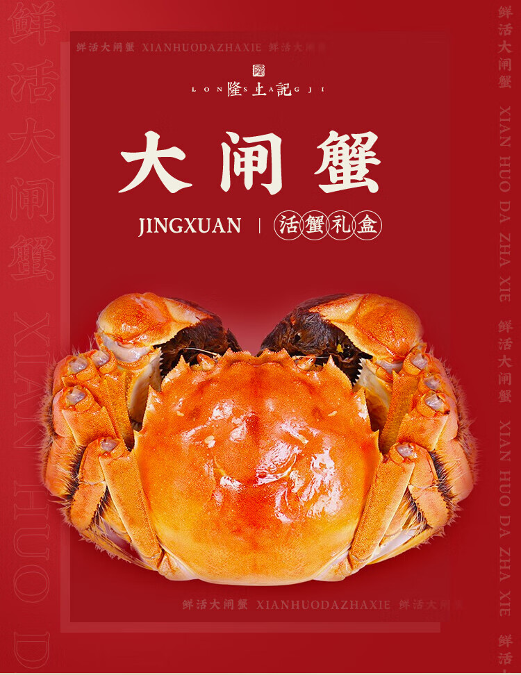 【活蟹】隆上记大闸蟹公4.5-4.8两母3.0-3.3两4对8只 去绳足重鲜活螃蟹生鲜礼盒