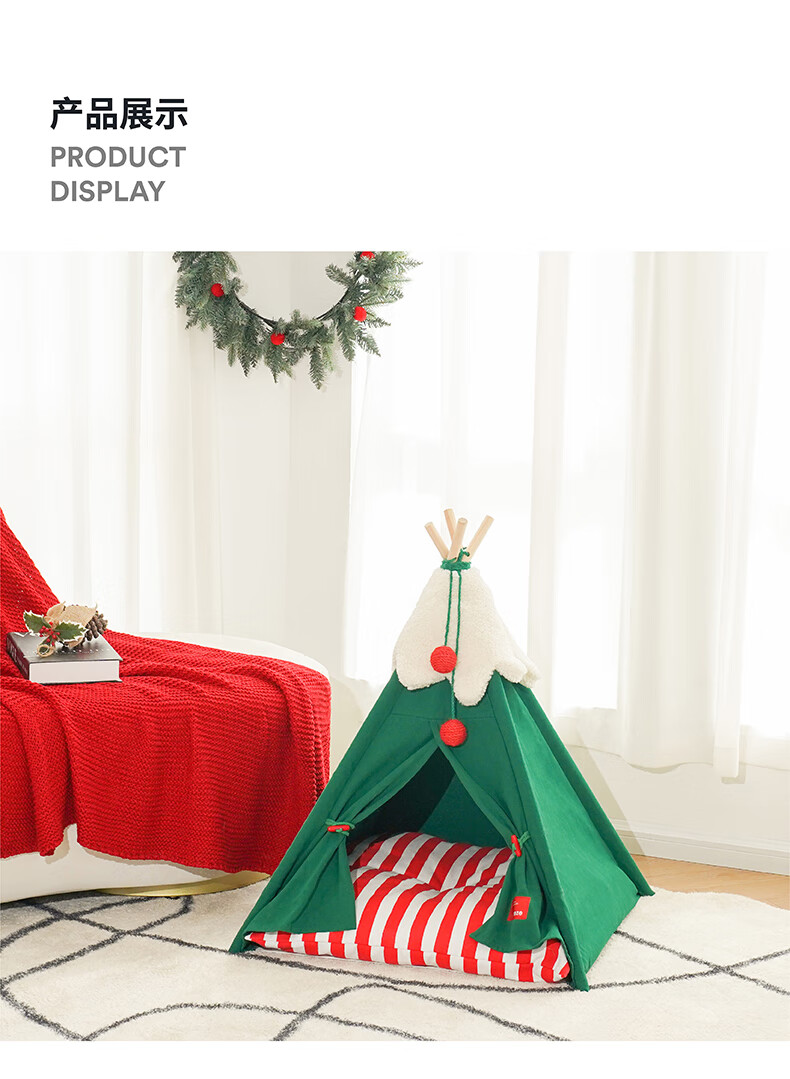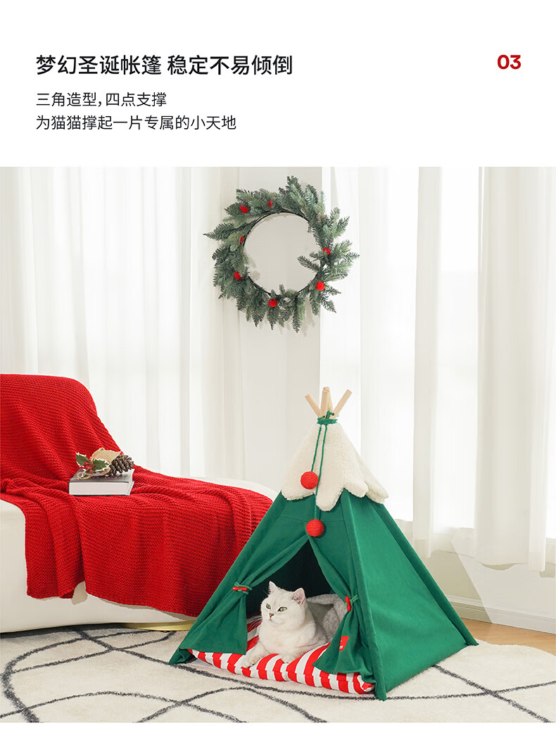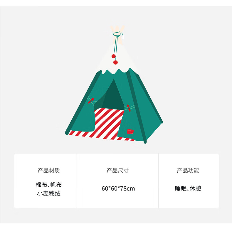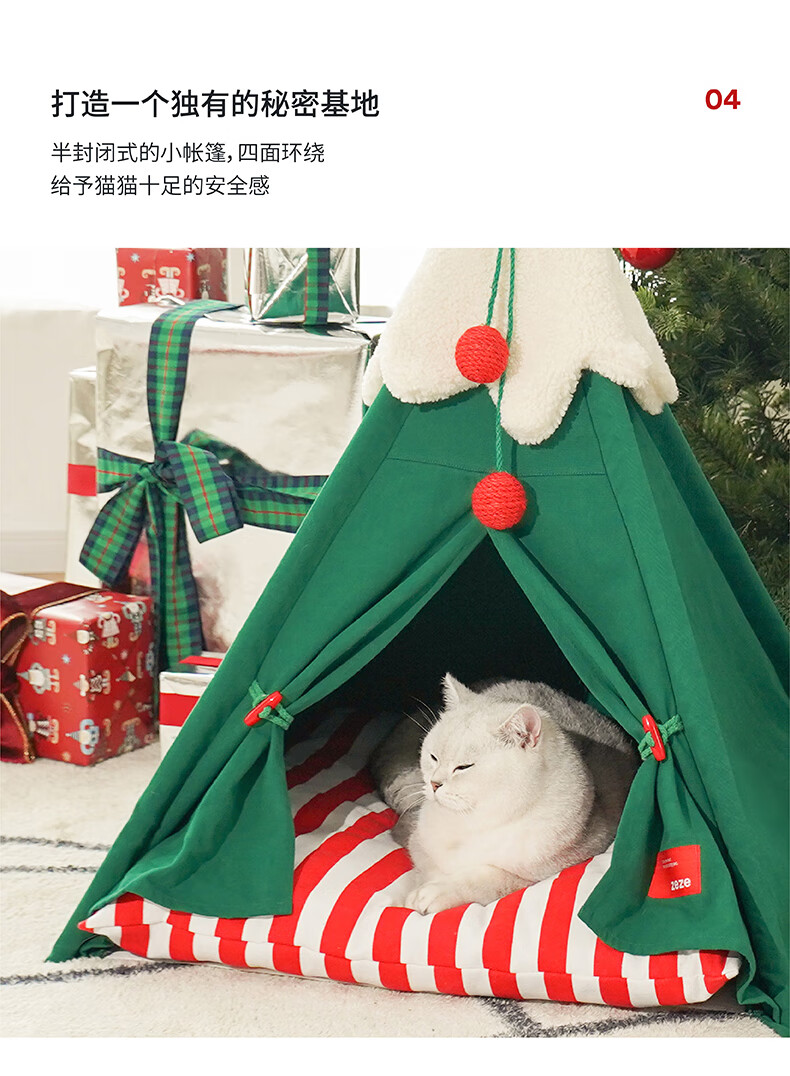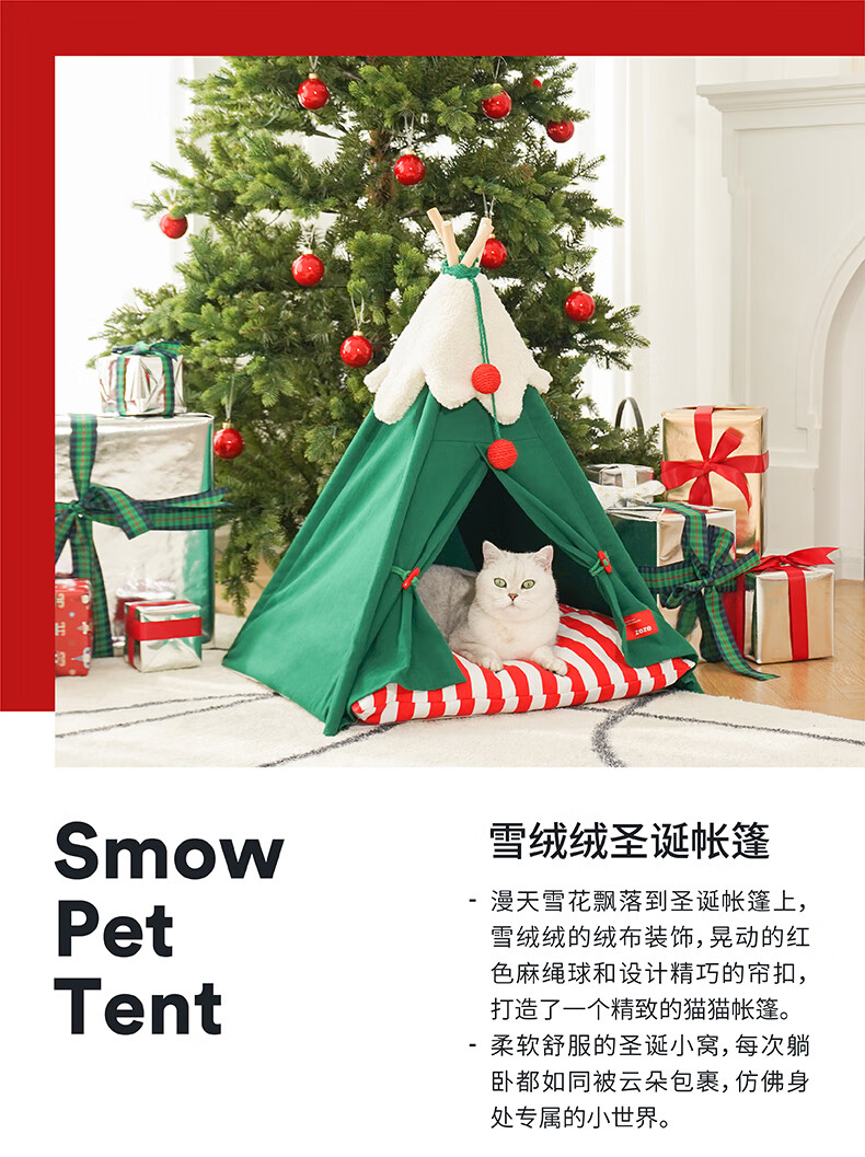 ZEZE圣诞雪绒帐篷猫窝狗窝冬季保暖半封闭帐篷加厚保暖猫屋中小型犬 雪绒宠物帐篷