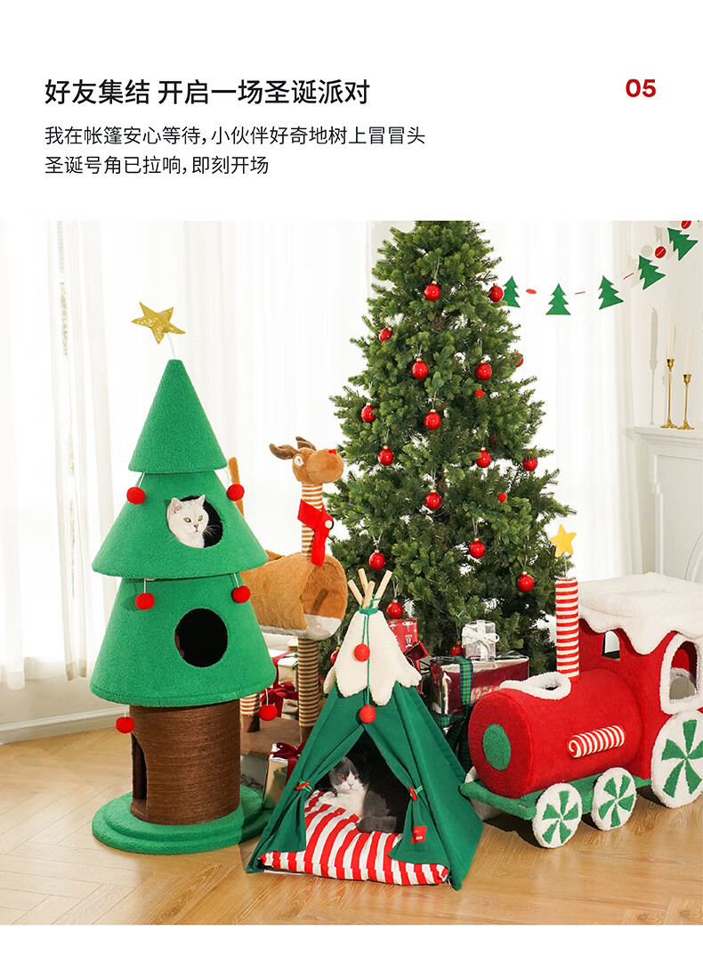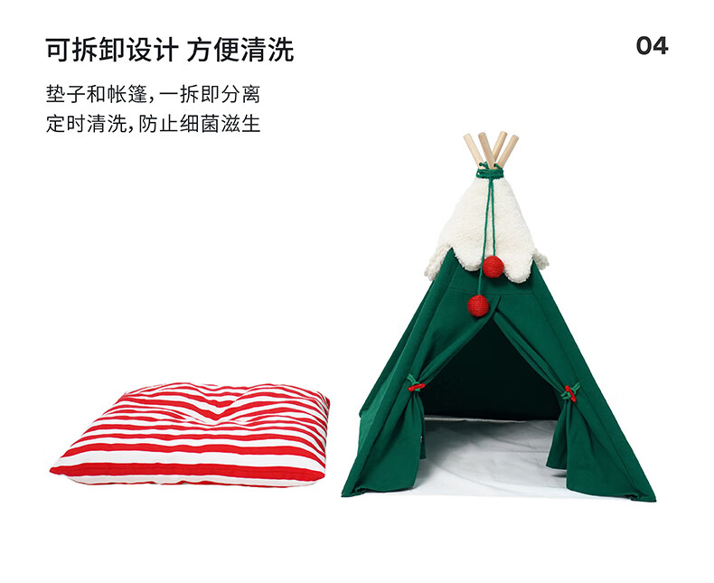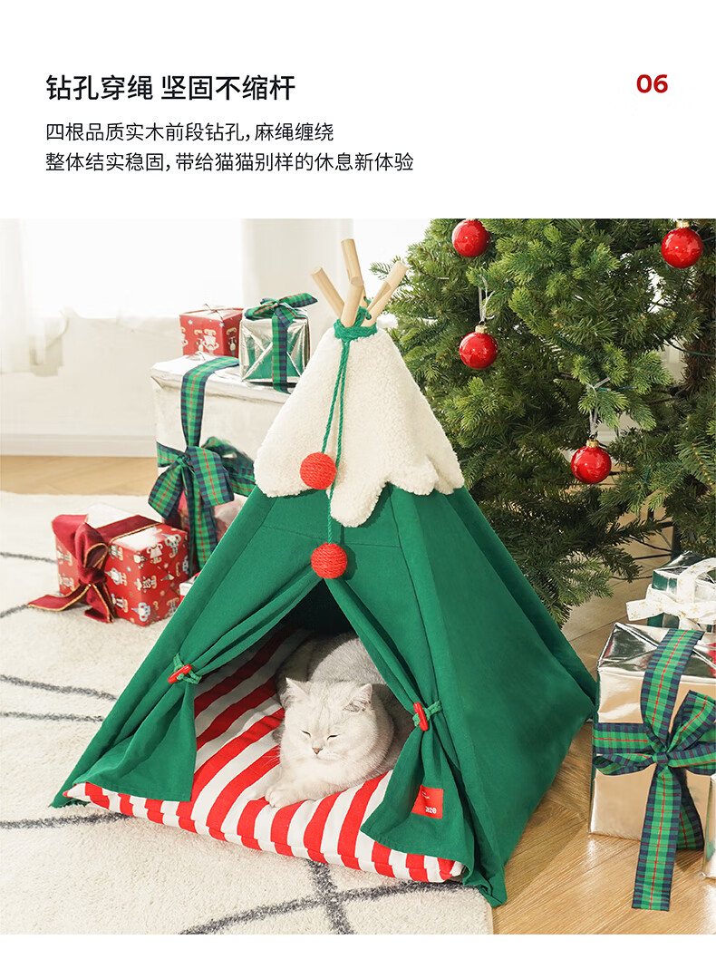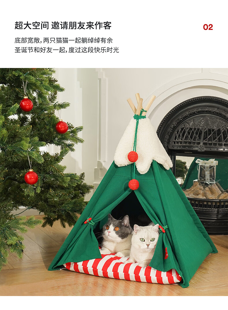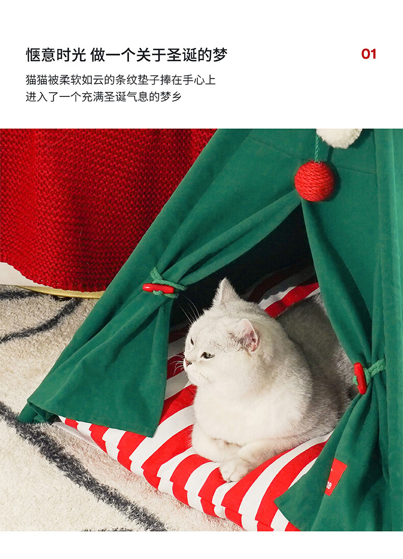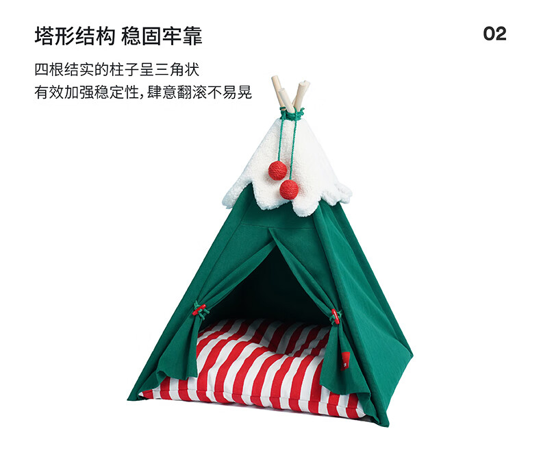 ZEZE圣诞雪绒帐篷猫窝狗窝冬季保暖半封闭帐篷加厚保暖猫屋中小型犬 雪绒宠物帐篷