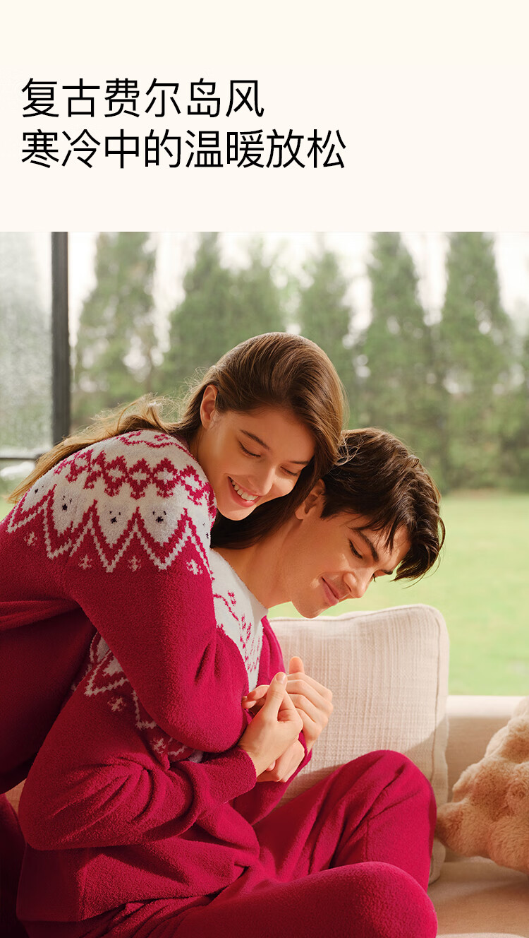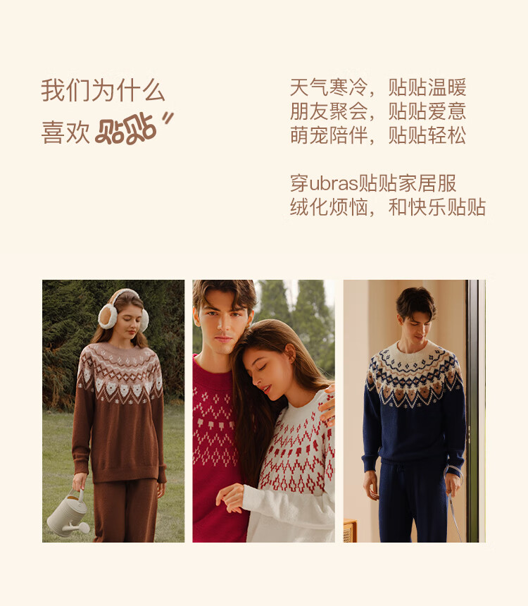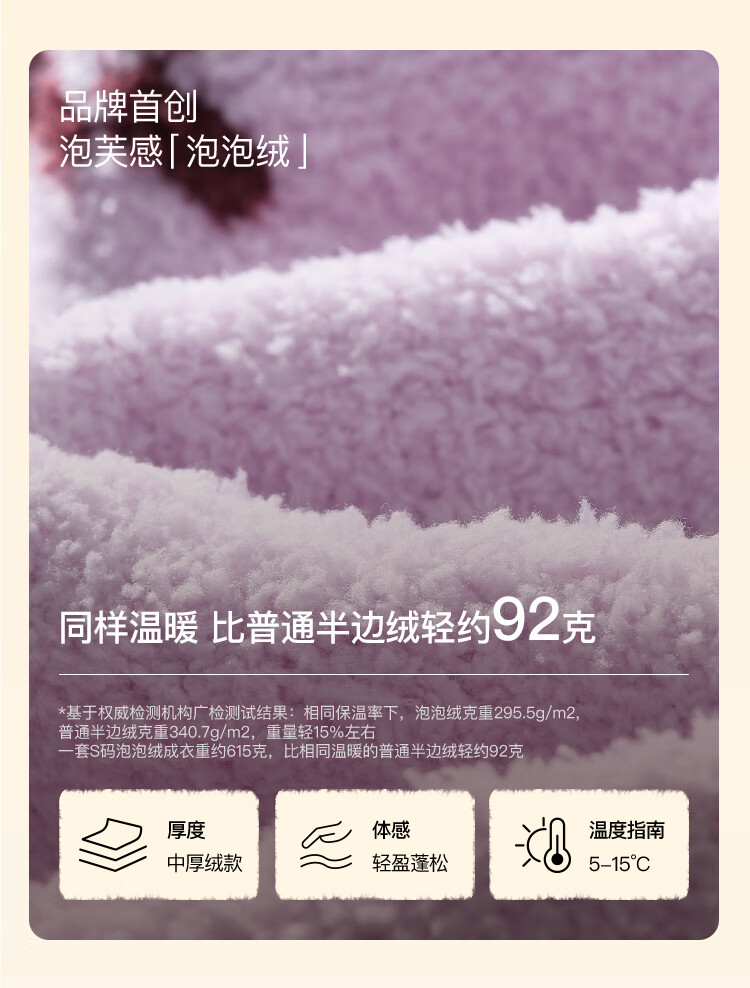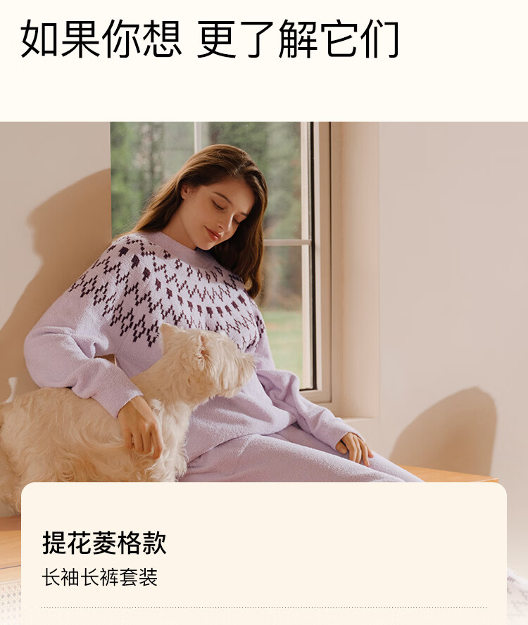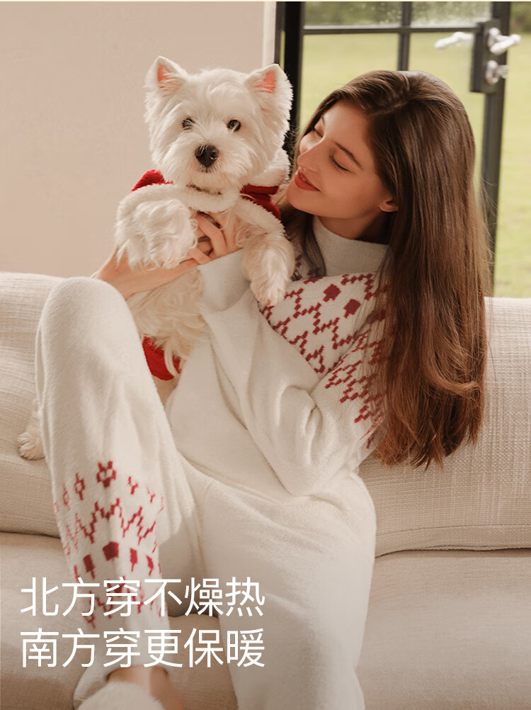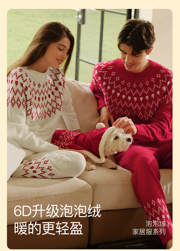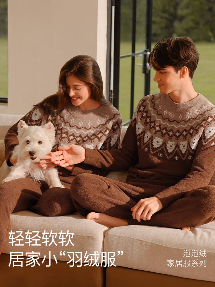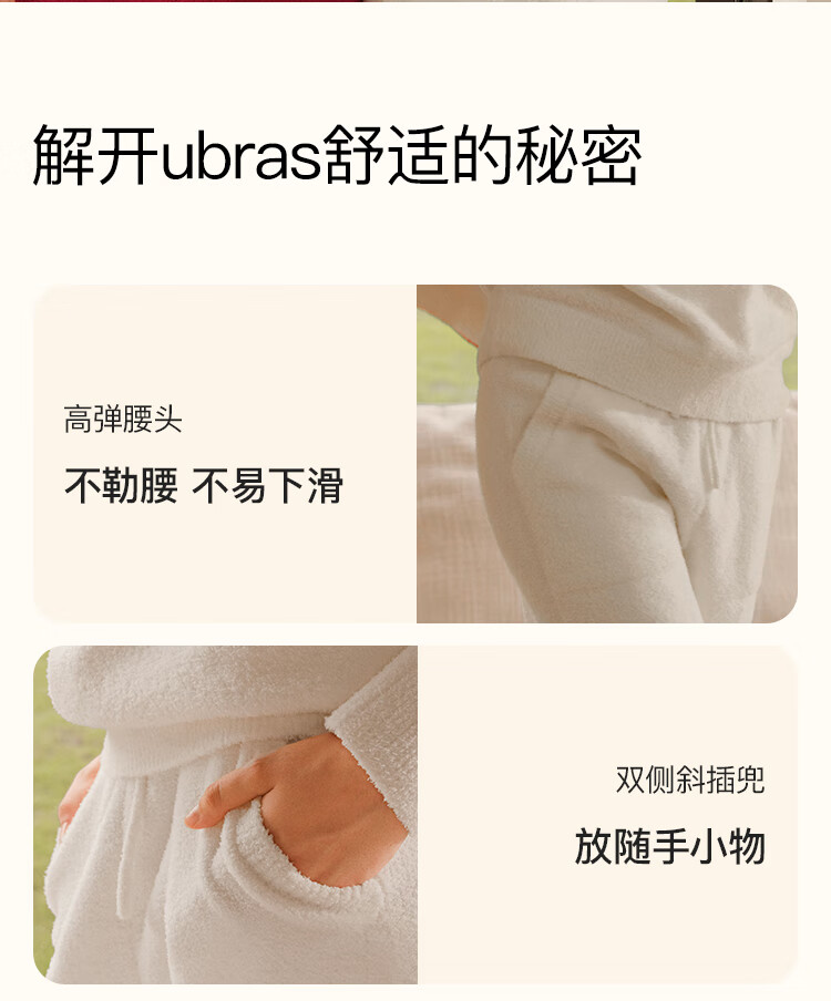ubras虞书欣同款泡泡绒圆领家居服长袖长裤男女同款睡衣套装 米白色 S