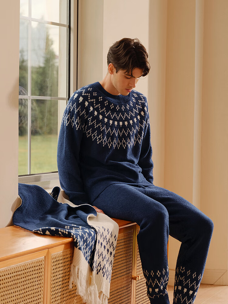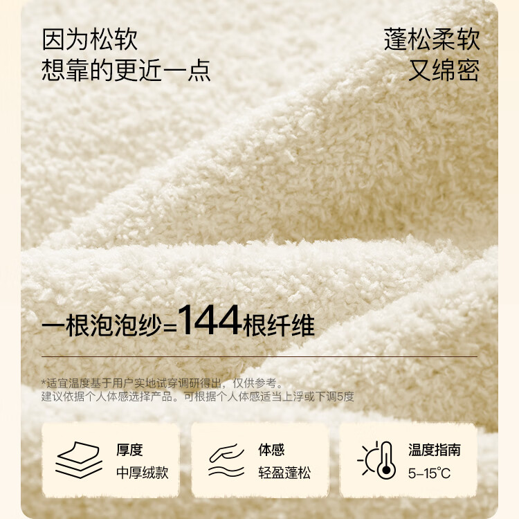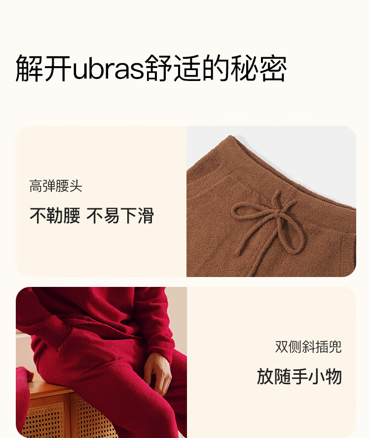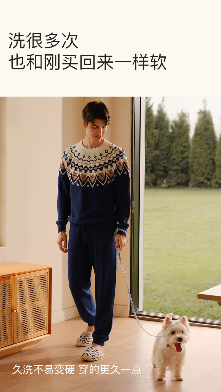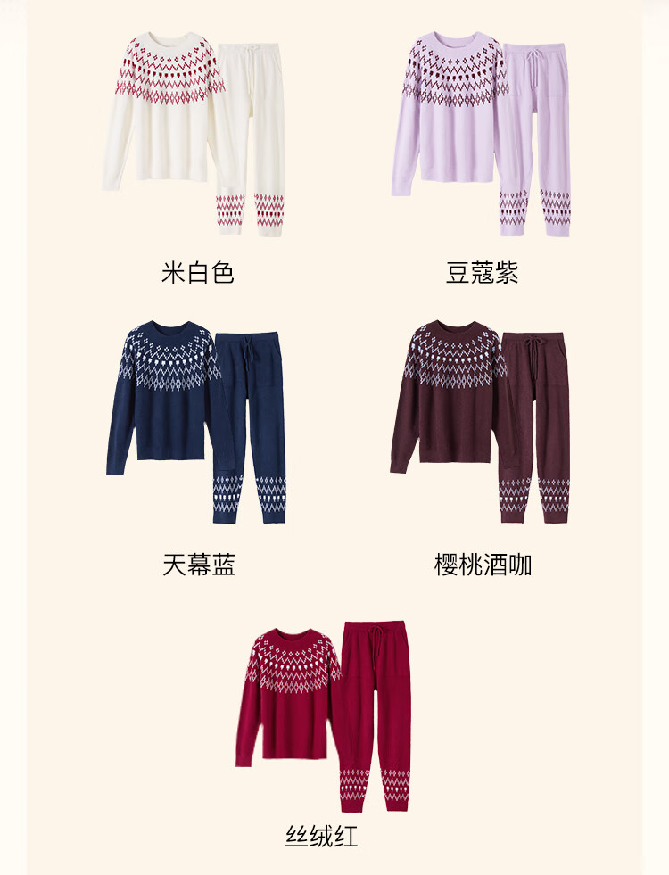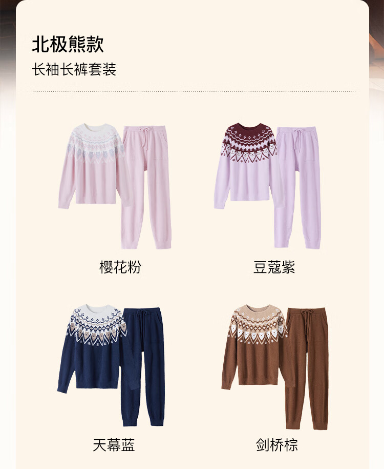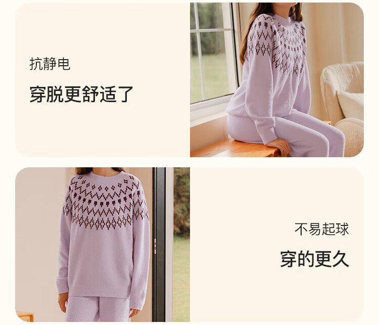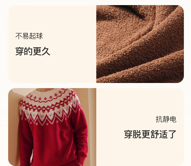 ubras虞书欣同款泡泡绒圆领家居服长袖长裤男女同款睡衣套装 米白色 S