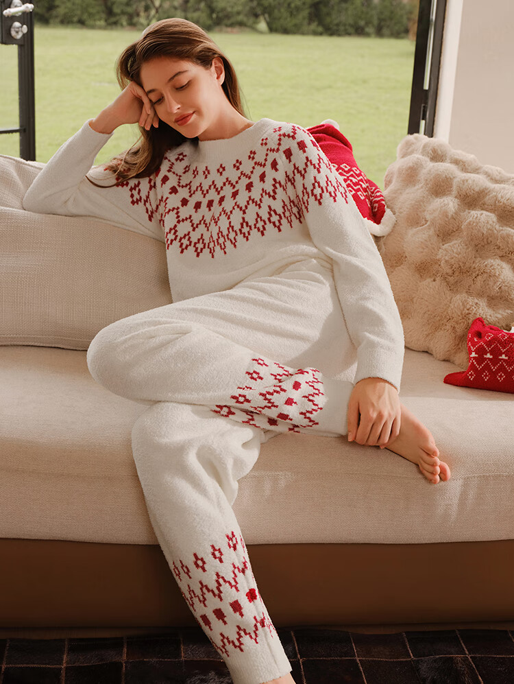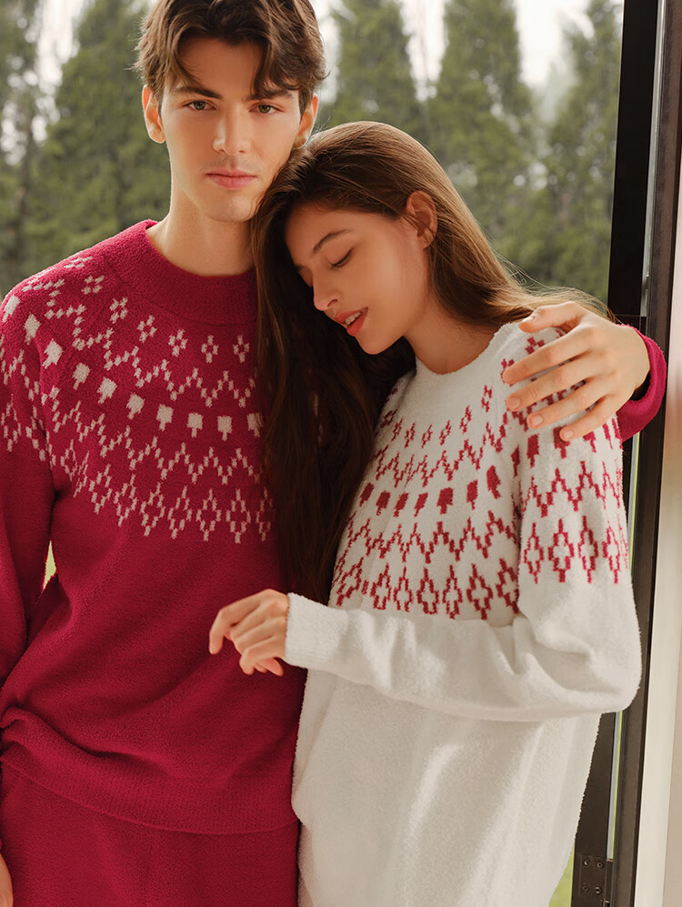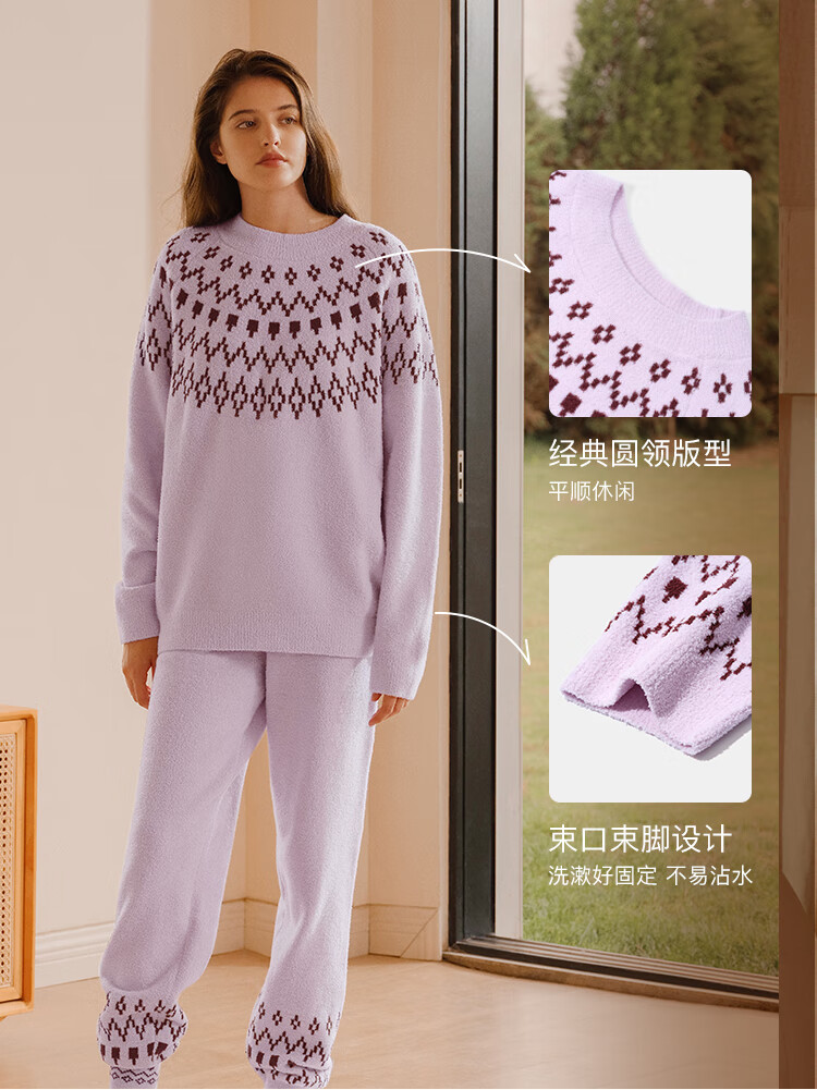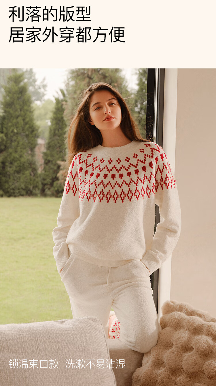 相伊恋人毛衣女25新款秋冬可外穿加厚宽松圆领套头慵懒风针织衫费尔岛上衣 米白色【宽松显瘦抗起球】 均码 【推荐80-140斤】
