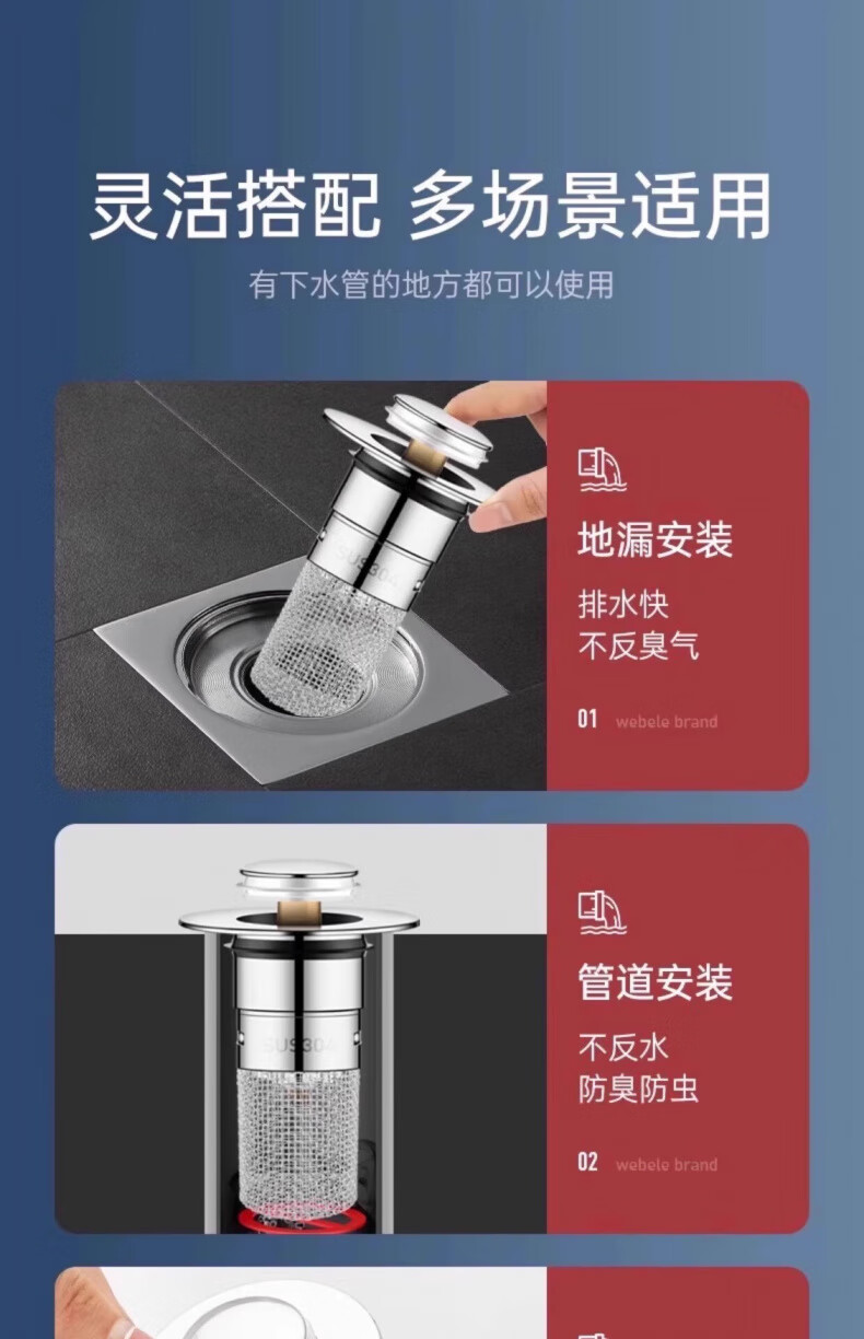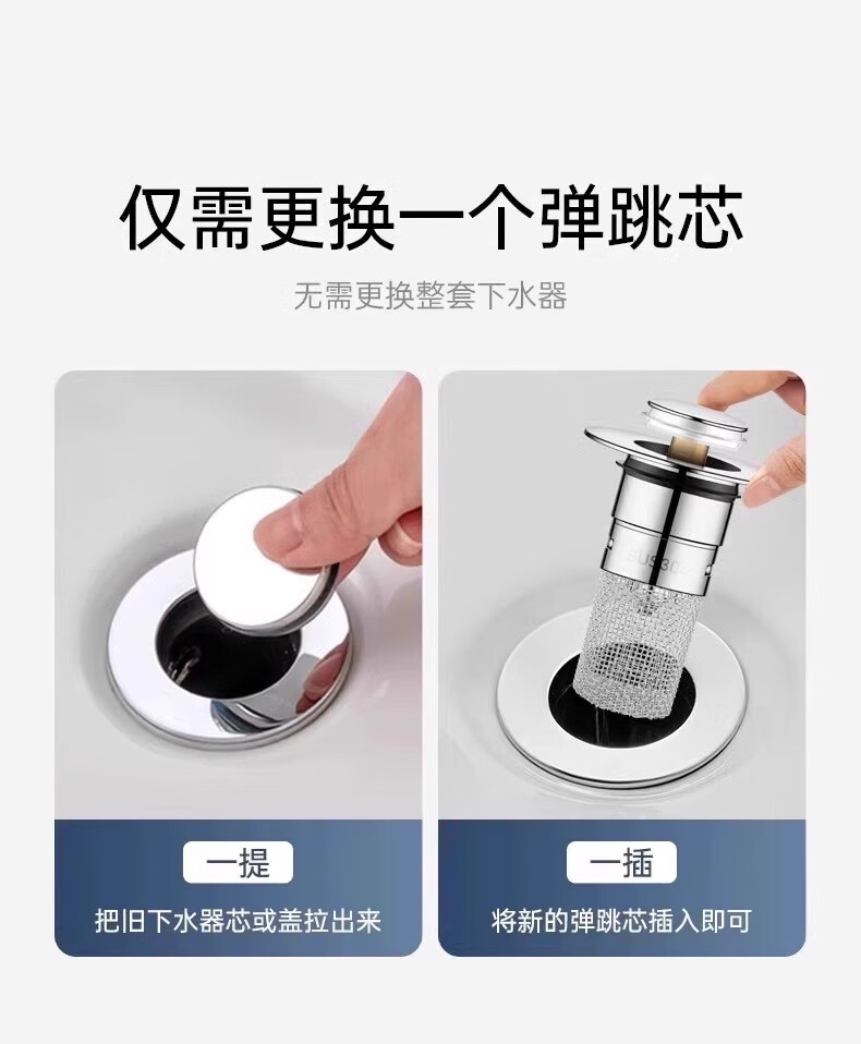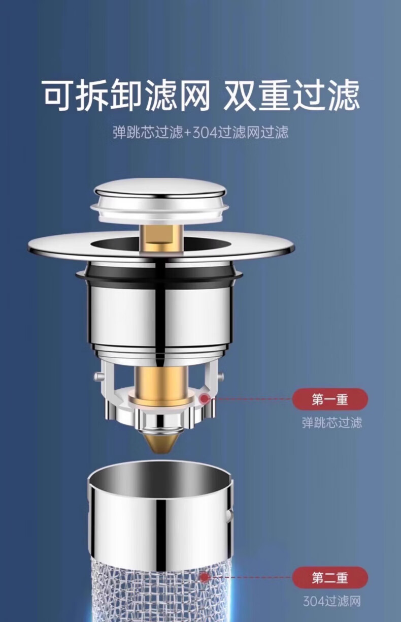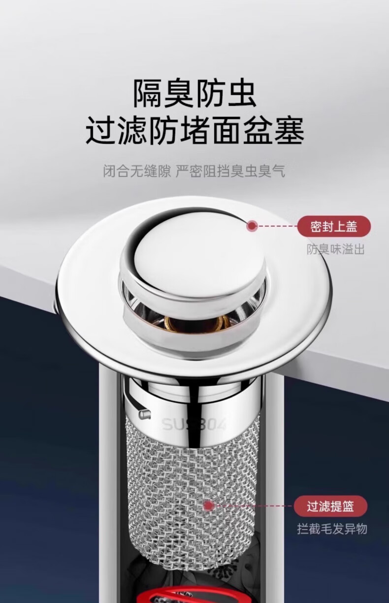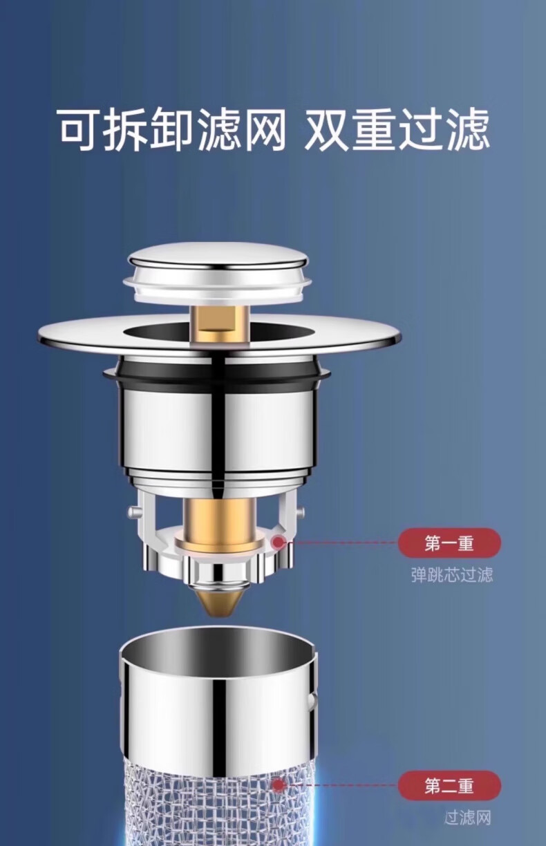 壹品印象洗手盆漏水塞洗脸盆下水器洗手池塞按压式弹跳芯防虫防臭过滤器 【白色升级过滤款】防臭弹跳塞(小盖)