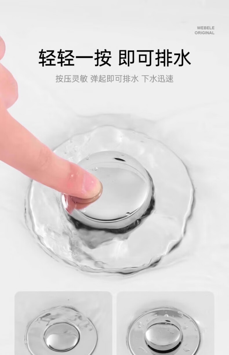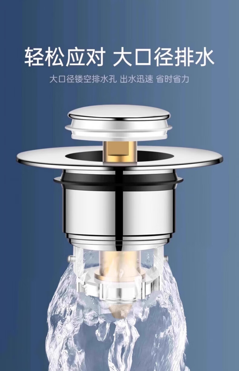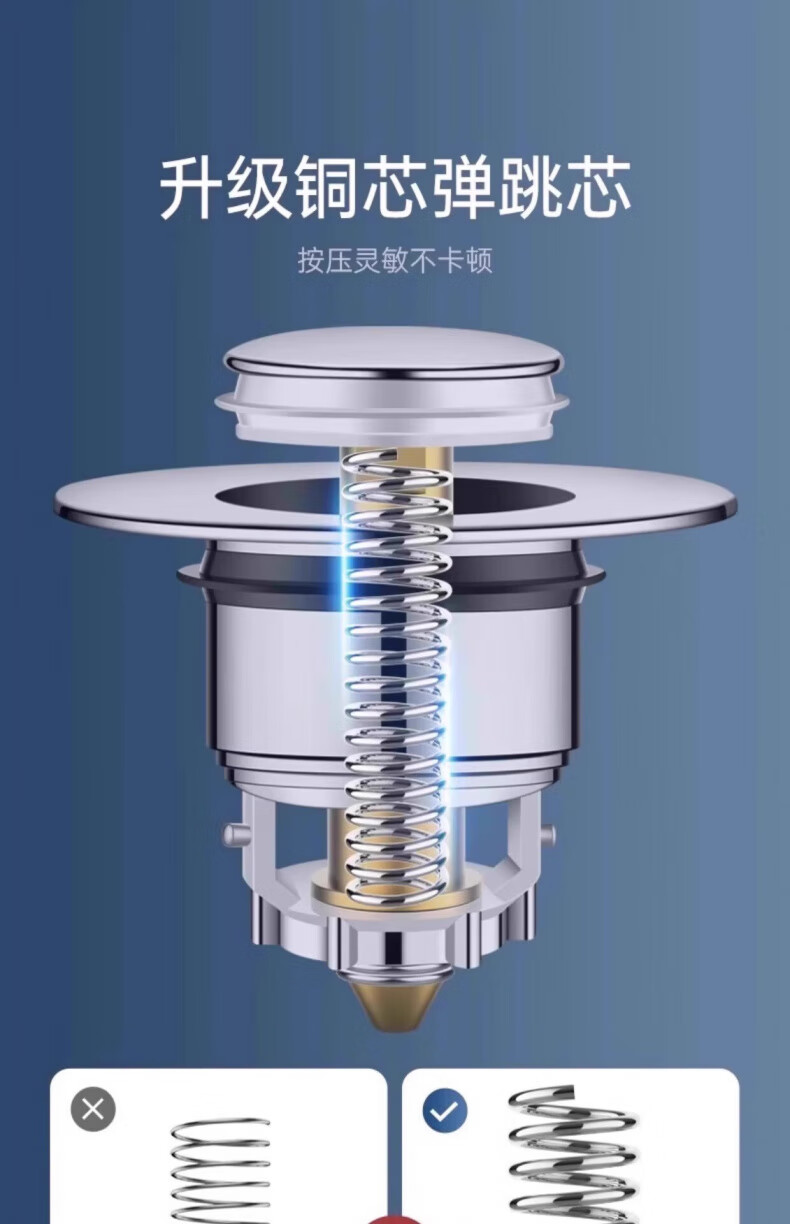 AILUKI日本通用洗手盆漏水塞按压式翻板弹跳下水器水槽弹跳芯洗脸盆塞子 团购 【面盆通用】