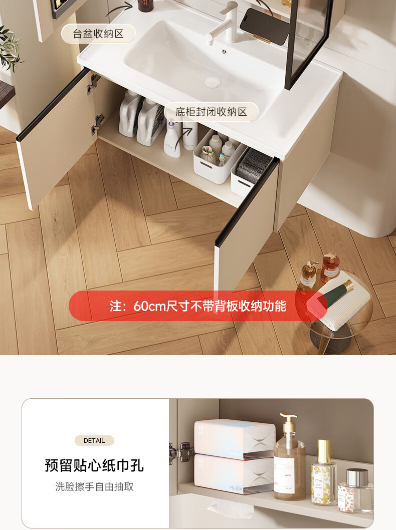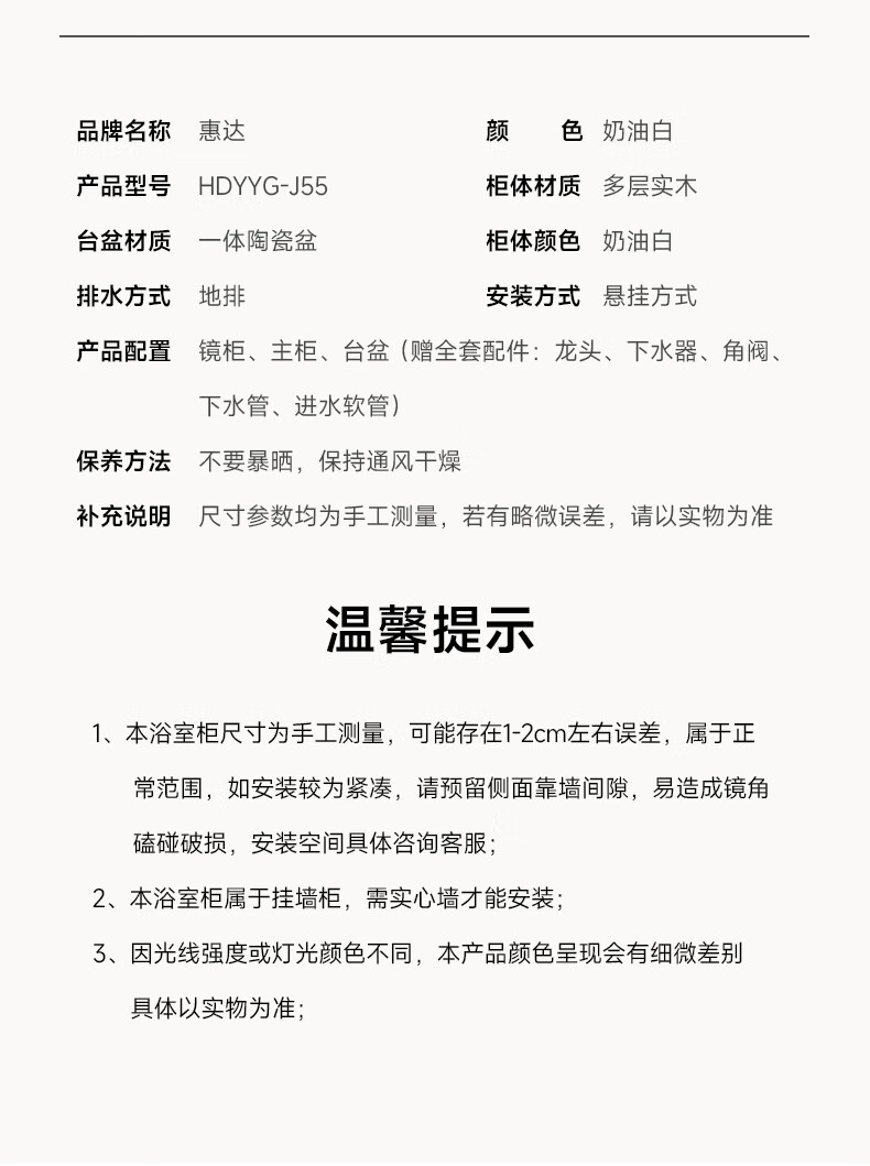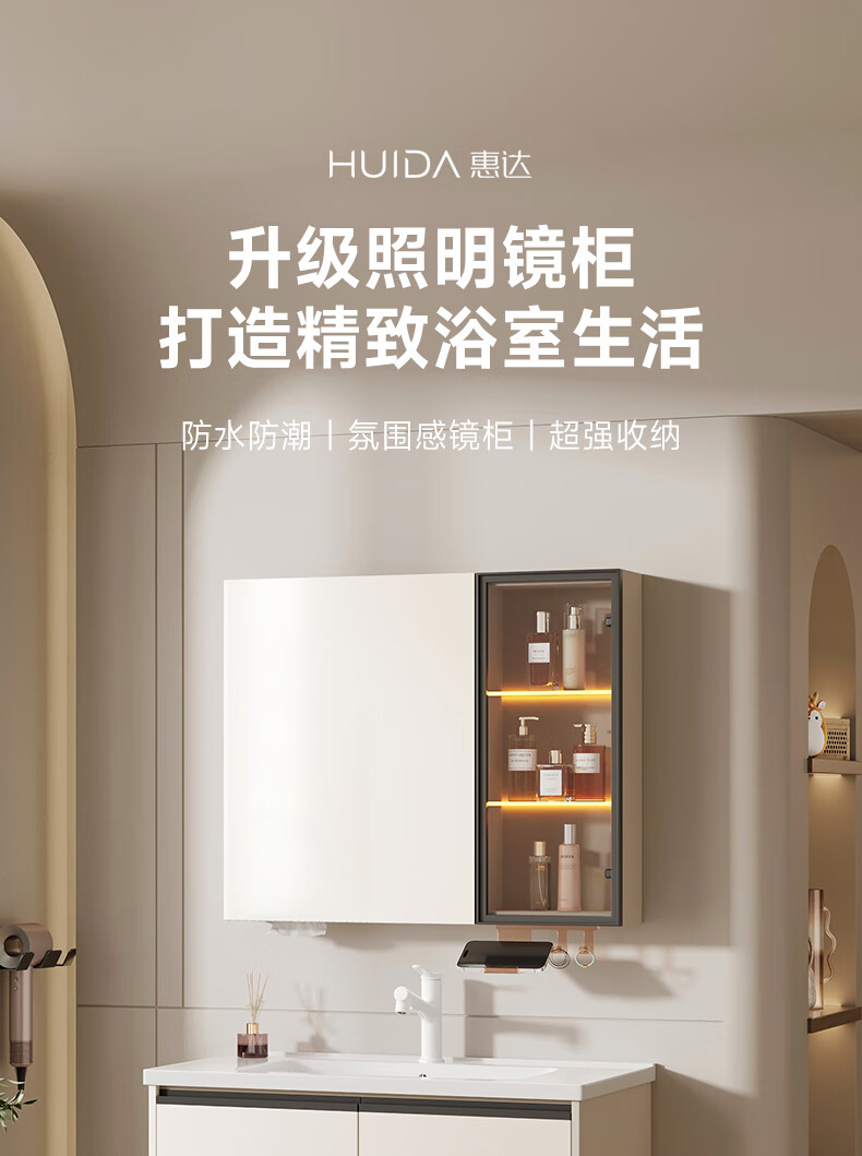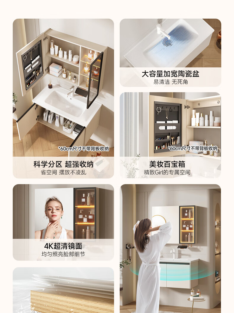 惠达(HUIDA)智能浴室柜陶瓷一体盆卫生间洗脸盆柜组合J55 70cm