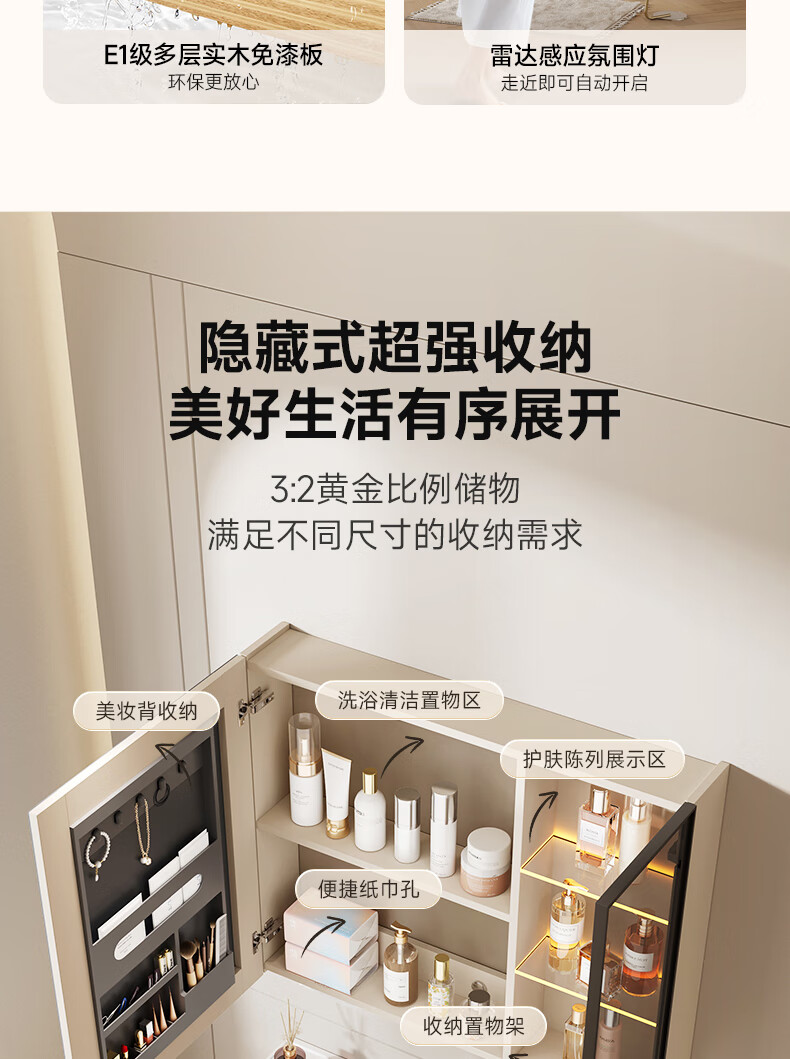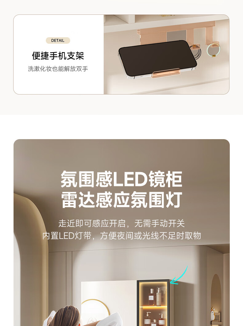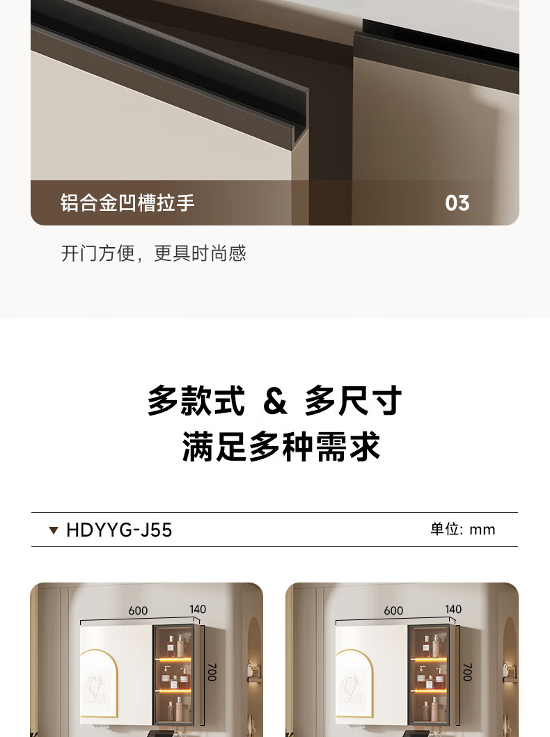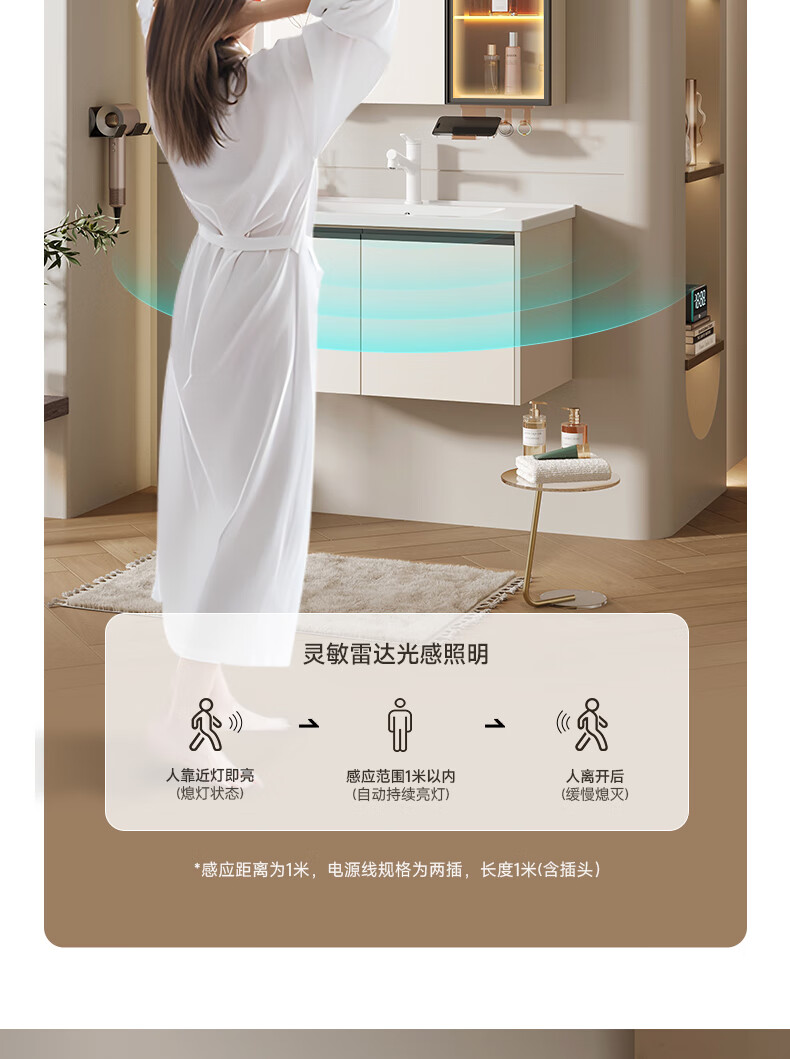 惠达(HUIDA)智能浴室柜陶瓷一体盆卫生间洗脸盆柜组合J55 70cm