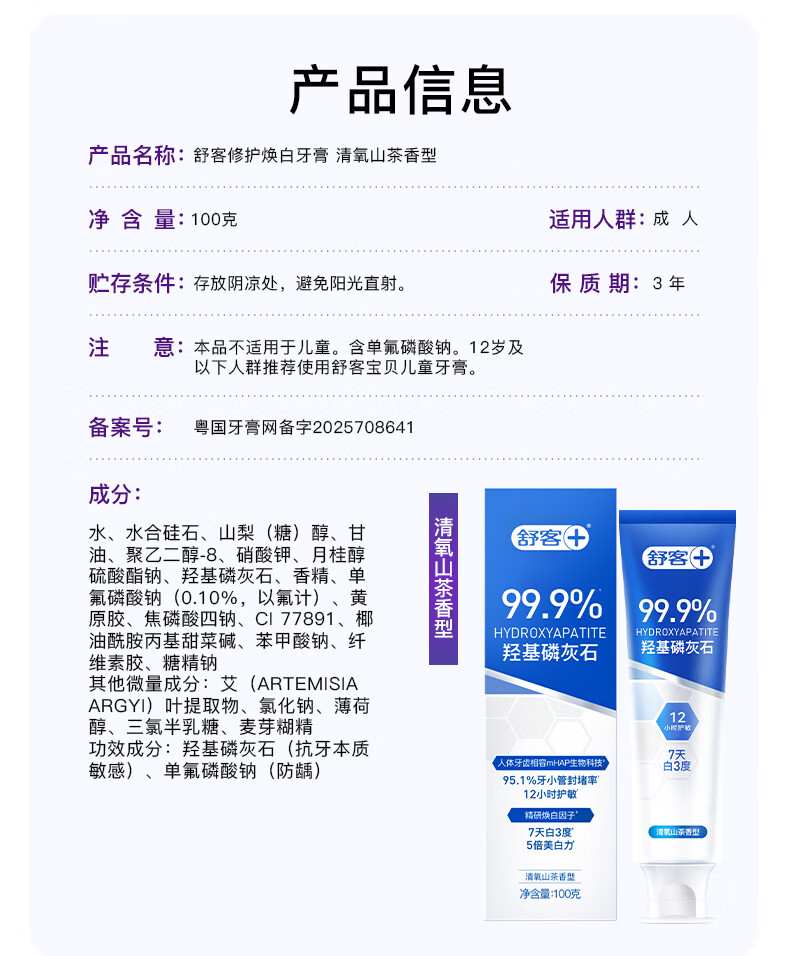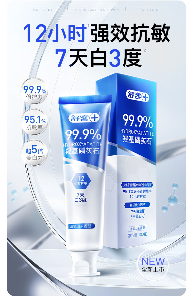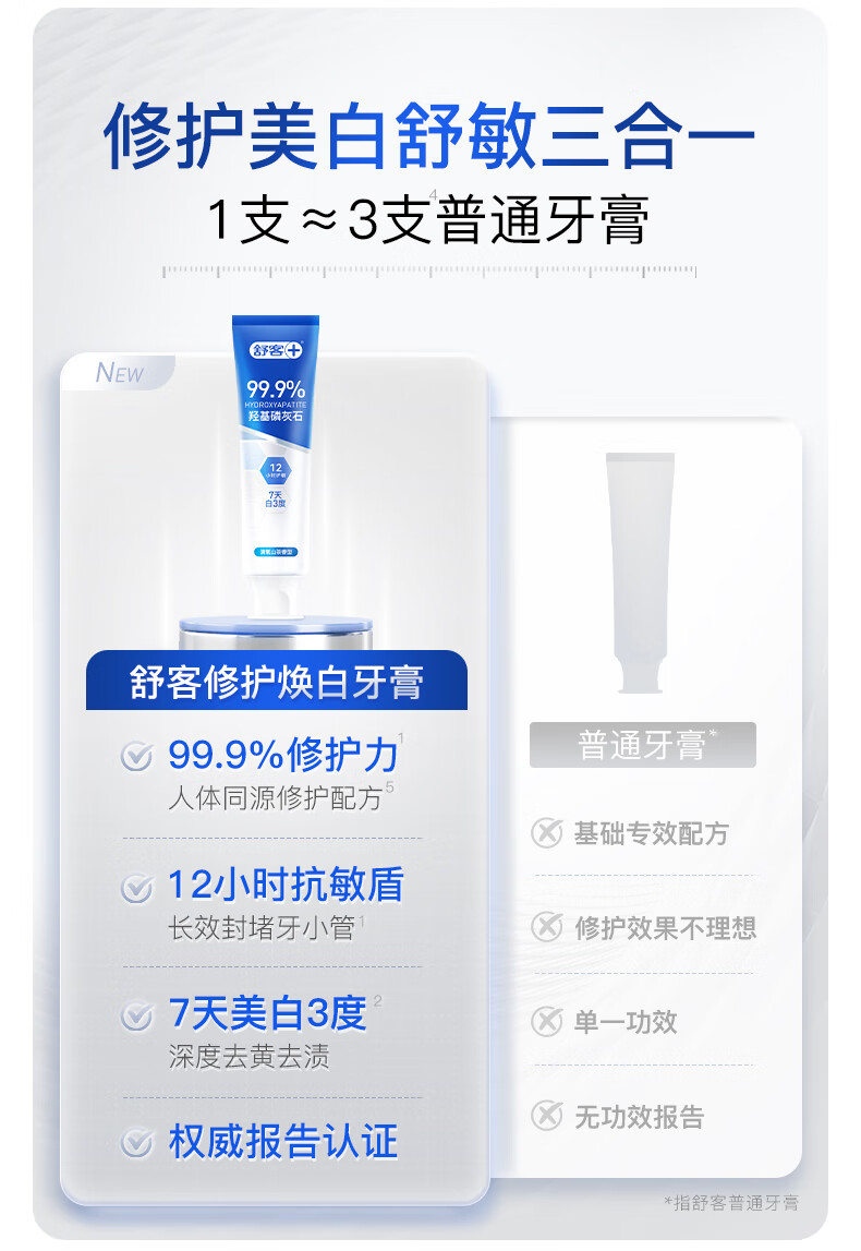 舒客7天专效修护医研抗敏牙膏封堵牙釉质美白牙膏羟基磷灰石100g*3支