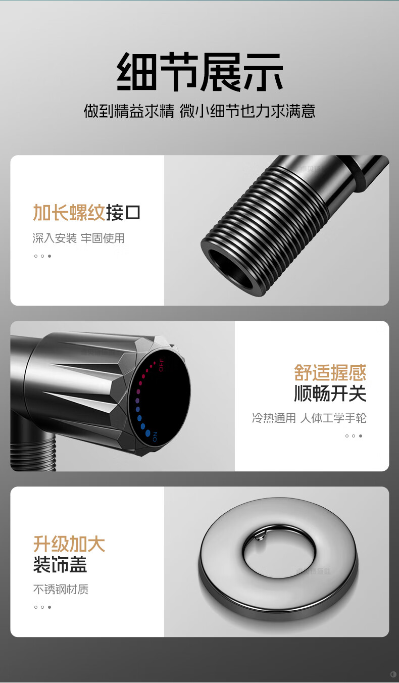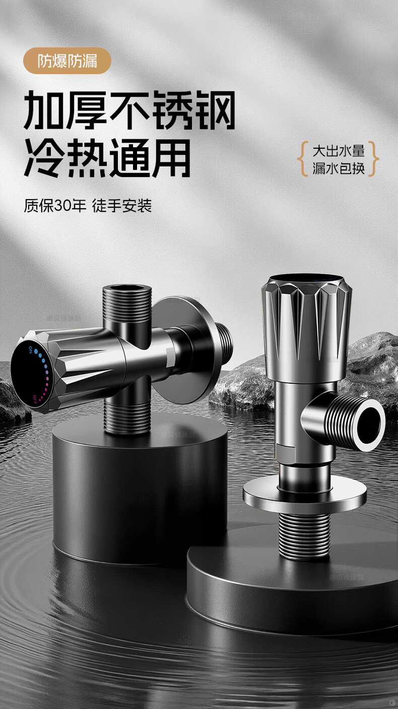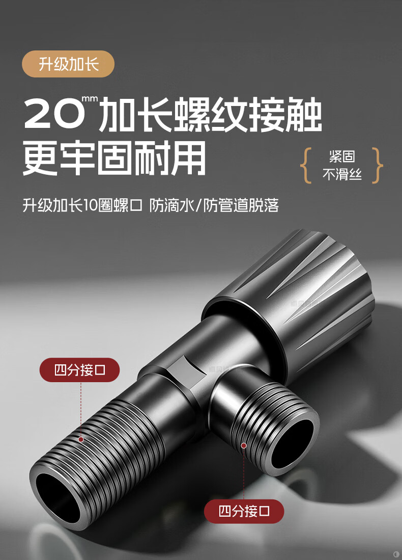 卓贝诗 角阀大流量不锈钢三角阀冷热水4分通用一进二出热水器马桶止水阀 【摩登灰】单通大流量-不锈钢角阀 防爆防漏丨4分通用