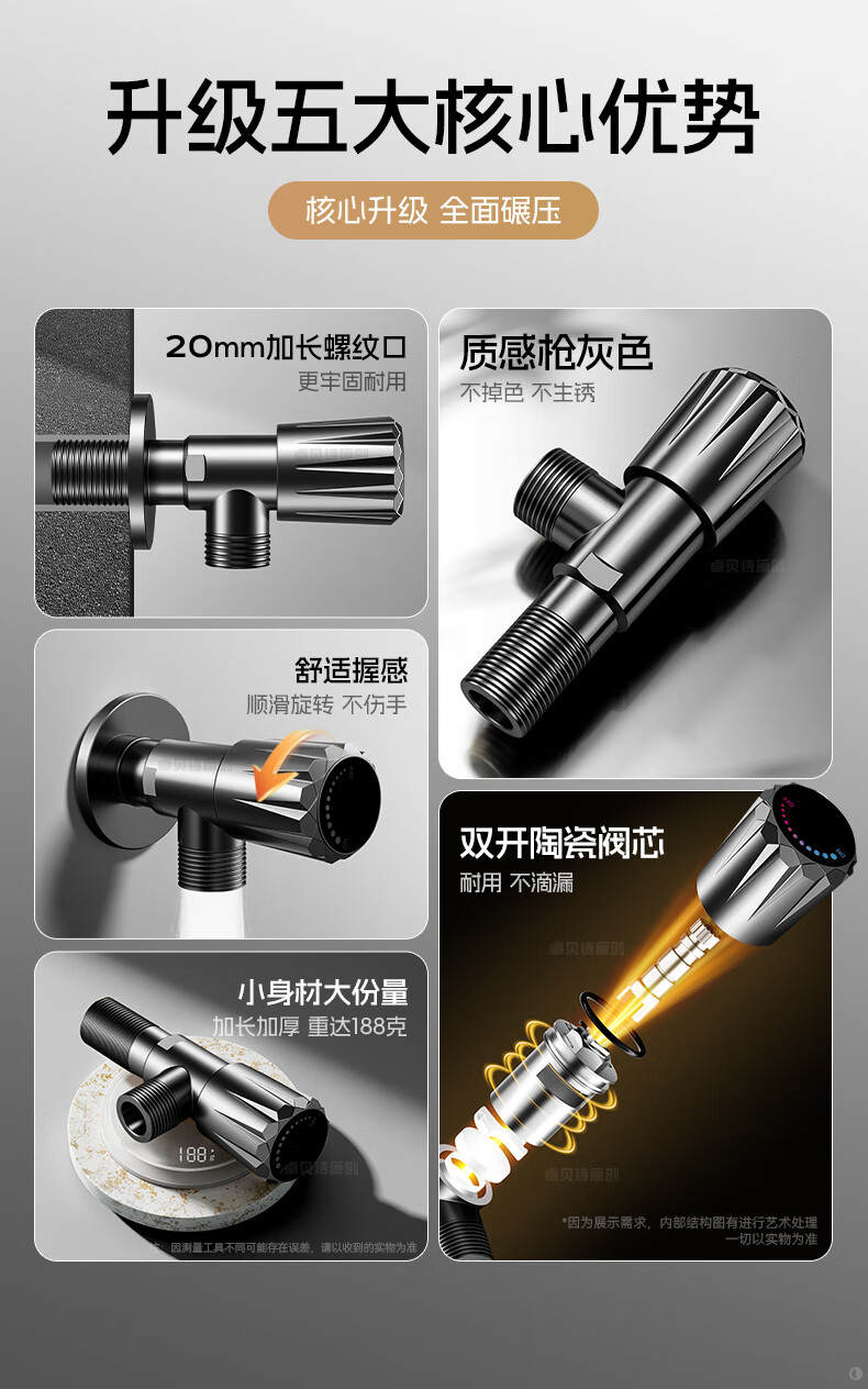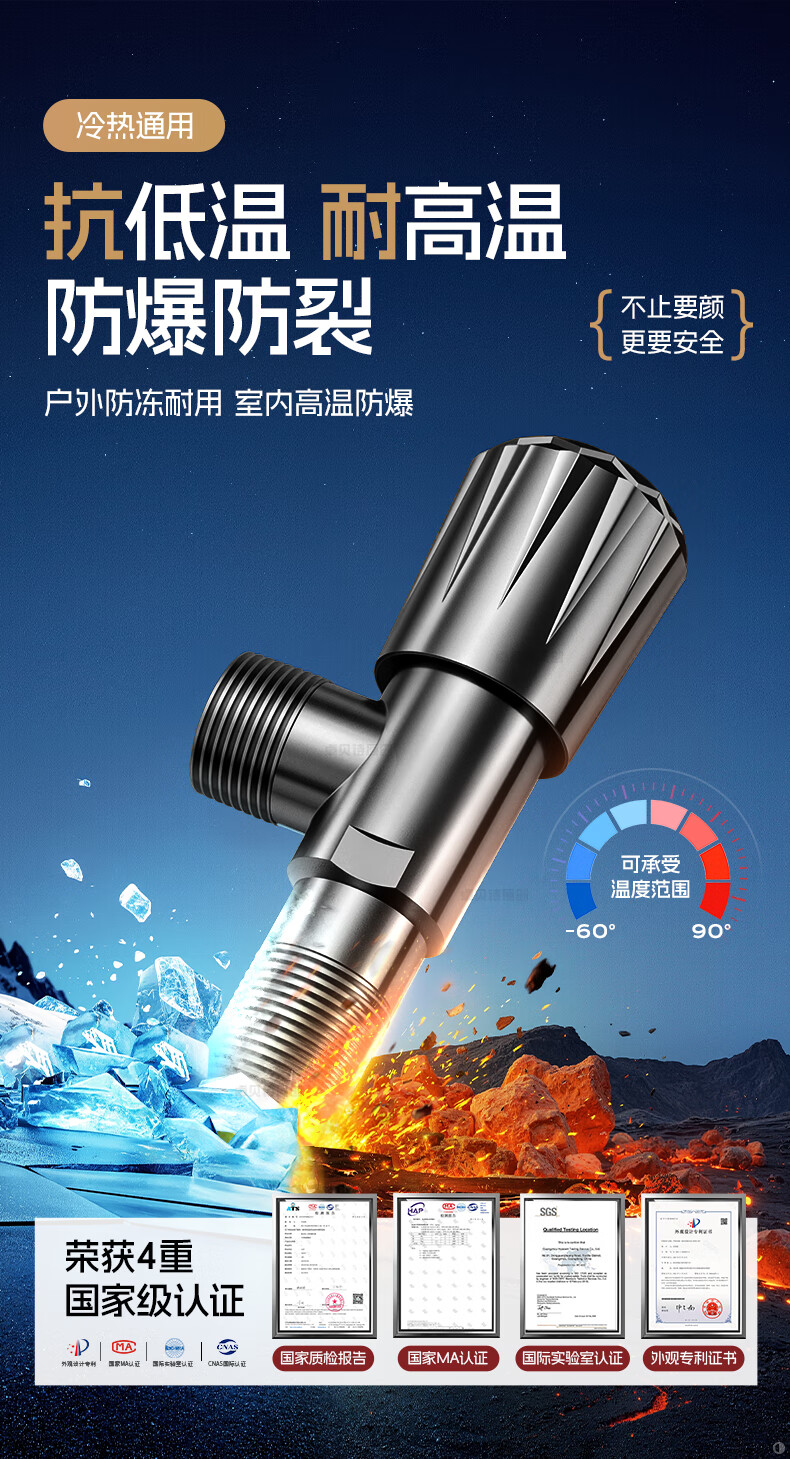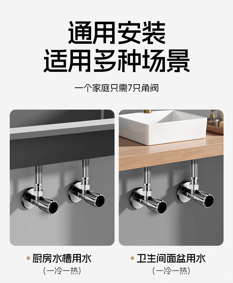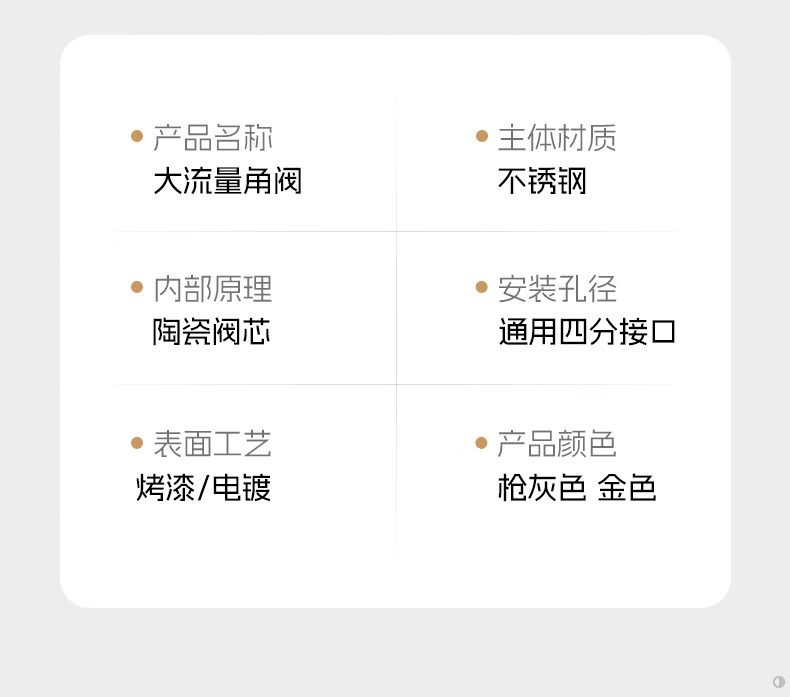 卓贝诗 角阀大流量不锈钢三角阀冷热水4分通用一进二出热水器马桶止水阀 【摩登灰】单通大流量-不锈钢角阀 防爆防漏丨4分通用