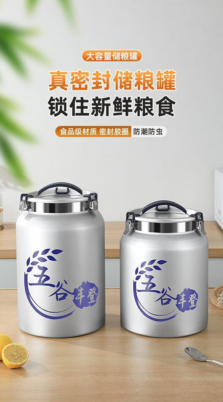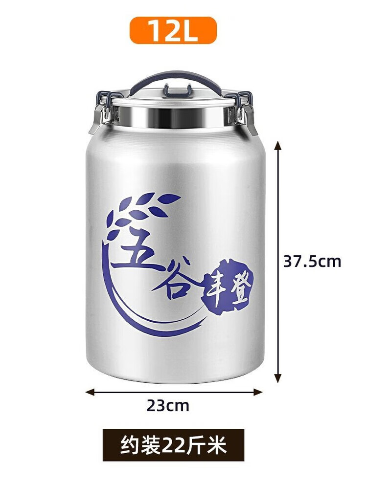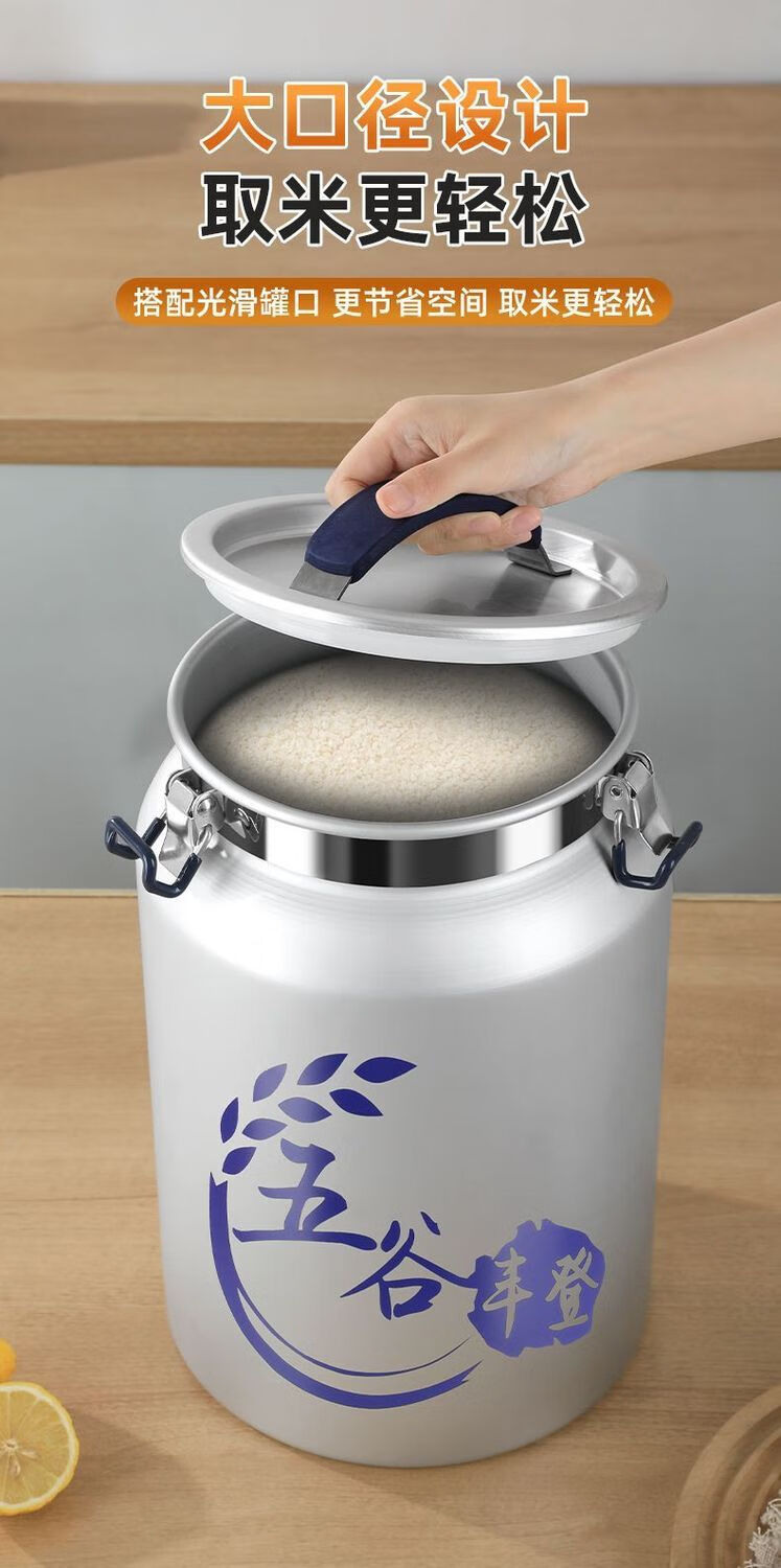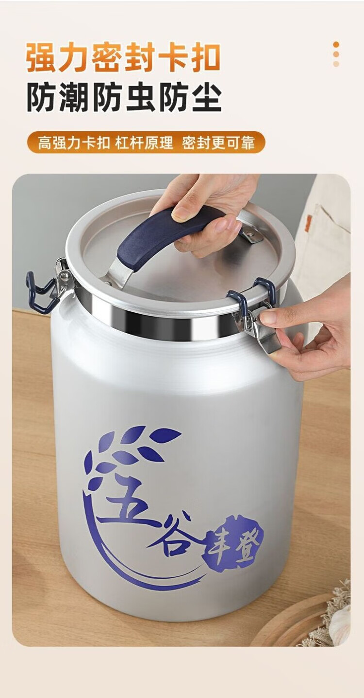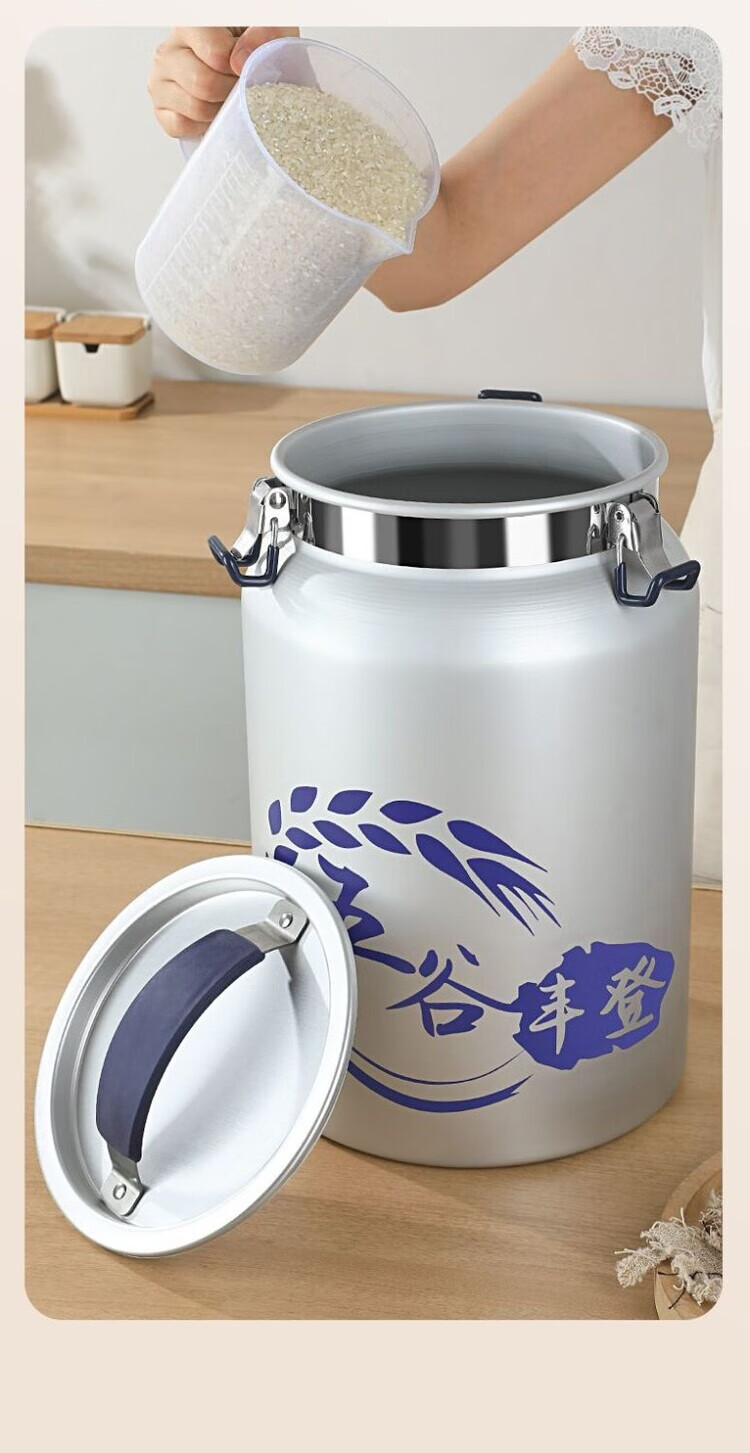 简漾新款装米桶家用防潮密封面粉储存罐装加厚大容量铝合金米桶防虫 太空铝米面罐 6L特厚密封