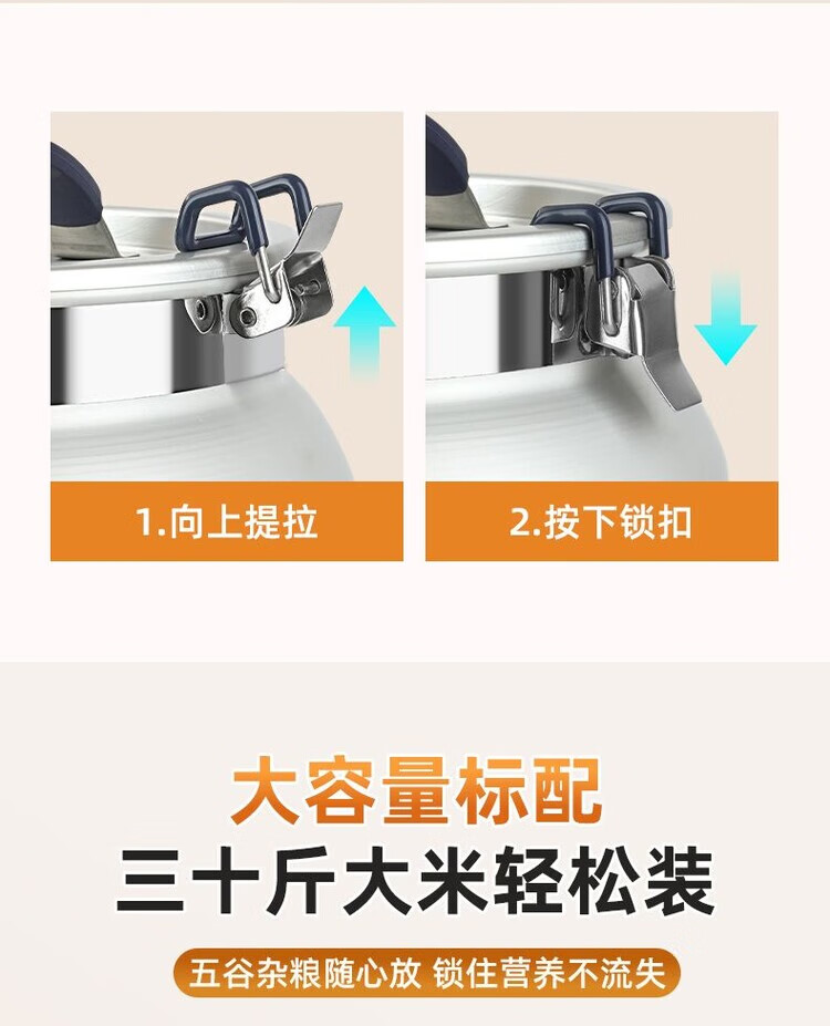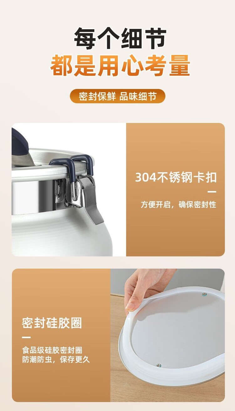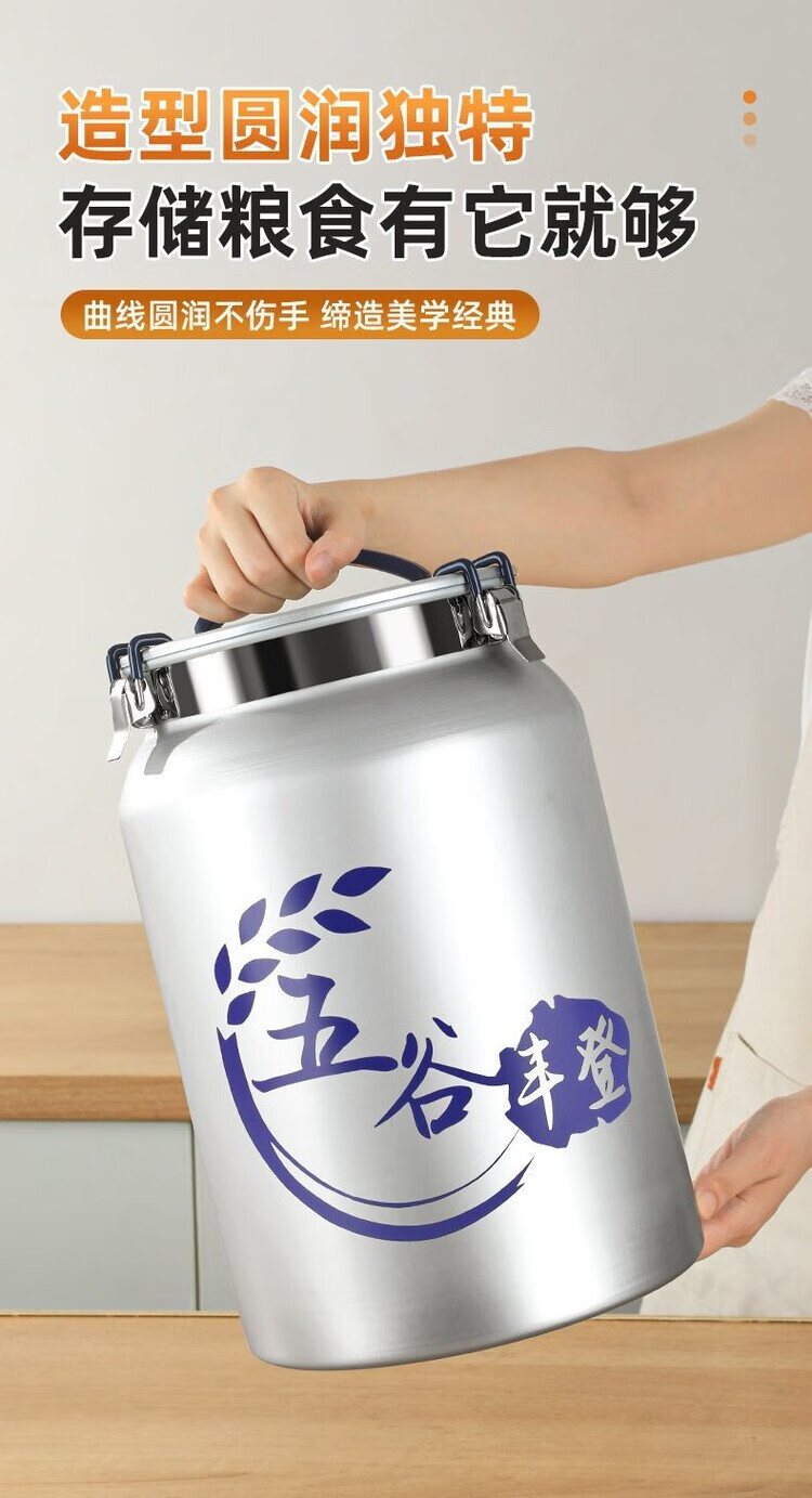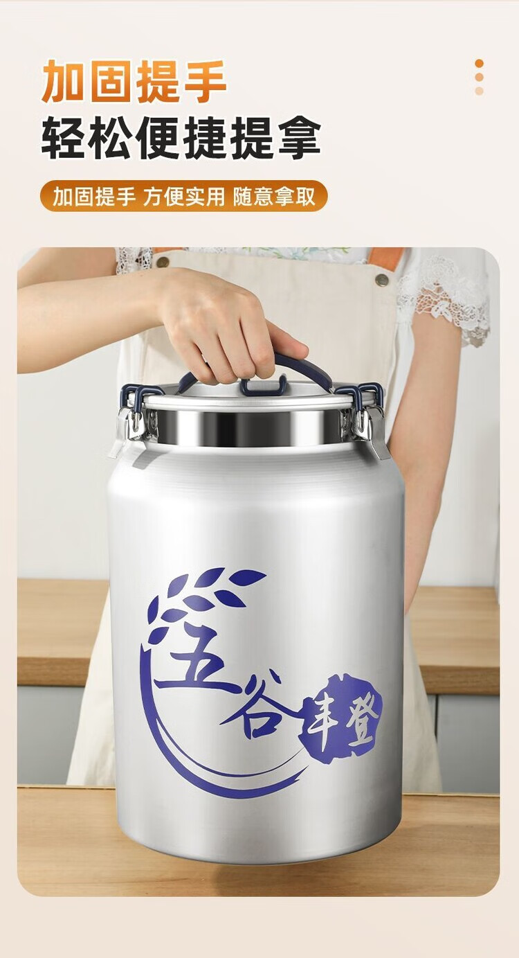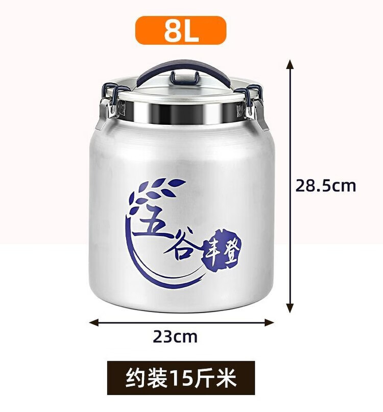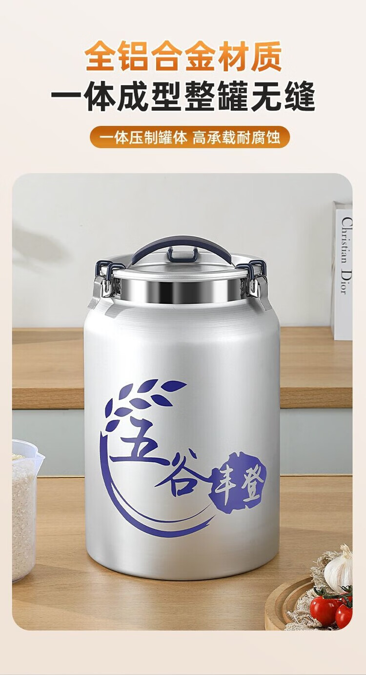 简漾新款装米桶家用防潮密封面粉储存罐装加厚大容量铝合金米桶防虫 太空铝米面罐 6L特厚密封